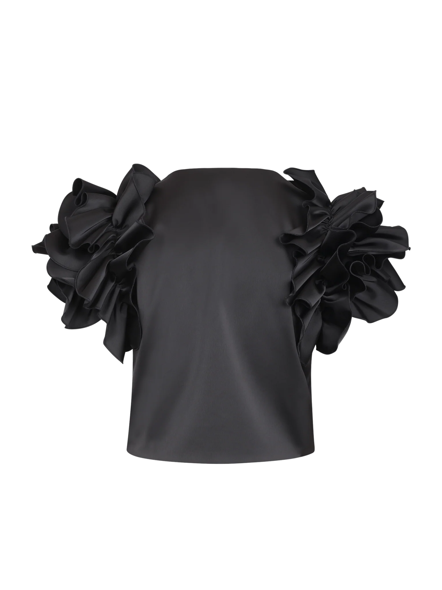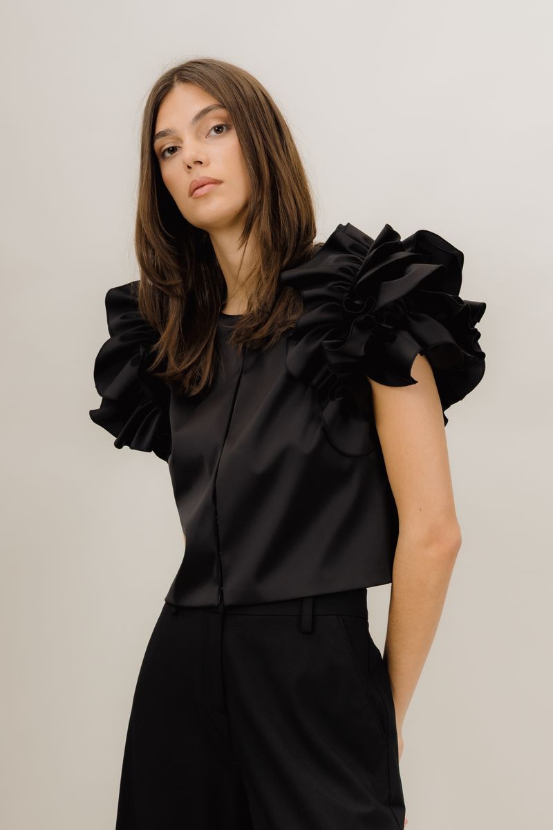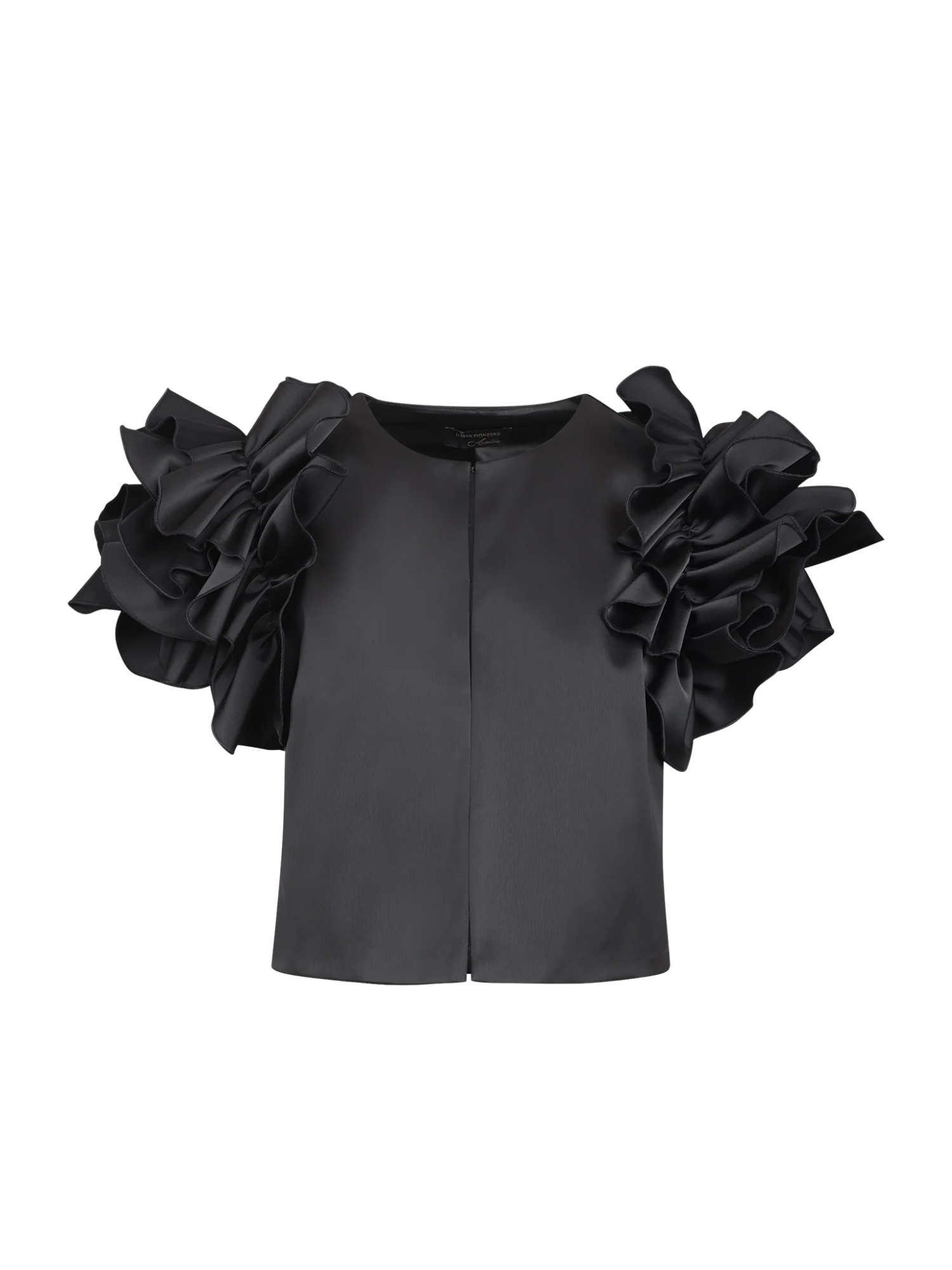 Aphrodite Jacket fra Urban Pioneers Atelier. Aphrodite Jacket er en elegant cropped jakke i sateng, med delikate skulderdetaljer som gir et eksklusivt uttrykk. De korte ermene og de diskrete hempene i front tilfører et moderne og stilrent preg. Perfekt å style både til jeans for en chic hverdagslook, eller til festantrekk over en kjole eller et skjørt. Normal i størrelsen.