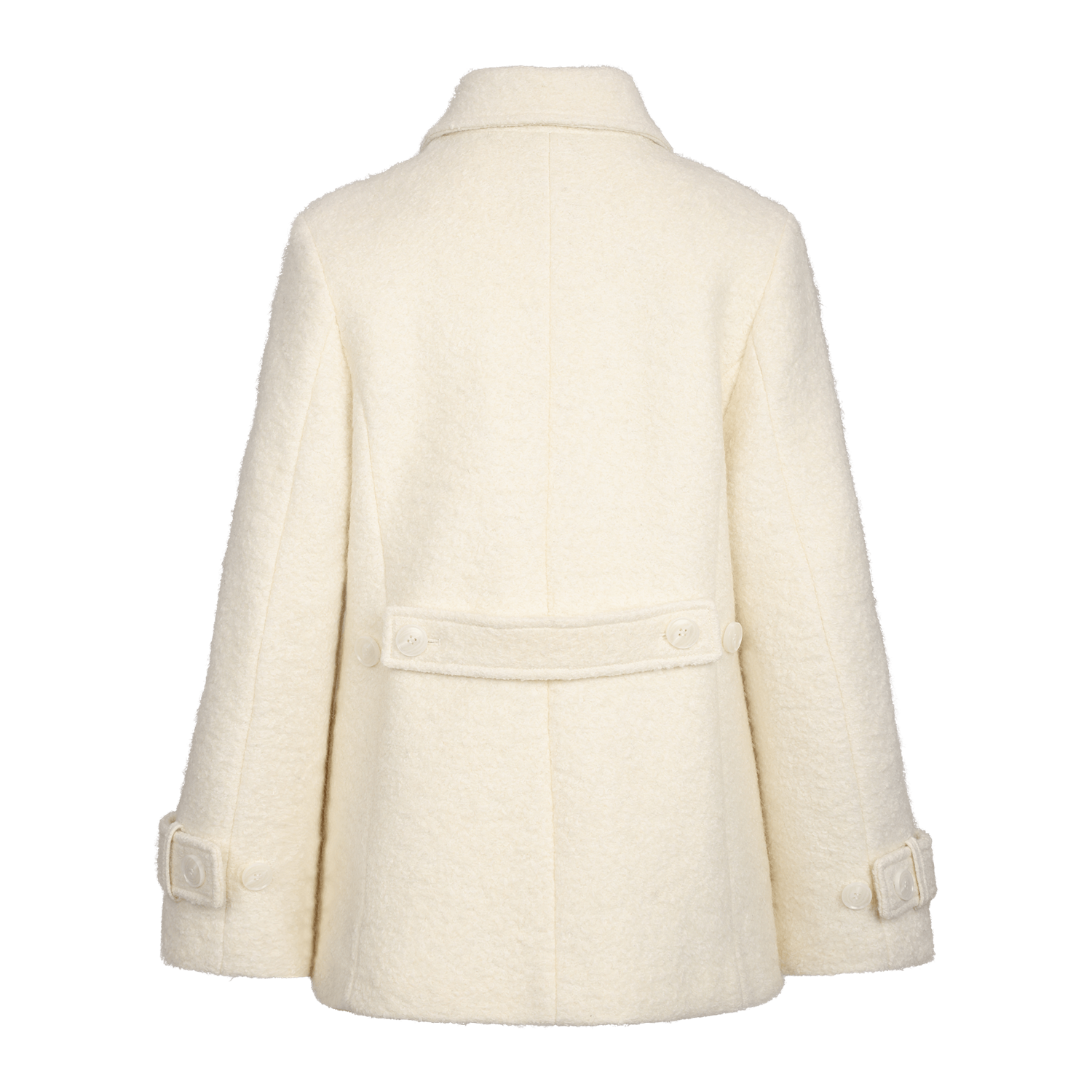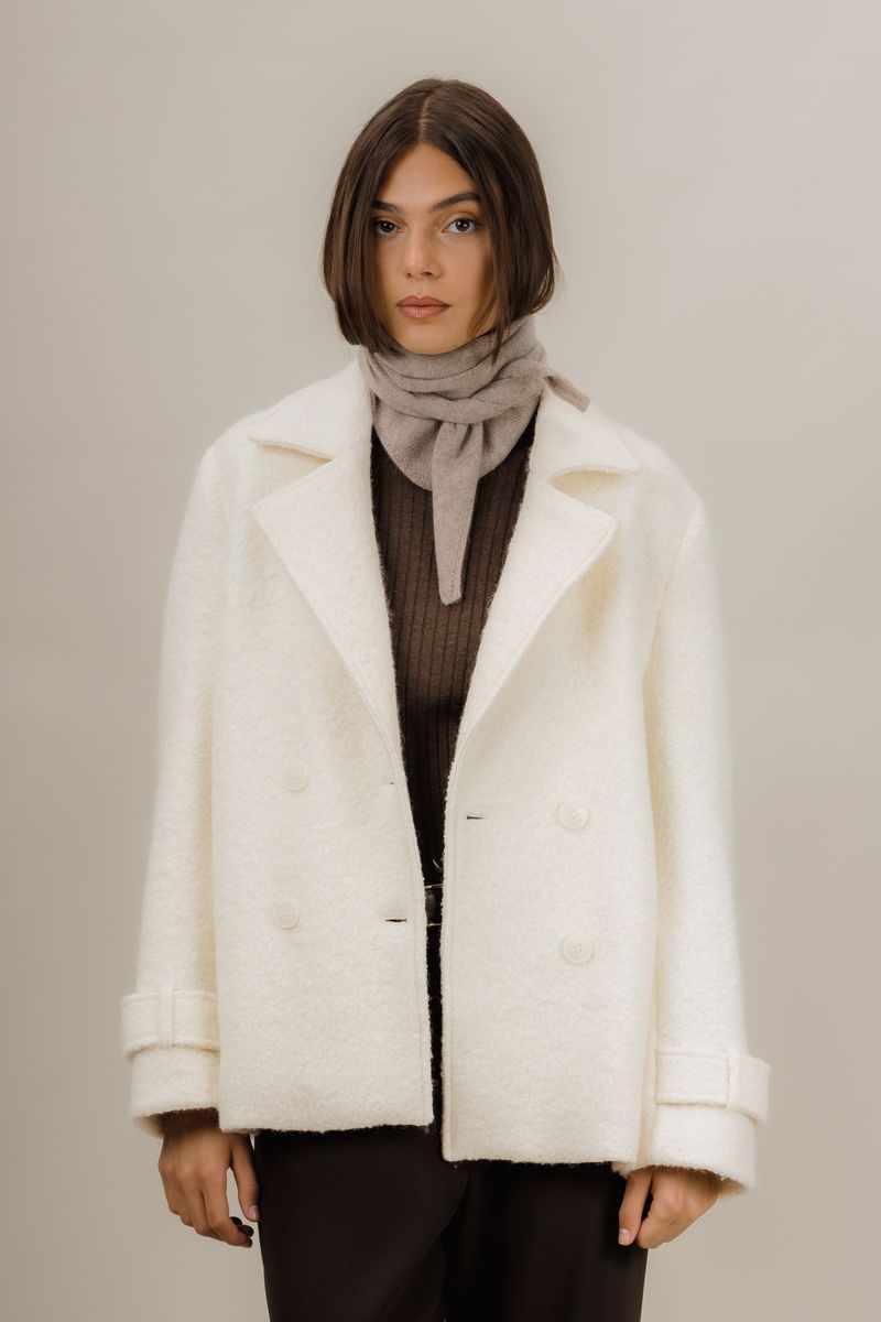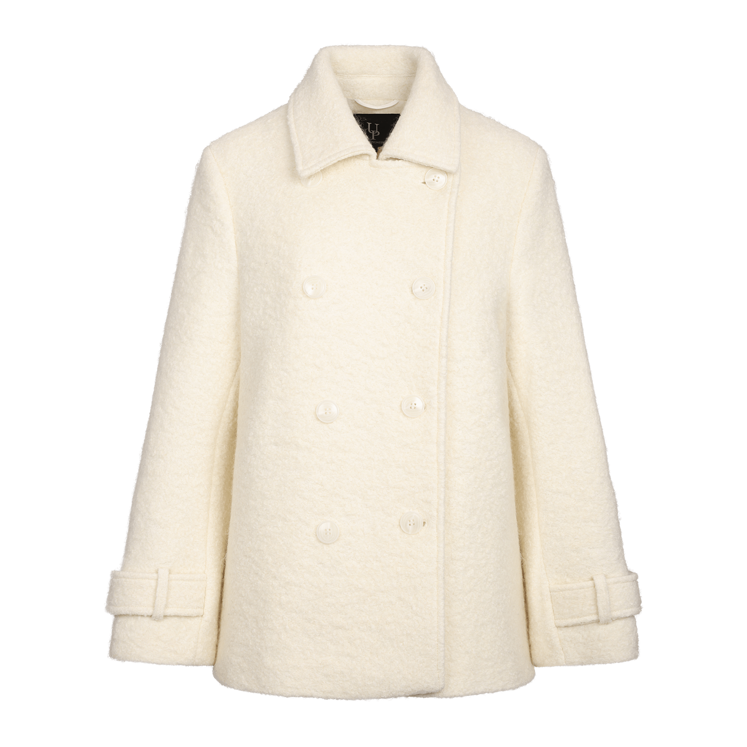 Harmony Jacket fra Urban Pioneers. Harmony Jacket er en kort jakke i kokt ull med luksuriøs tekstur og klassisk dobbelspent design. Den flatterende silhuetten og de skreddersydde detaljene gjør den perfekt til lag-på-lag og elegant hverdagsbruk. En tidløs jakke som tilfører et sofistikert preg til enhver look. Normal i størrelsen.