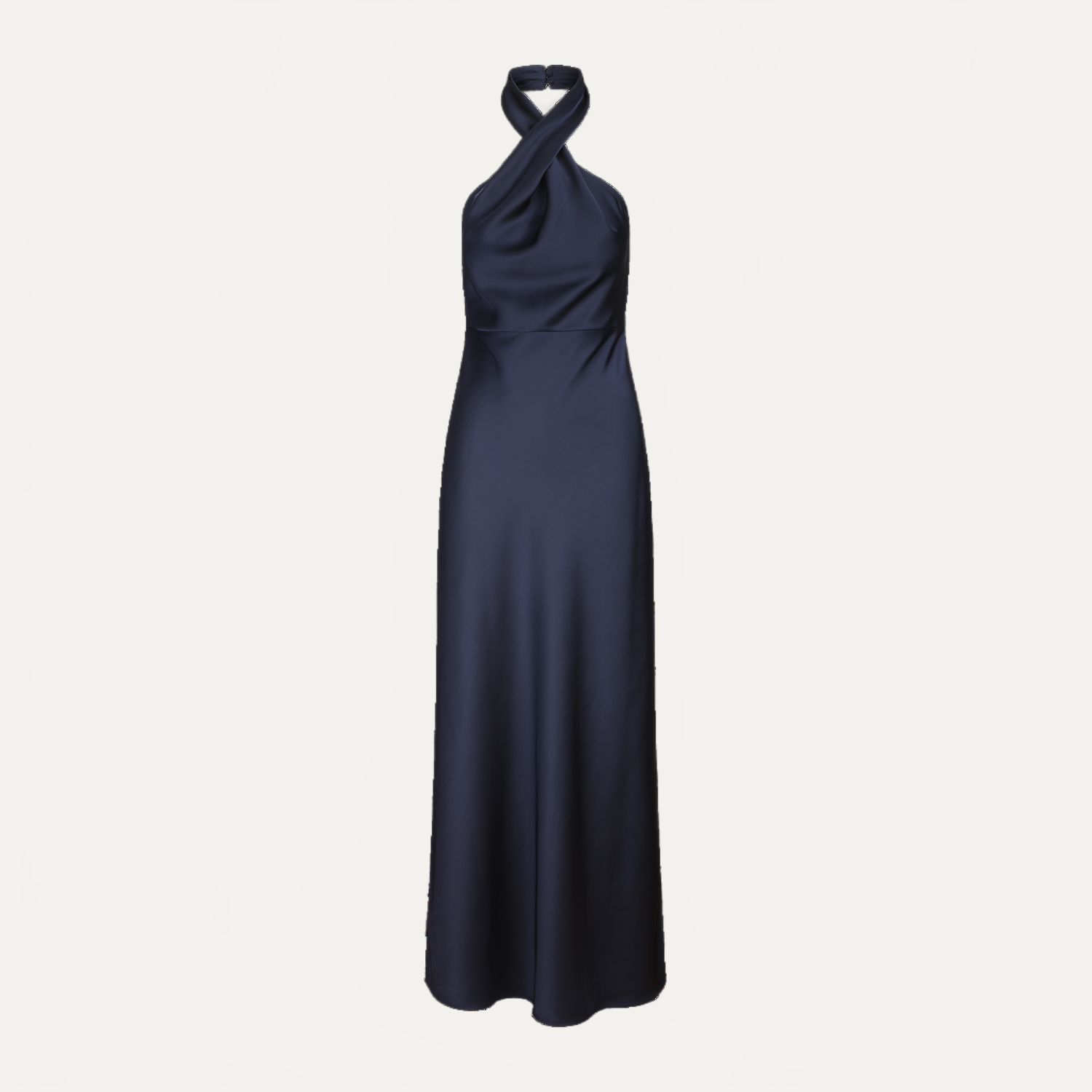 Dolores Dress fra Urban Pioneers. Dolores Dress er en nydelig maxikjole med halterneck-design og en elegant, flytende silhuett med vakre draperte detaljer. Perfekt valg til festlige anledninger, bryllup eller andre spesielle begivenheter. Lukkes i nakken for en ren og stilfull finish. Normal i størrelsen.