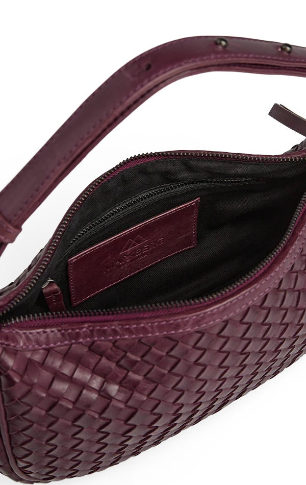 Mini MuseMBG Bag fra Markberg. Trendy og elegant veske med håndflettet look. Vesken har glidelås, innvendig glidelåslomme og leveres med to stropper – en crossbody og en skulderrem – som enkelt kan byttes ved metallspennen. Justerbar og avtakbar crossbody-stropp for fleksibel styling. Onesize.