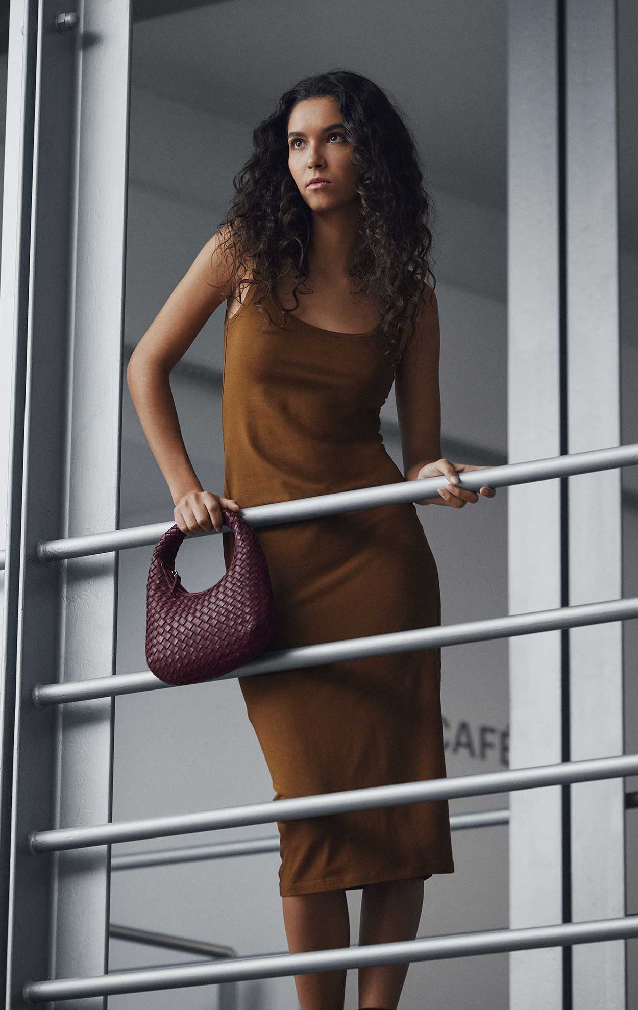 LuciaMBG Small Bag fra Markberg. LuciaMBG Small Bag er en elegant håndveske i håndflettet skinn med en tidløs, minimalistisk silhuett. Vesken lukkes med en stilren spenne og har kort topphåndtak. Vesken har en innvendig glidelåslomme som gir praktisk oppbevaring av småting. Perfekt som et klassisk tilbehør til både hverdag og fest. Onesize.