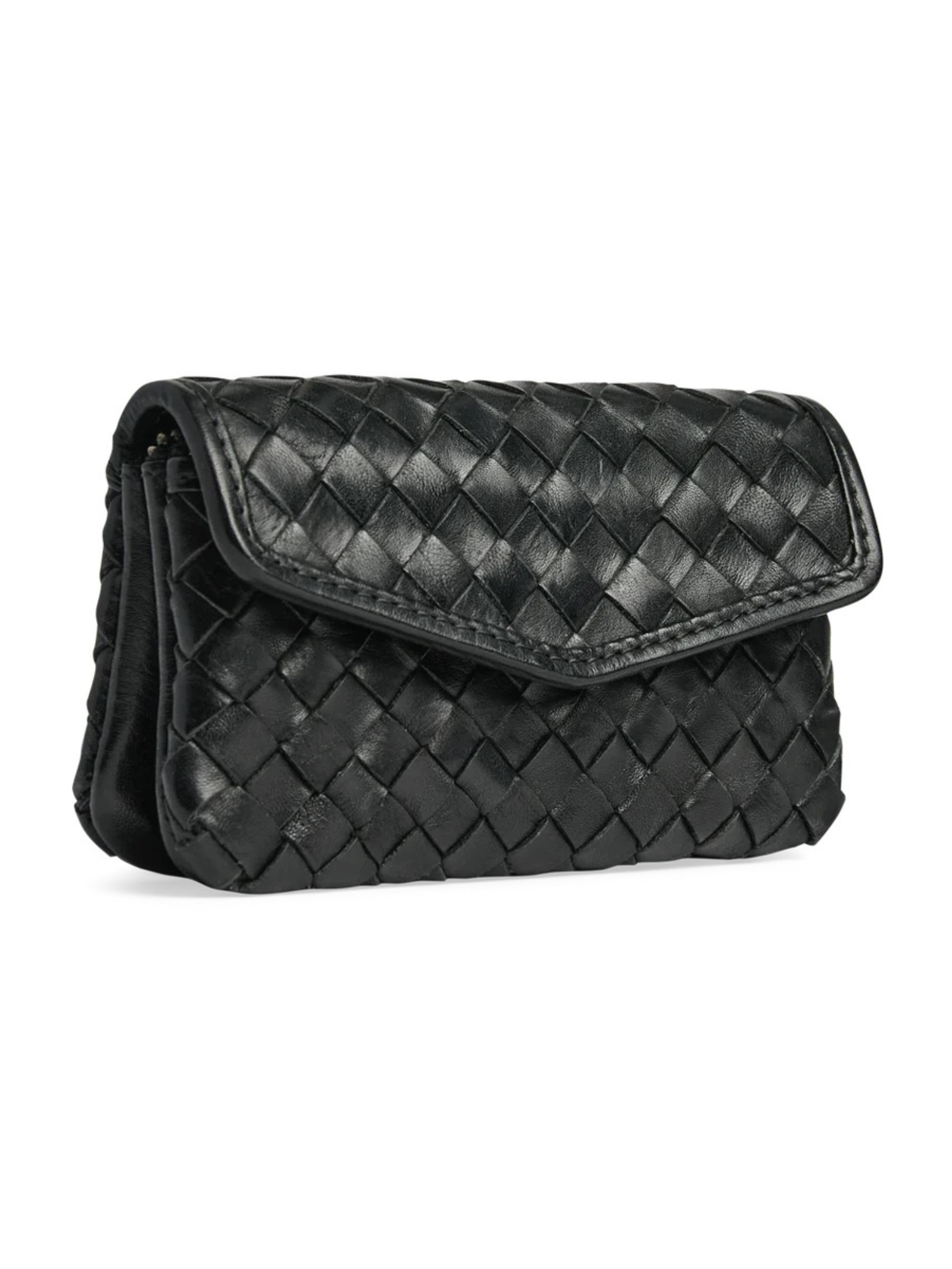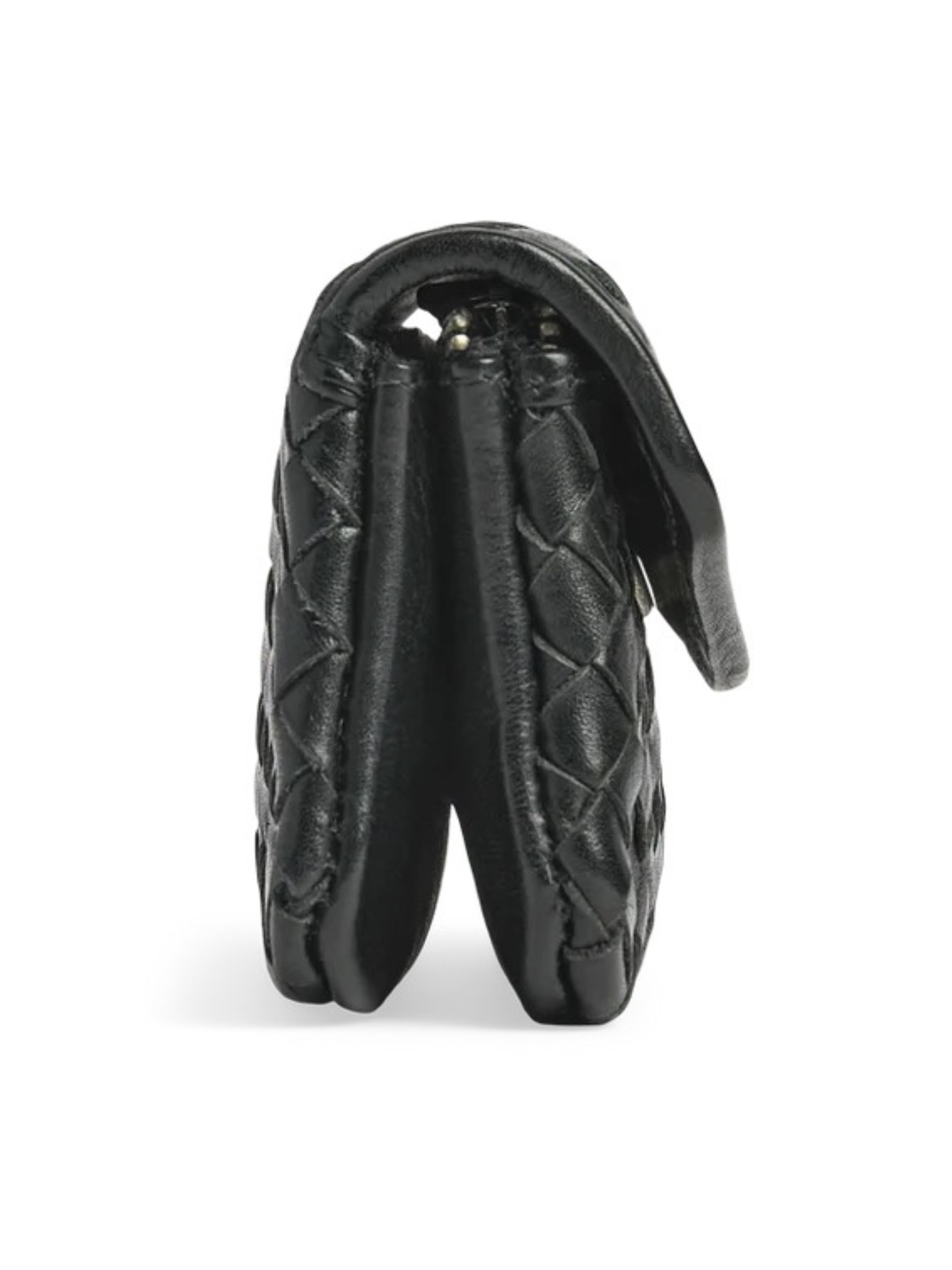 FaithMBG Coin Purse fra Markberg. En liten håndflettet lommebok i antikk skinn med tidløst uttrykk. Modellen har to innvendige lommer, en innvendig glidelåslomme og lukkes med trykknapp.