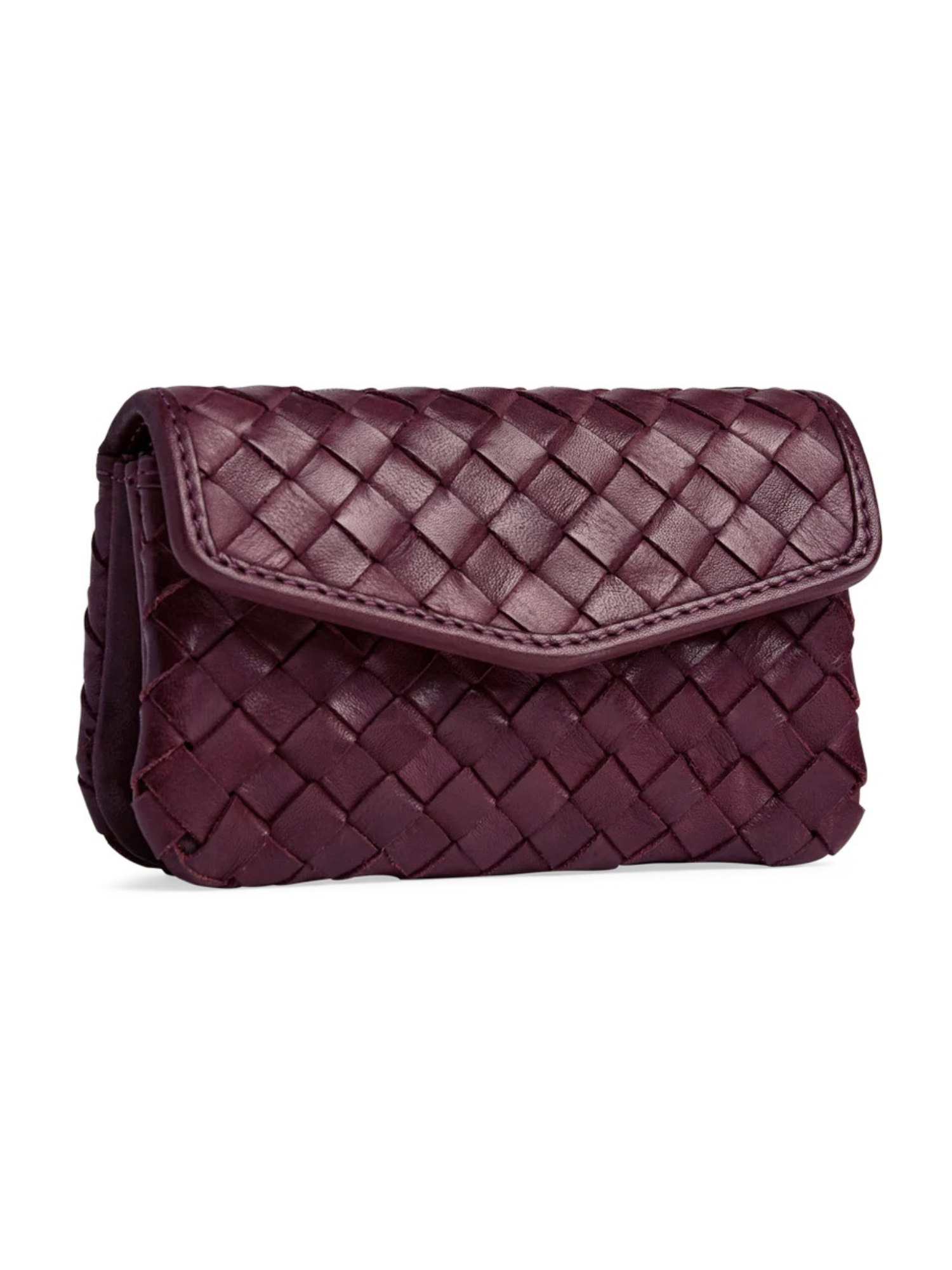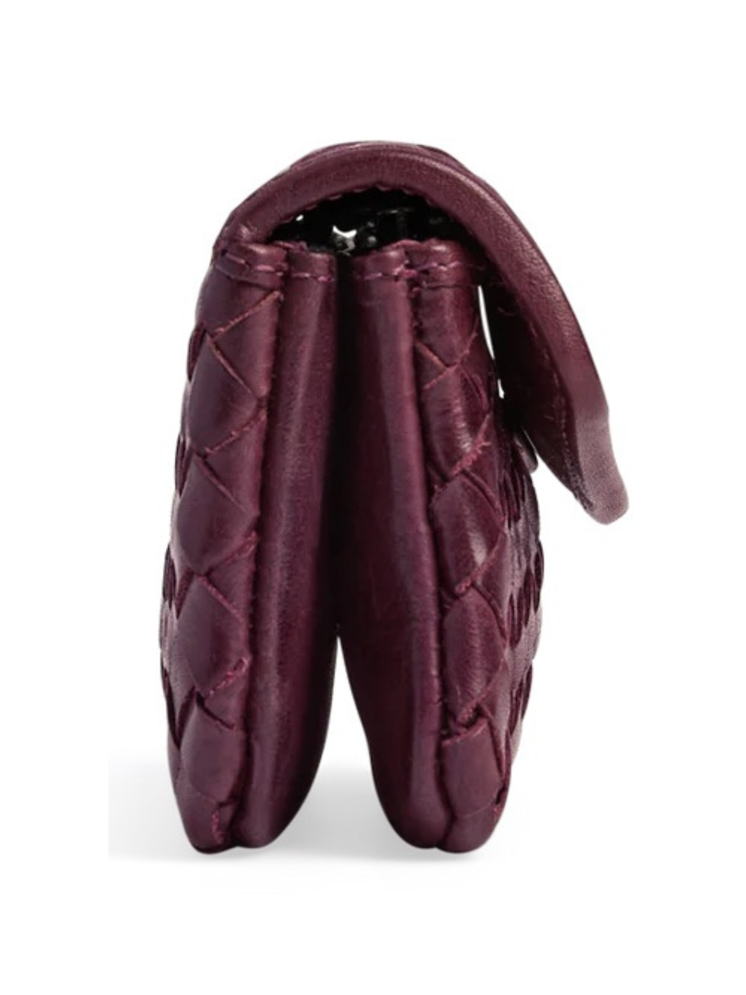 FaithMBG Coin Purse fra Markberg. En liten håndflettet lommebok i antikk skinn med tidløst uttrykk. Modellen har to innvendige lommer, en innvendig glidelåslomme og lukkes med trykknapp.