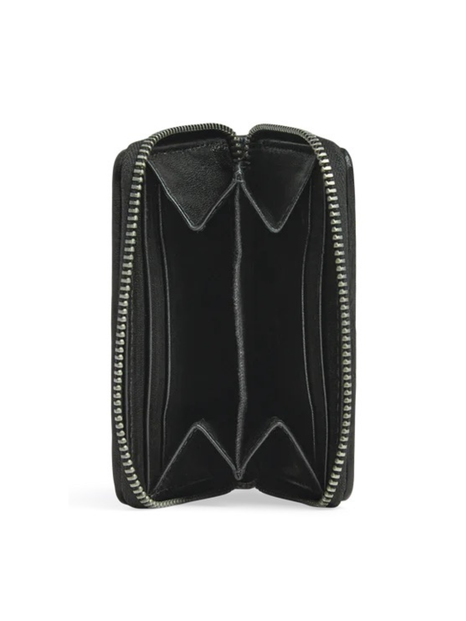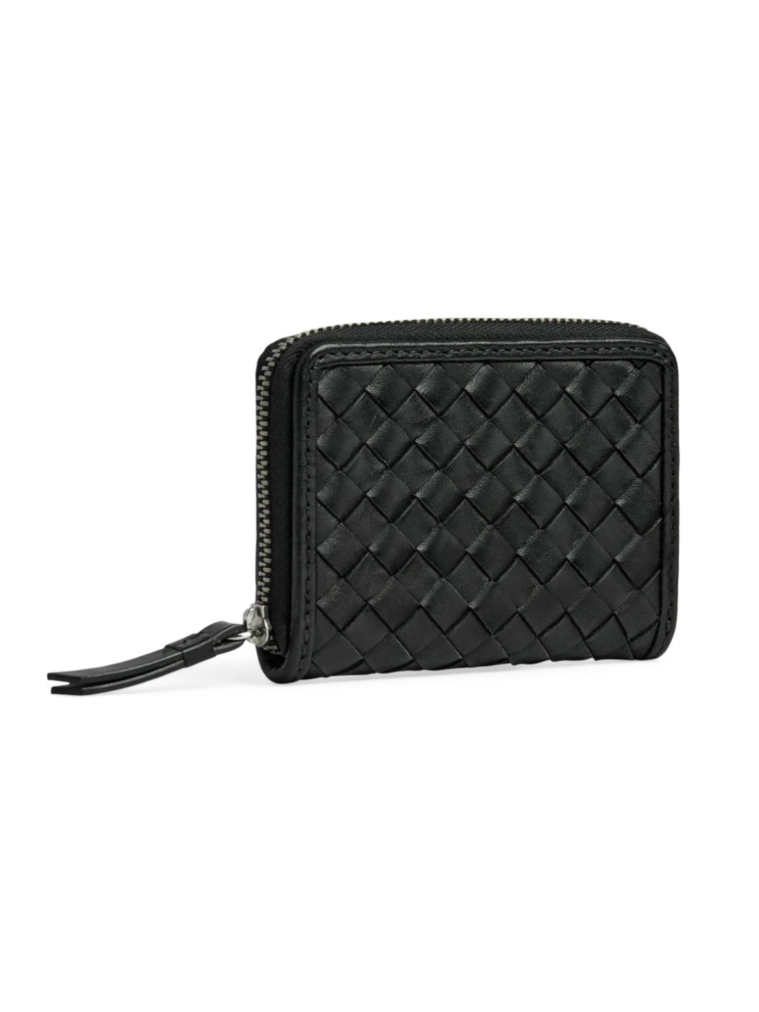 SelmaMBG Lommebok Flette fra Markberg. En kompakt lommebok i håndflettet antique skinn med elegant uttrykk. Modellen har fire kortholdere innvendig og lukkes med glidelås.