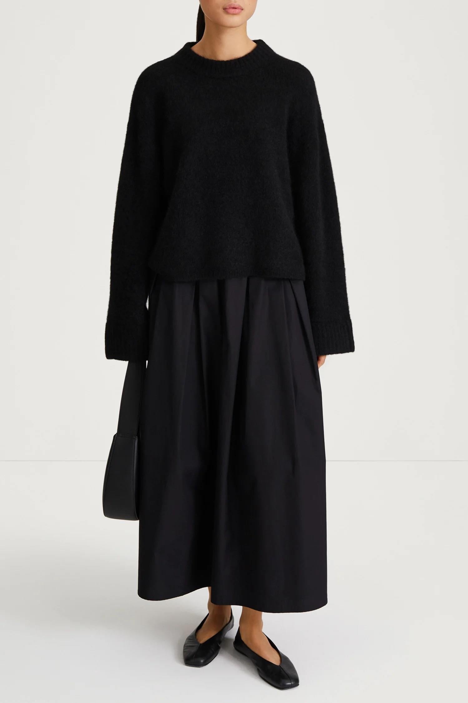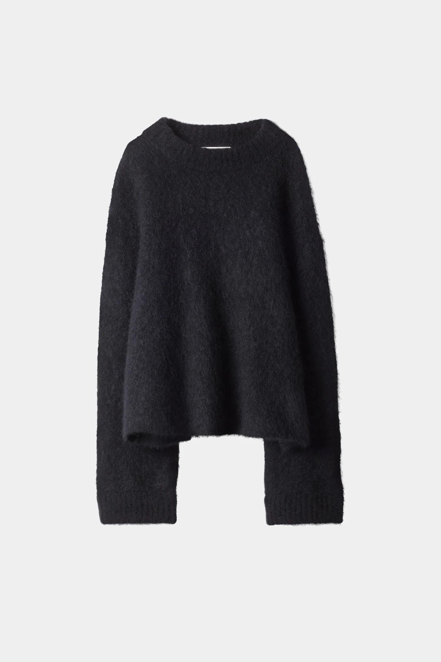 Niklas Short Sweater fra Stylein. Niclas Short Sweater er en myk, cropped strikkegenser med en boxy, oversized passform. Den er laget i en luksuriøs mohairblanding som gir en myk og behagelig følelse. Genseren har lange ermer, droppede skuldre og en klassisk rund hals. Perfekt både til lag-på-lag styling eller alene for en avslappet, men elegant look. Normal i størrelsen.