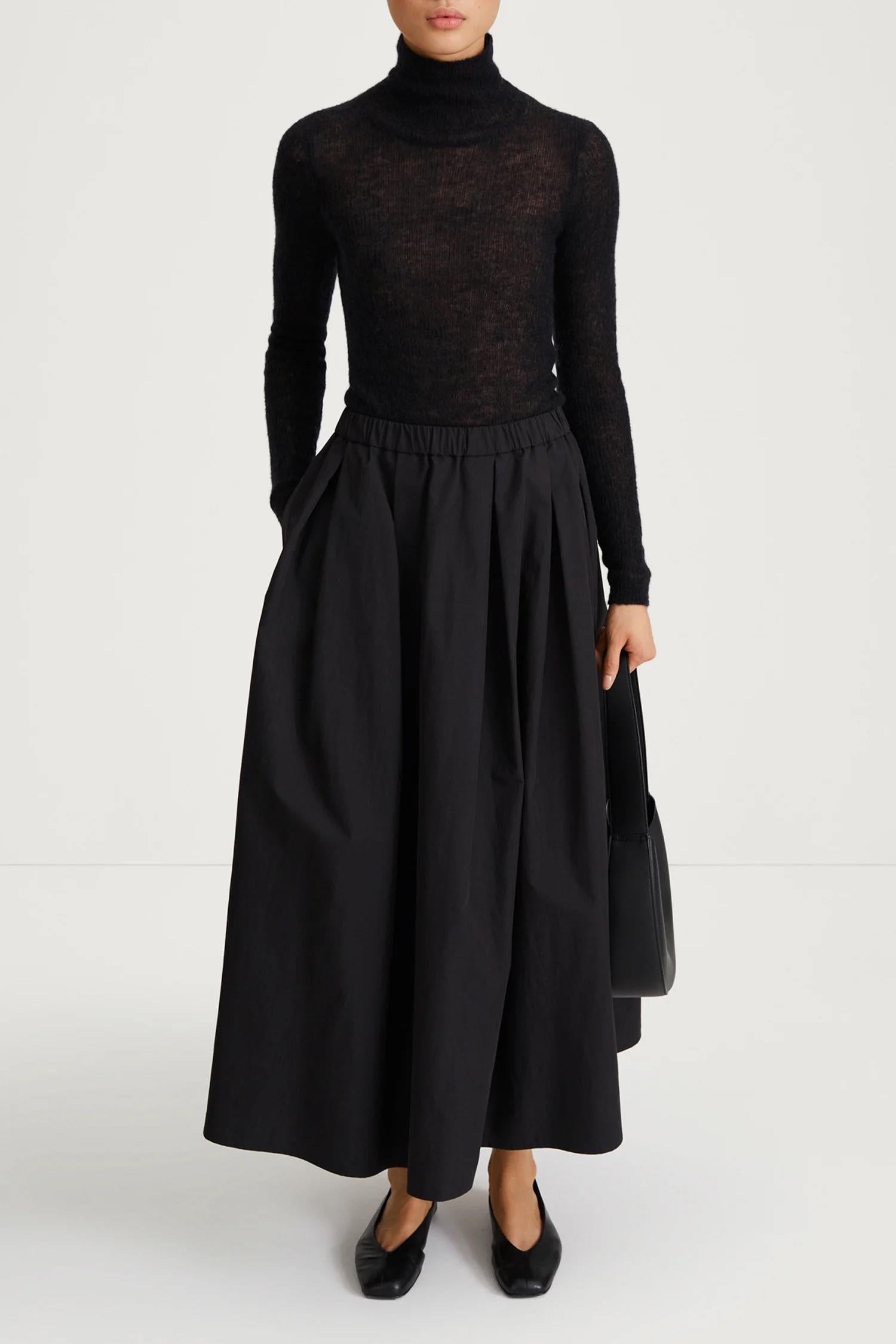 Sorina Skirt fra Styelin. Sorina Skirt er et maxiskjørt laget i en strukturert bomullsblanding med klassisk trench-stoff-følelse. Skjørtet har elegante boksfolder foran og bak som gir en voluminøs silhuett. Praktiske sidelommer og en ren linning med skjult strikk. Et tidløst plagg du kan bruke sesong etter sesong. Normal i størrelsen.