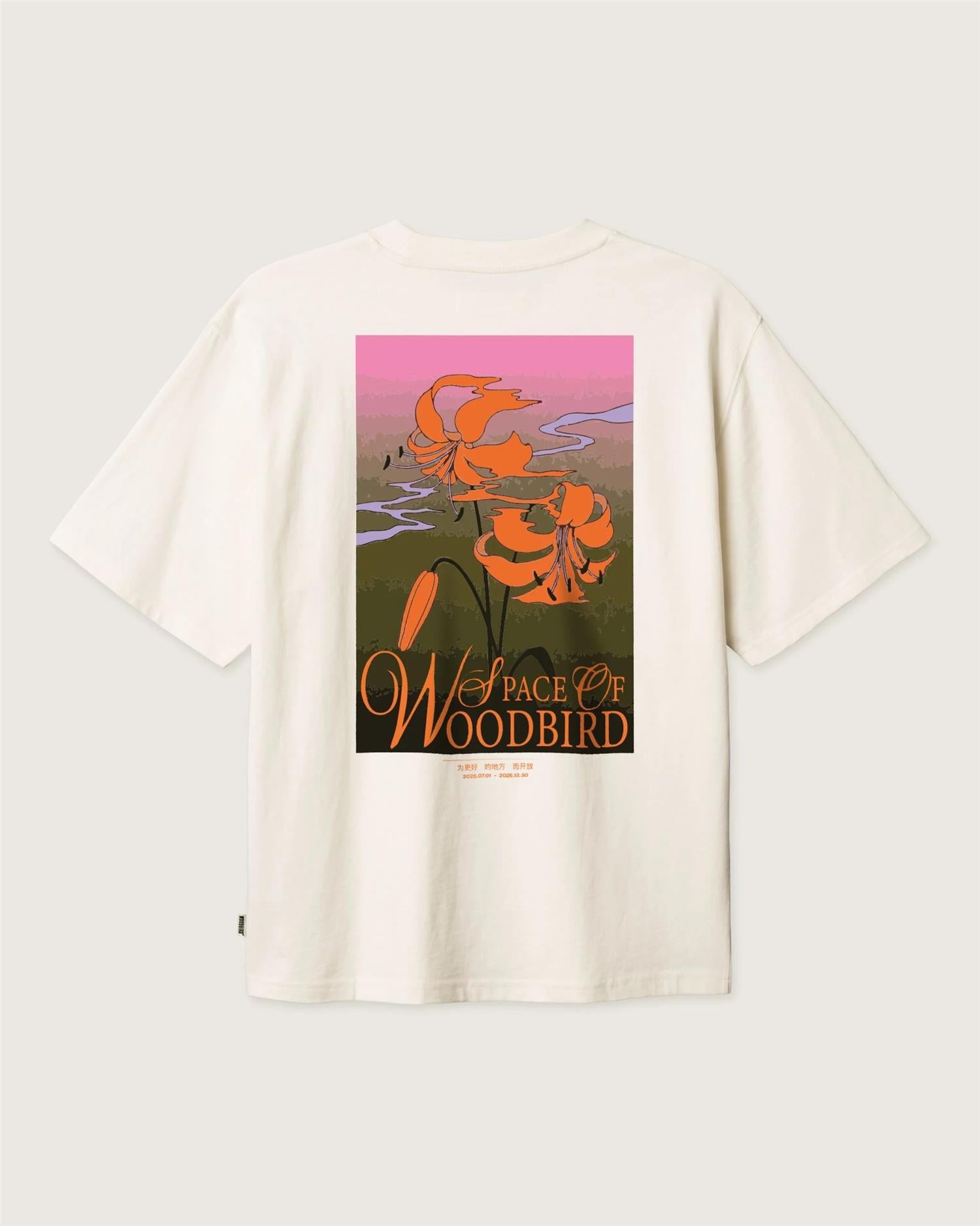 Baine Flower Tee fra Woodbird. Baine Flower Tee er en myk t-skjorte i 100% økologisk bomull med avslappet passform. Den har korte ermer og et sommerlig blomsterprint som gir et friskt og avslappet uttrykk. Perfekt til hverdagsbruk. Normal i størrelsen.