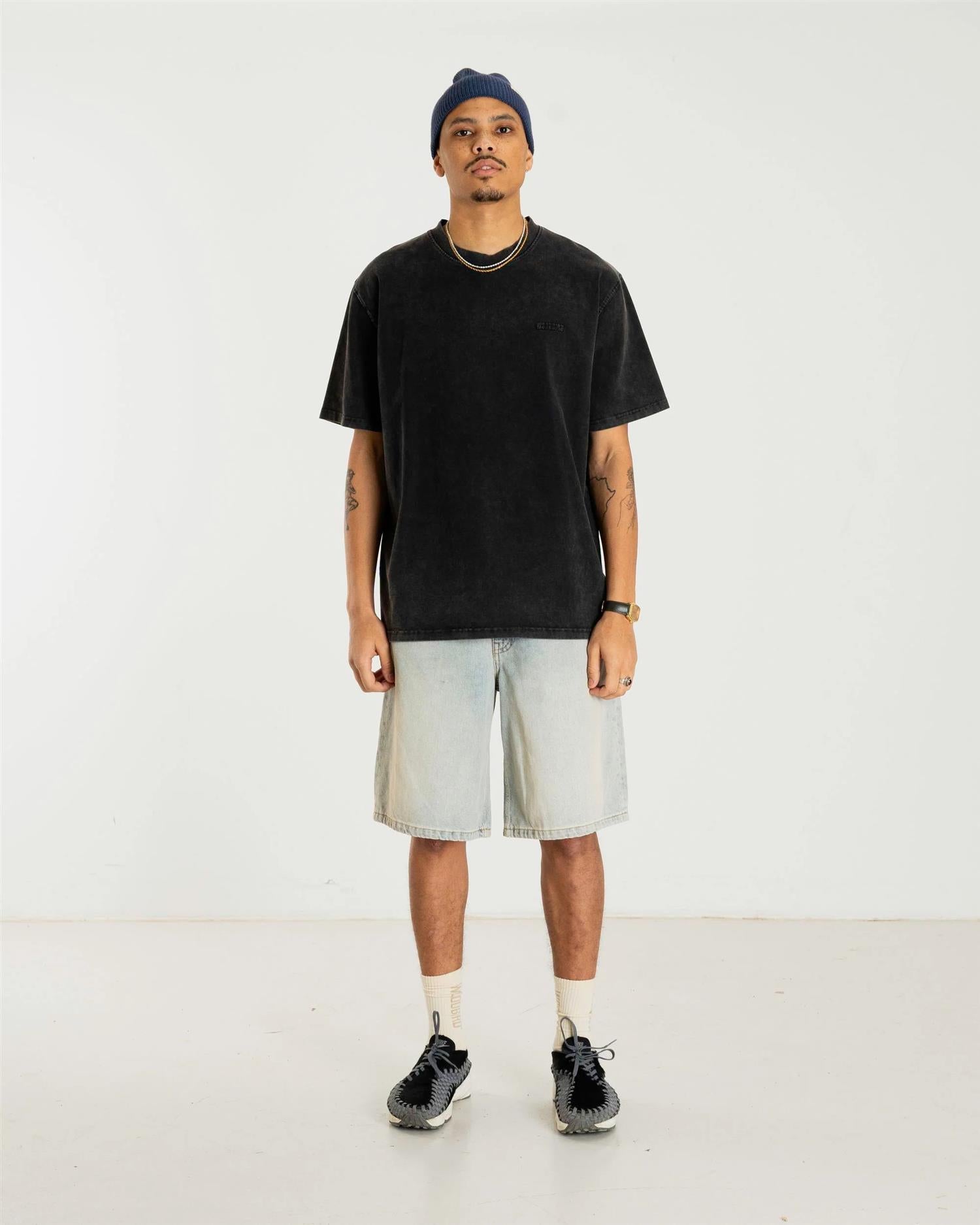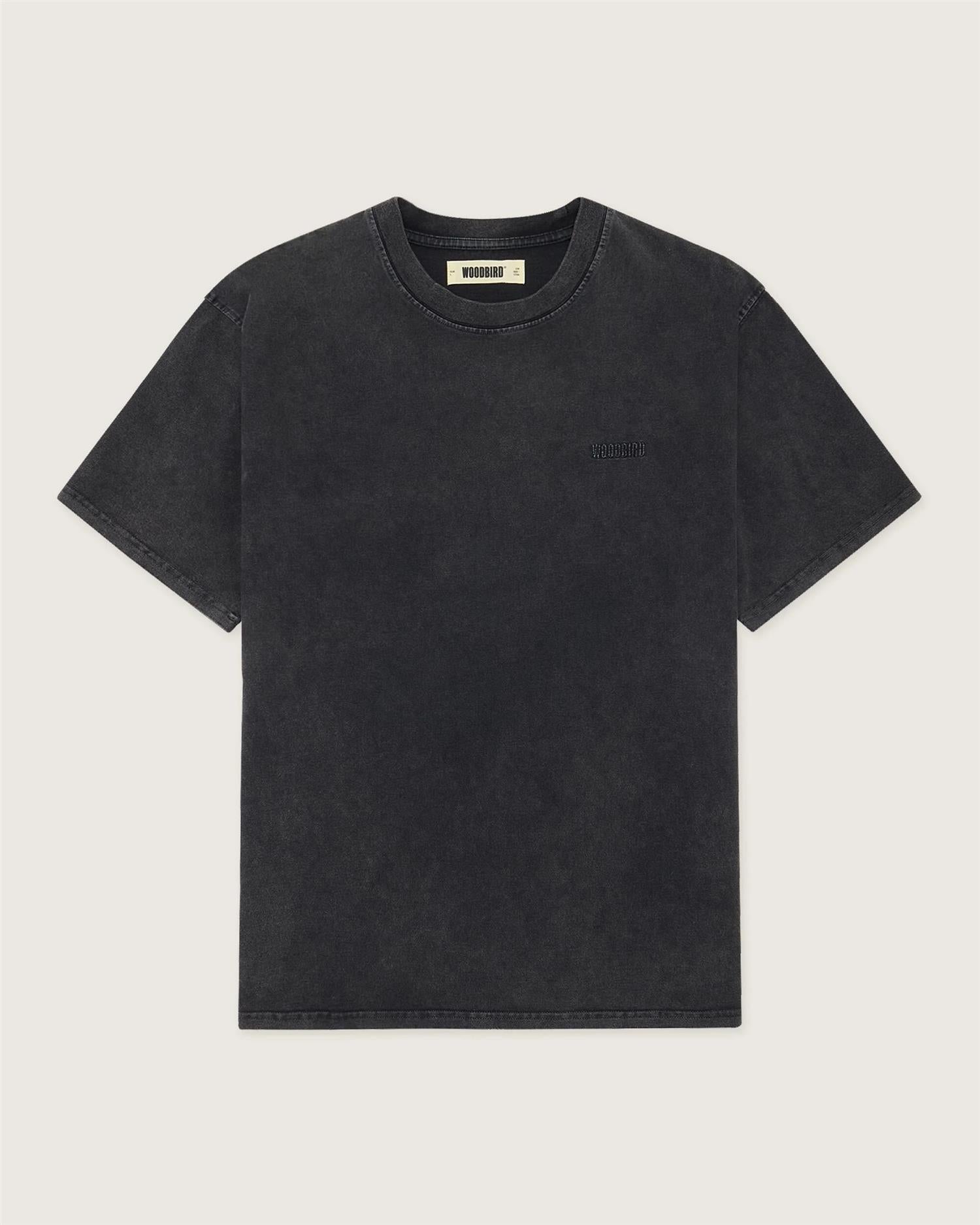 Baine Washed Tee fra Woodbird. Baine Washed Tee er en avslappet t-skjorte med loose fit passform. Den har kort erm, rund hals og et subtilt brodert logo på brystet. Den vasket teksten og falmede effekten gir t-skjorten et avslappet, «levd-in» uttrykk – et klassisk hverdagsplagg du vil elske. Normal i størrelsen.