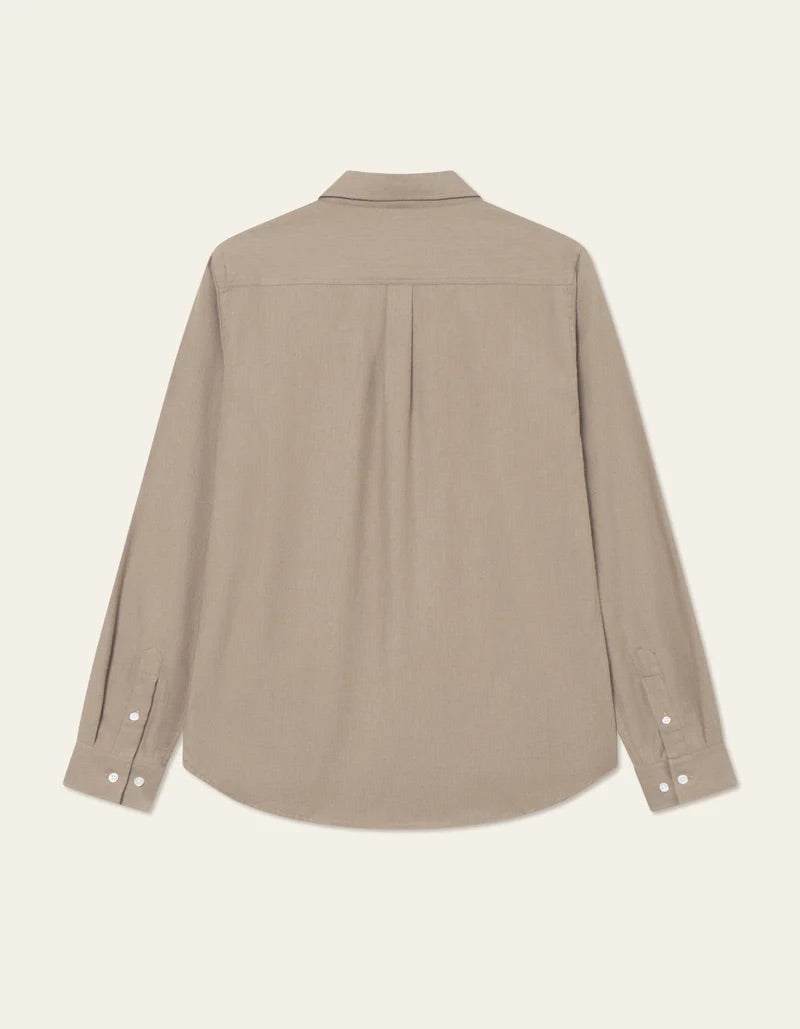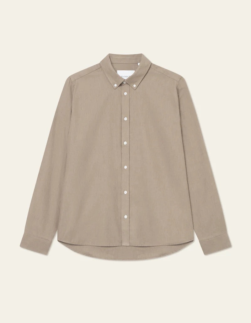 Desert Reg Shirt fra Les Deux. Slim fit-skjorte i myk, børstet bomull med button-down-krage og kontrastknapper. Fullført med brodert Encore-logo på brystet. Bruk den til chinos for en pen hverdagsstil, eller åpen over en T-skjorte for et mer avslappet uttrykk. Normal i størrelsen. Modellen er 185 cm høy og bruker størrelse M.