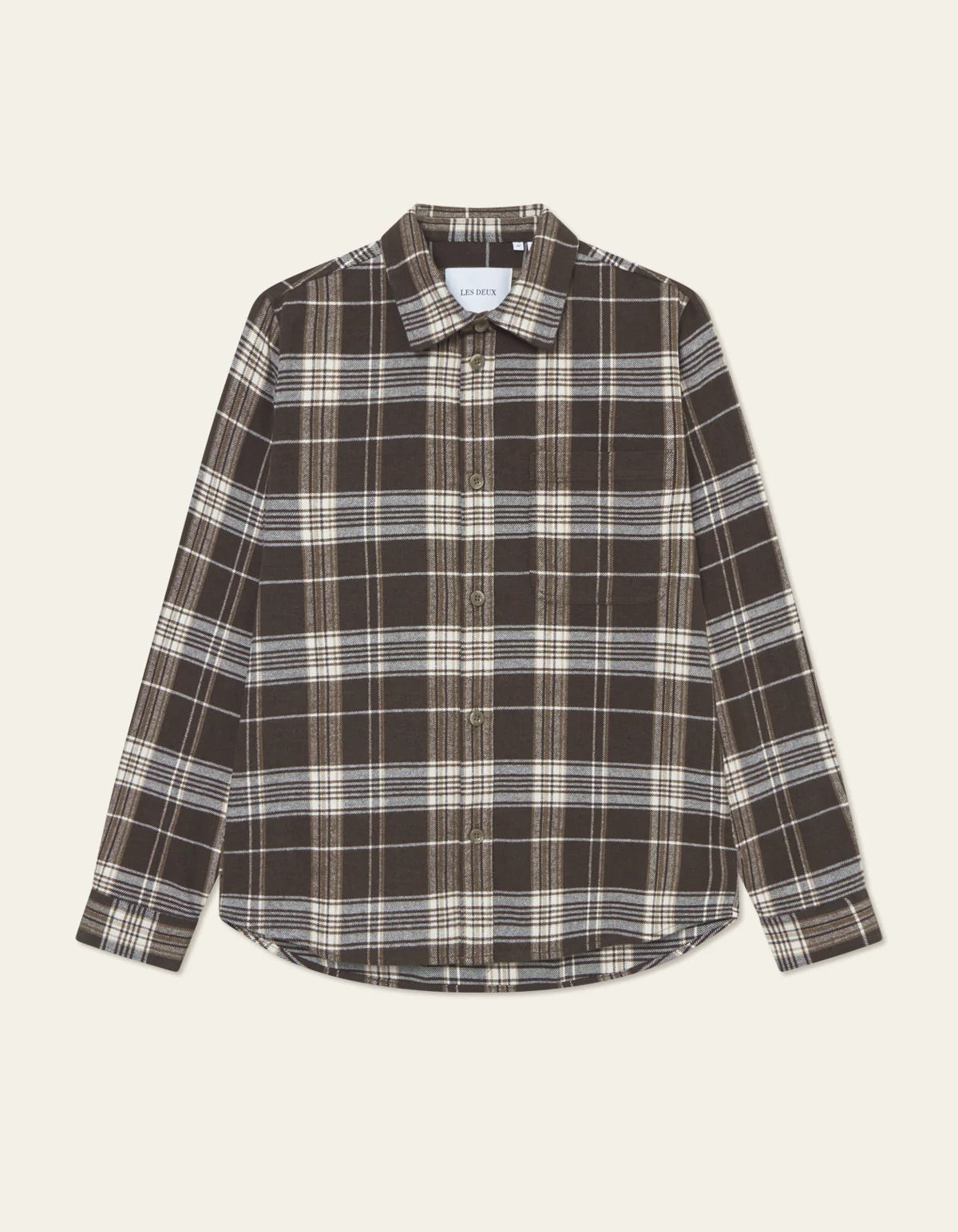 Lennon Check Overshirt fra Les Deux. En tidløs overskjorte i regular fit, laget av myk bomullsflanell. Designet med klassisk rutemønster, krage, enkel patch-lomme på brystet og knappeliste foran. Detaljert med knappmansjetter, buet høy-lav fald og bærestykke uten plissering. Normal i størrelsen. Modellen er 185 cm høy og bruker størrelse M.