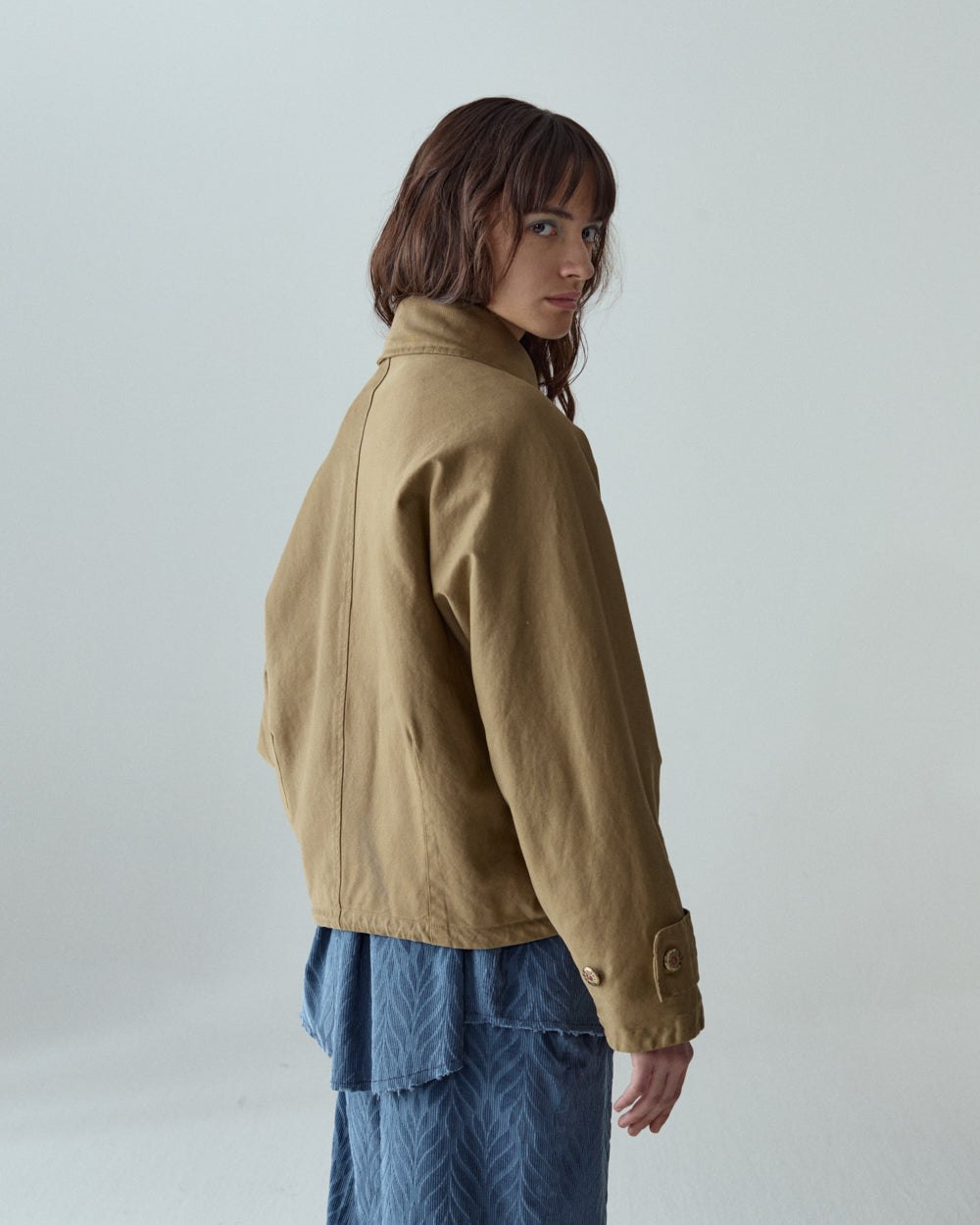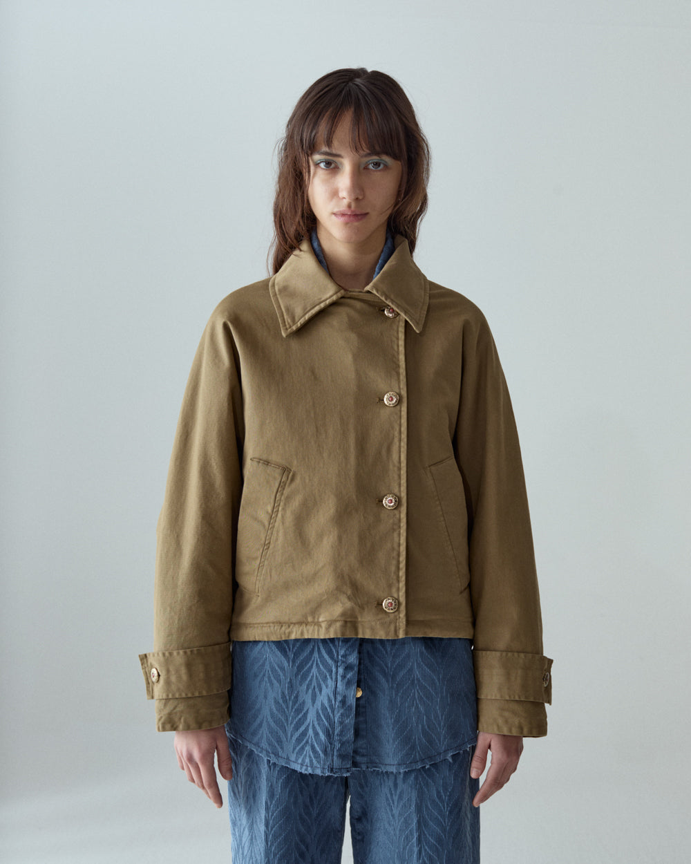 Bobo Jacket fra Shaft Jeans. En kort jakke med rett fasong og klassisk krage. Modellen har knappelukking foran, sidelommer og brede mansjetter med knapp som gir en moderne detalj. Fôret innside gjør jakken behagelig å bruke.