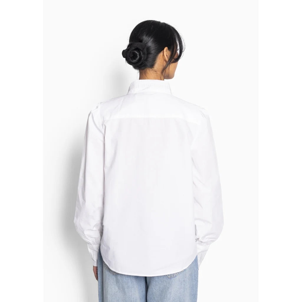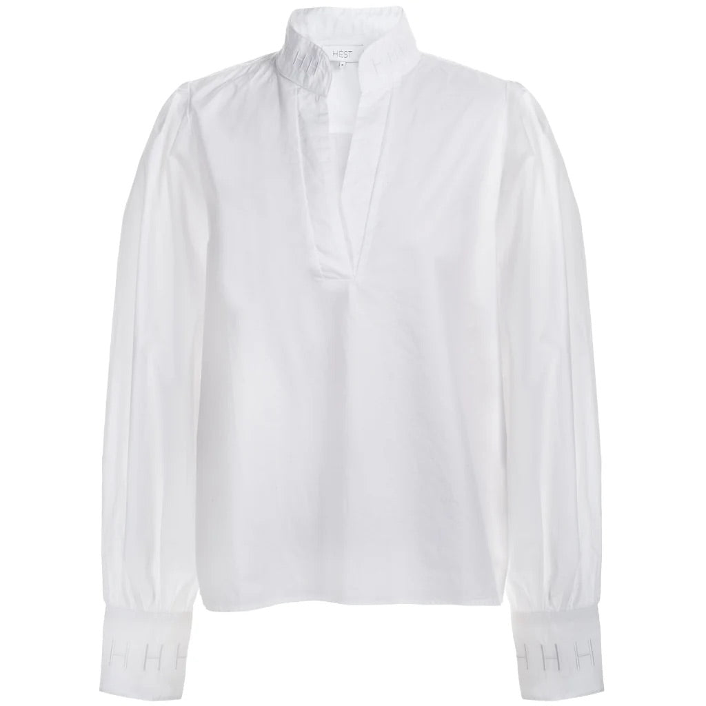 Mie Blouse fra Hést. Mie Blouse er laget i 100% bomullspoplin som føles både myk og behagelig. Blusen har en klassisk passform som passer like godt til hverdags med jeans som til jobb og fest med dressbukser. En tidløs favoritt du kan bruke igjen og igjen. Normal i størrelsen.