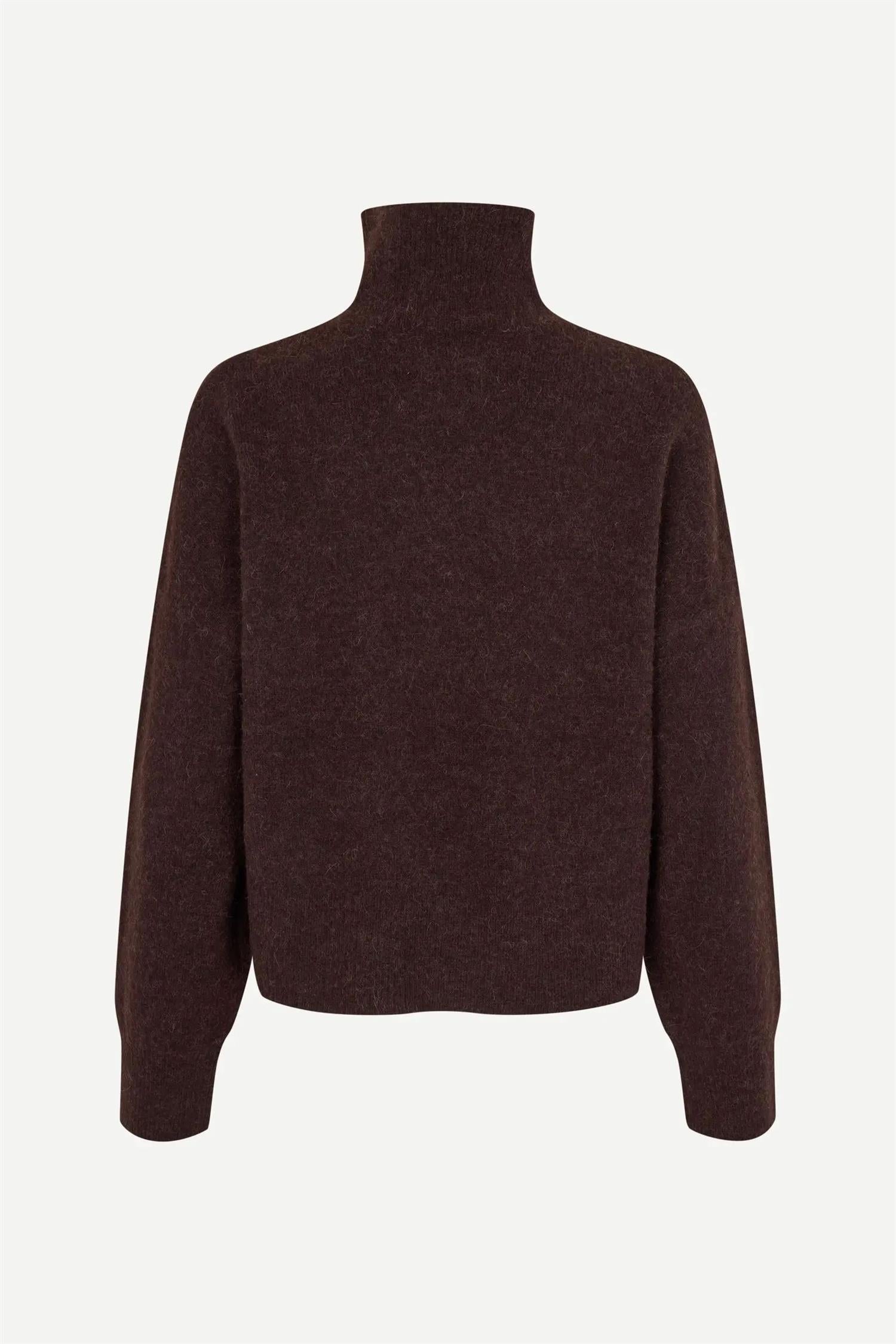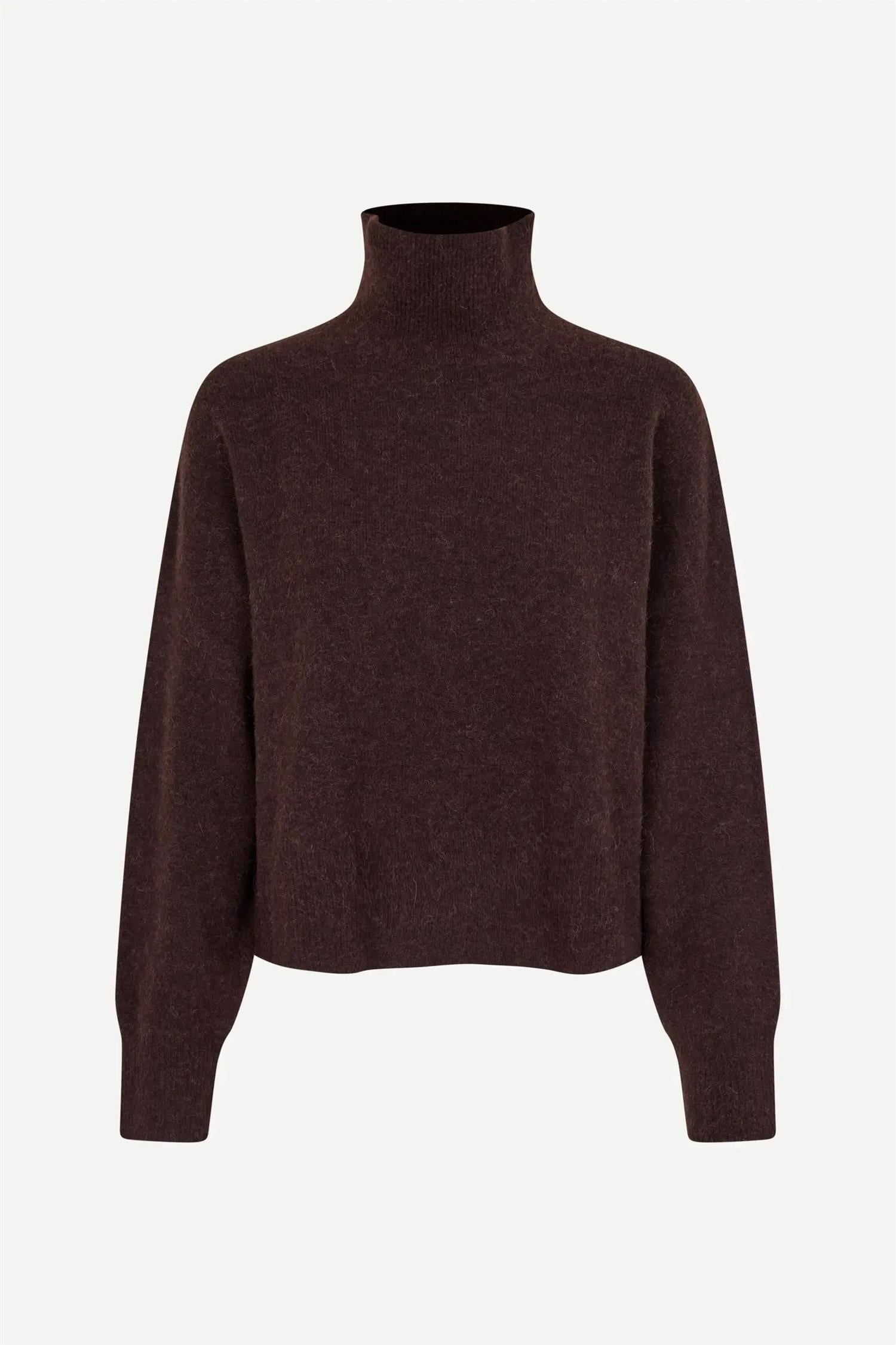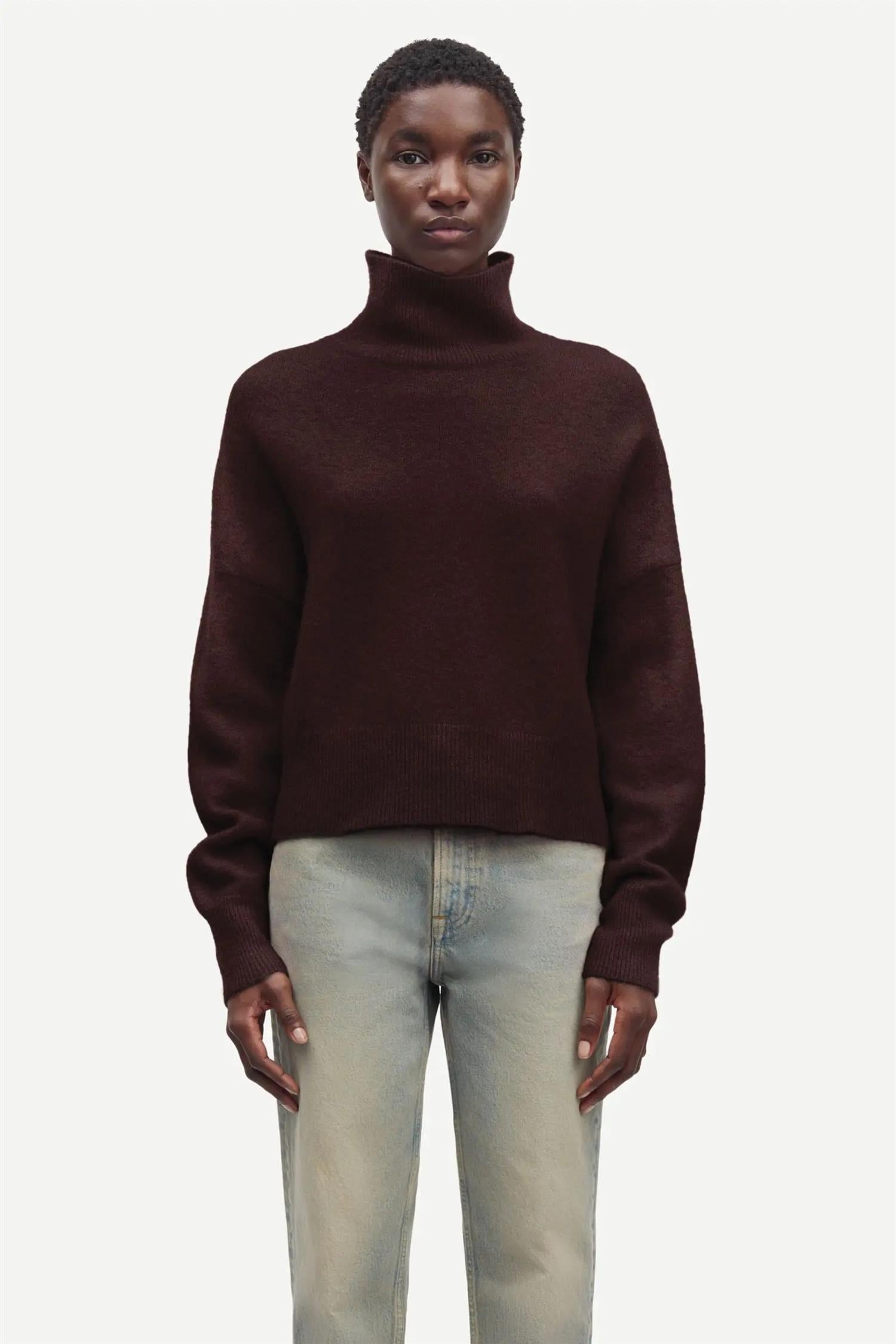 Nola T-N 7355 fra Samsøe Samsøe. Myk genser med høy hals og avslappet passform. Droppede skuldre gir et moderne uttrykk, mens ribbestrikk på hals, ermer og kant gir en klassisk finish. Strikket i en varm og komfortabel blanding av ull, alpakka og resirkulert polyester. Normal i størrelsen.