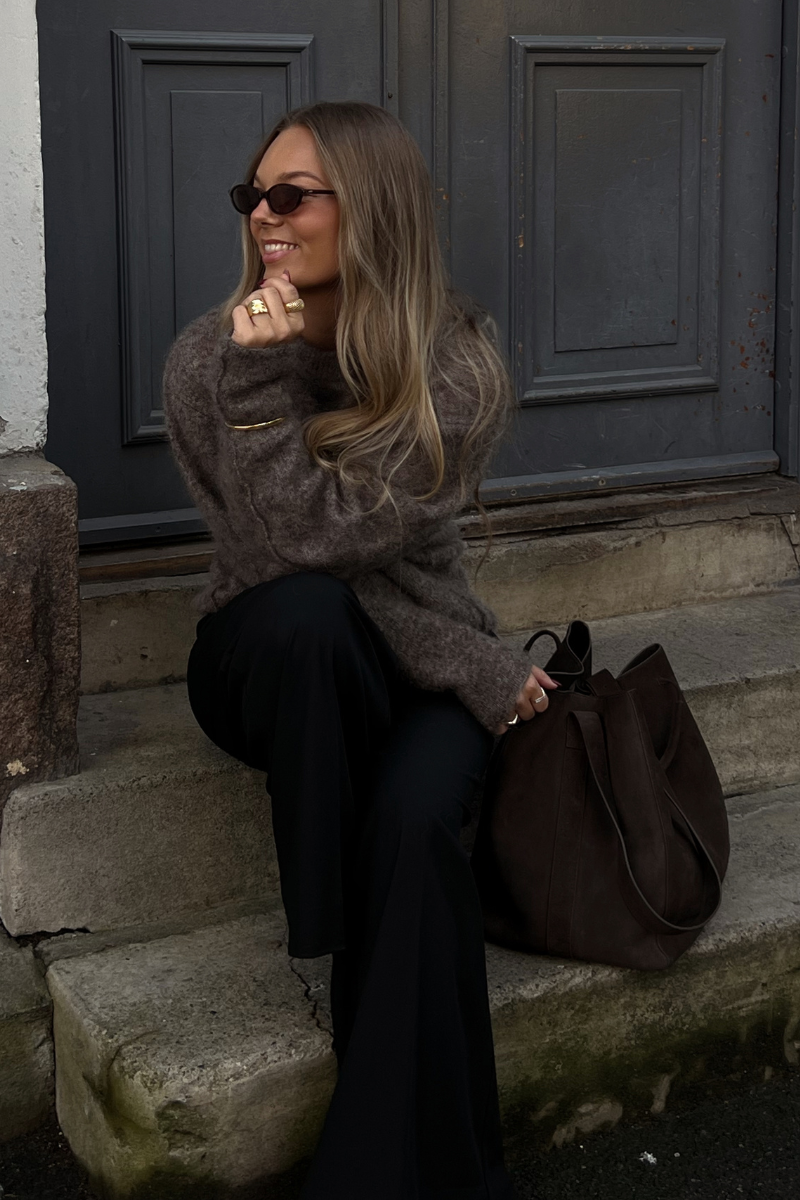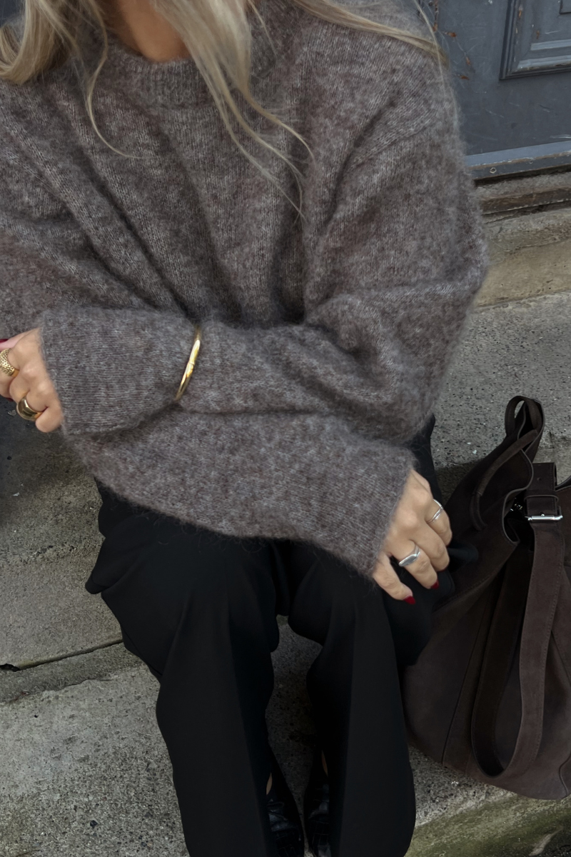 Materiale: 36% kid mohair, 36% alpakka, 25% resirkulert polyamid, 3% elastan.