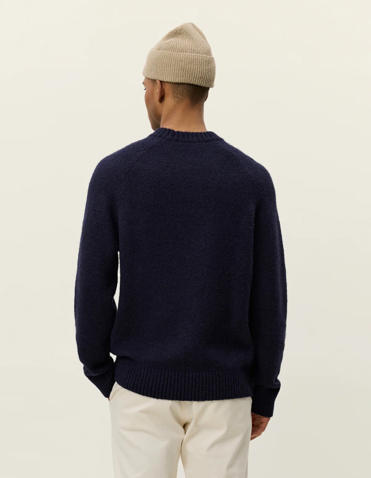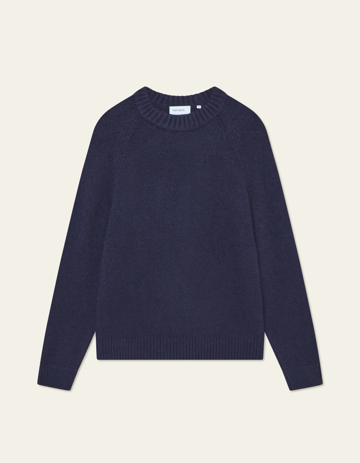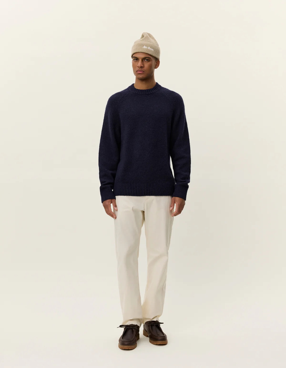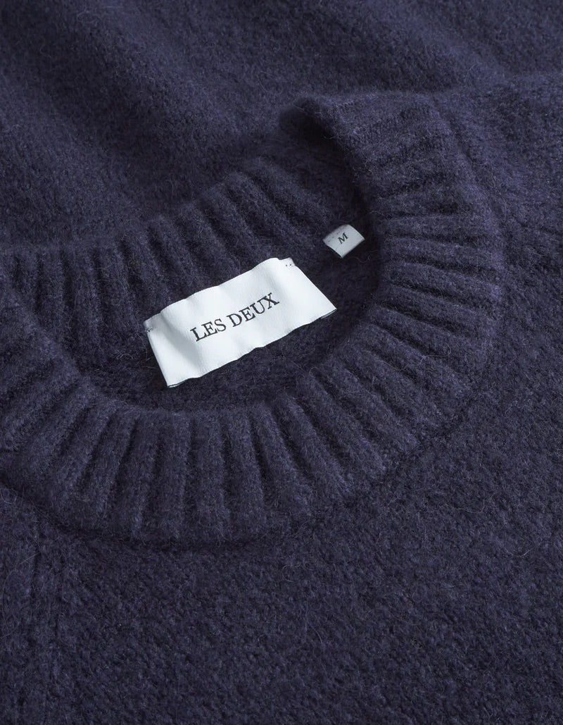 Gilbert Crewneck Knit fra Les Deux. En teksturert strikkegenser i regular fit med et tidløst uttrykk. Laget i en myk ull- og alpakka-blanding som gir både komfort og varme. Designet med o-neck, ribbede mansjetter, fald og halskant, samt melert garn som tilfører unike variasjoner i hver maske. Normal i størrelsen. Modellen er 185 cm høy og bruker størrelse M.