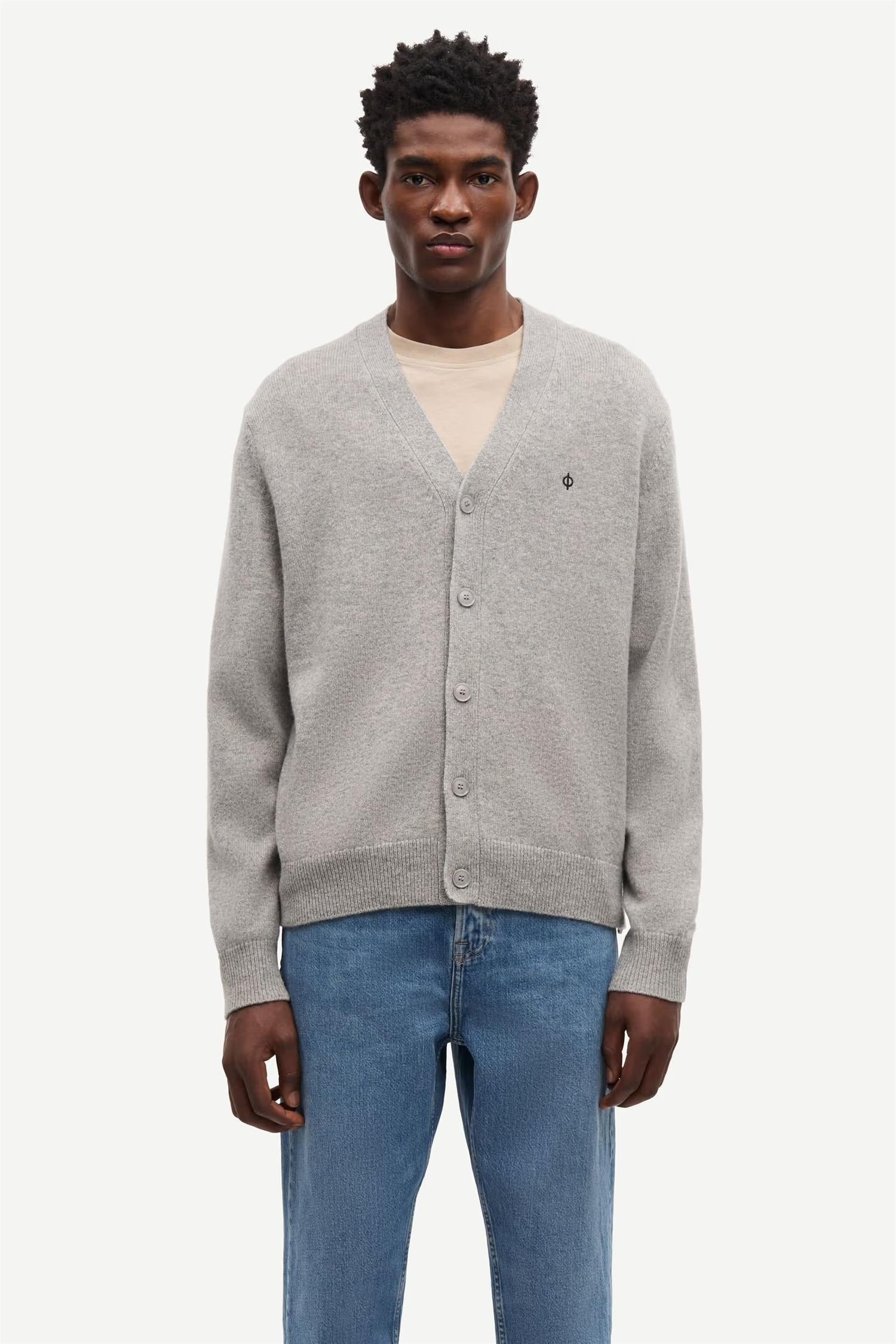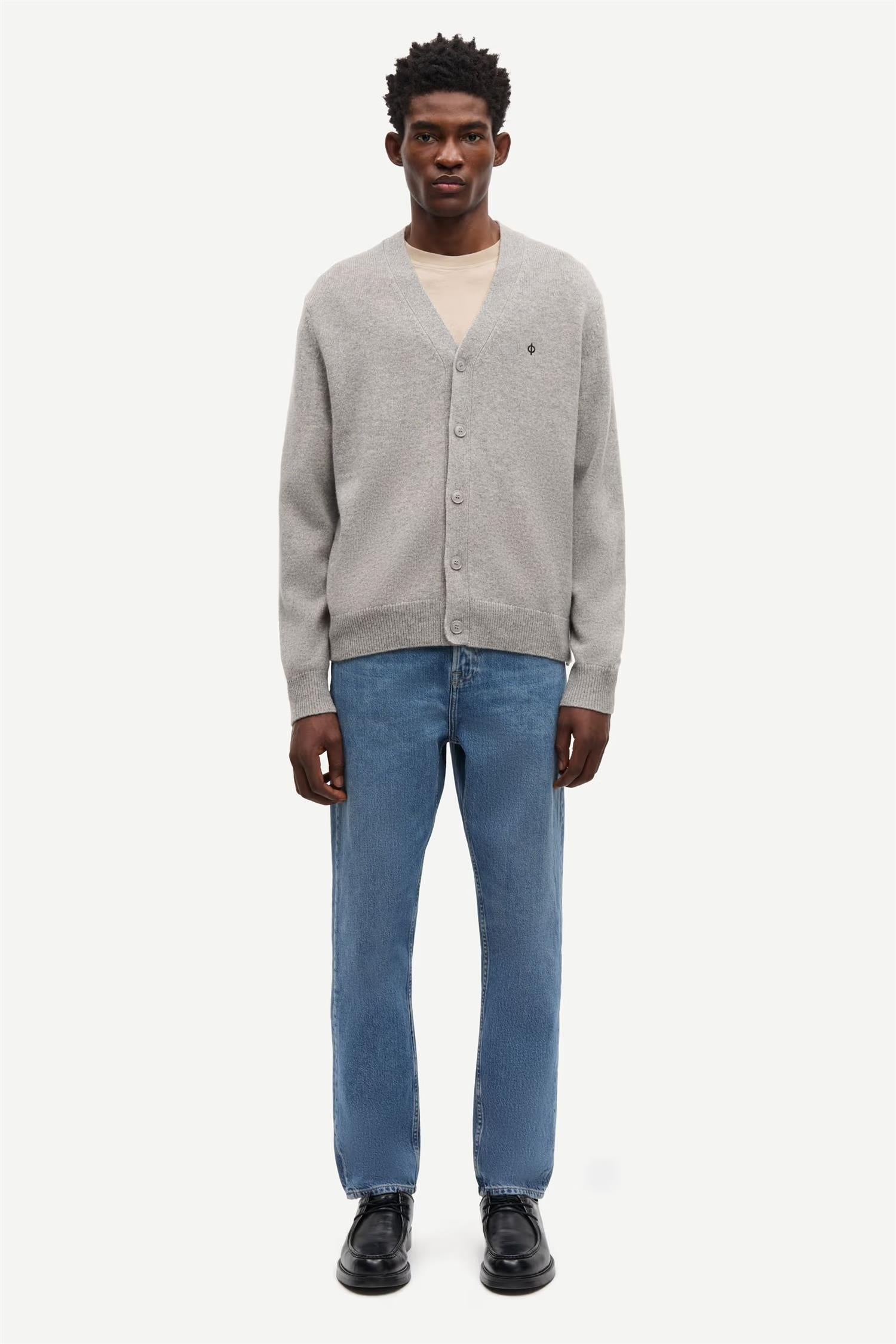 Sapatrik Cardigan 132 fra Samsøe & Samsøe. Sapatrik Cardigan 132 er en tidløs cardigan med regular fit og V-hals. Den har ribbestrikkede mansjetter og kant, samt brodert Ø-branding på brystet. Cardiganen er laget av en myk ullblanding og gir både komfort og stil. Normal i størrelsen.