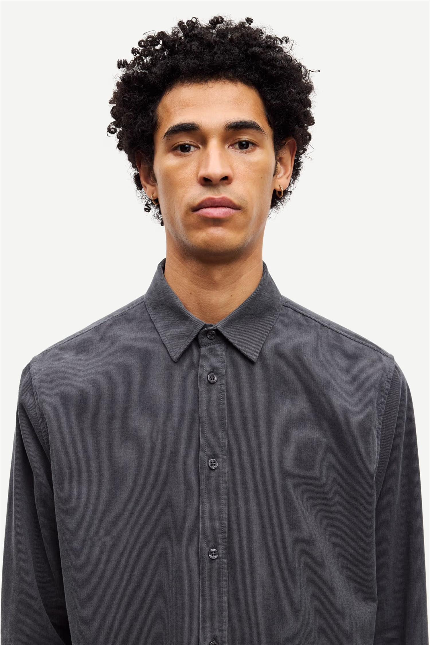 Saliam NX Shirt 10504 fra Samsøe & Samsøe. Saliam NX Shirt 10504 er en kordfløyelsskjorte med regular fit, laget i 100% økologisk bomull. Skjorten har knappelukking foran, mansjetter med knapper, buet kant og plissert detalj bak. Normal i størrelsen.