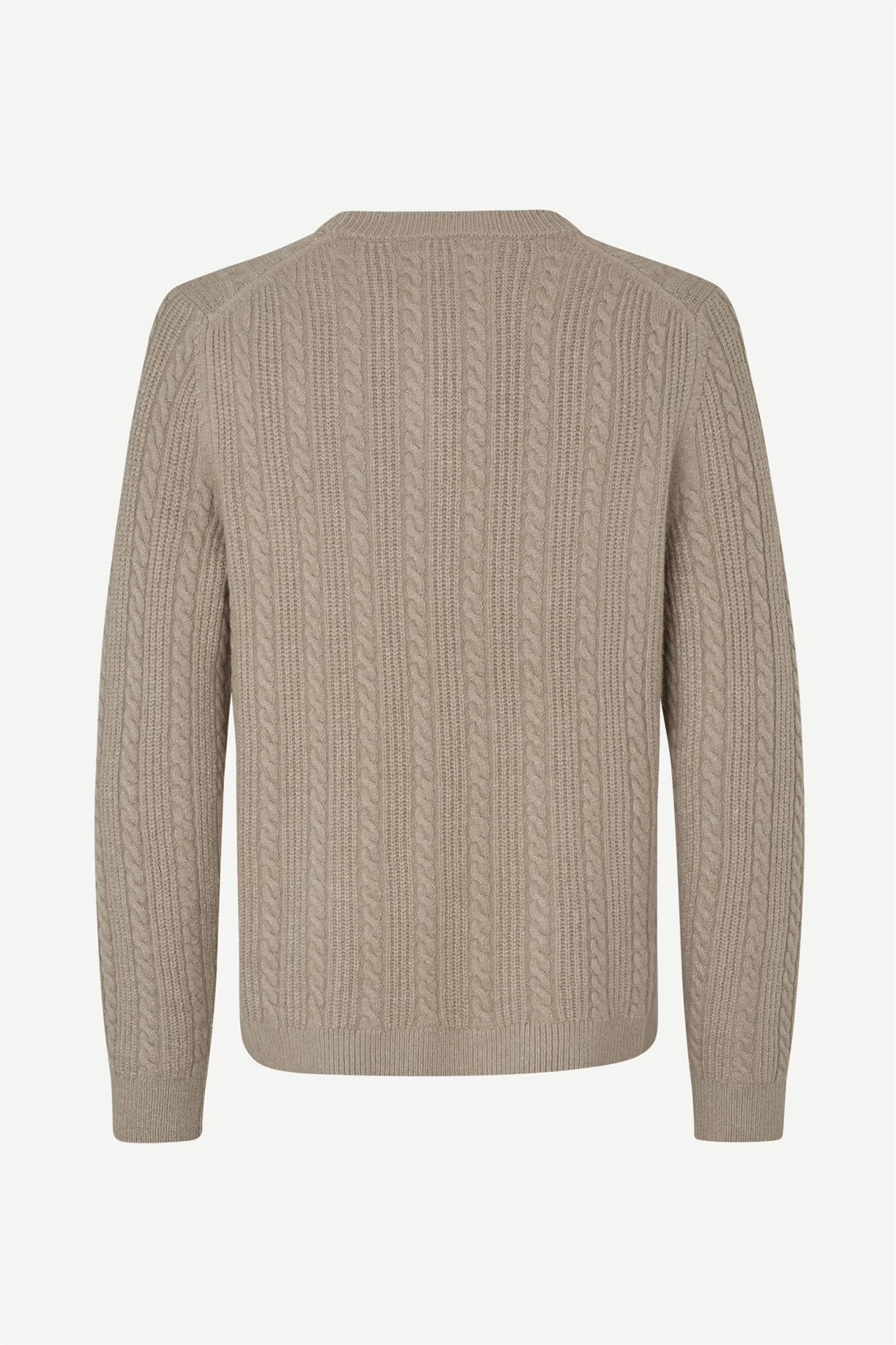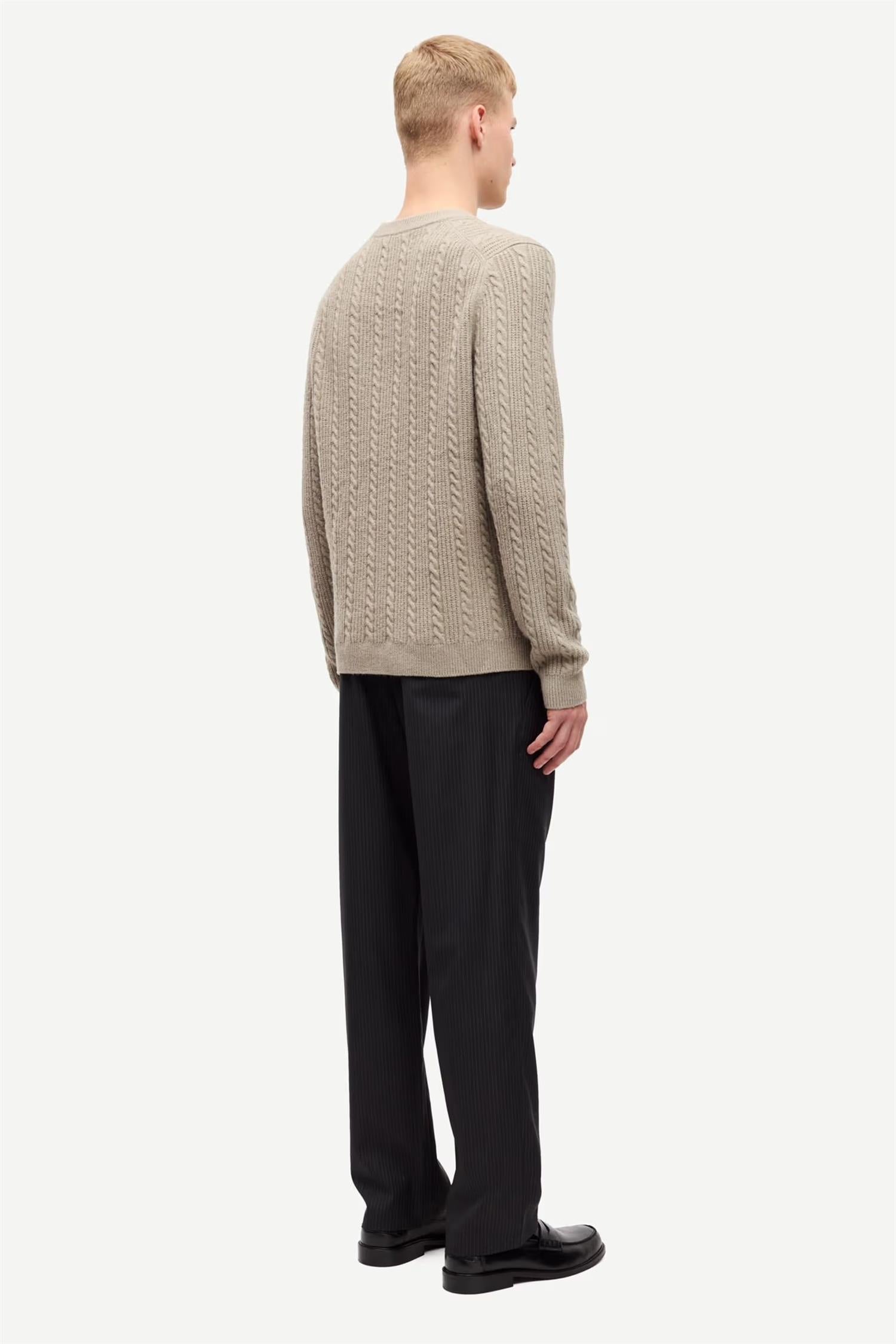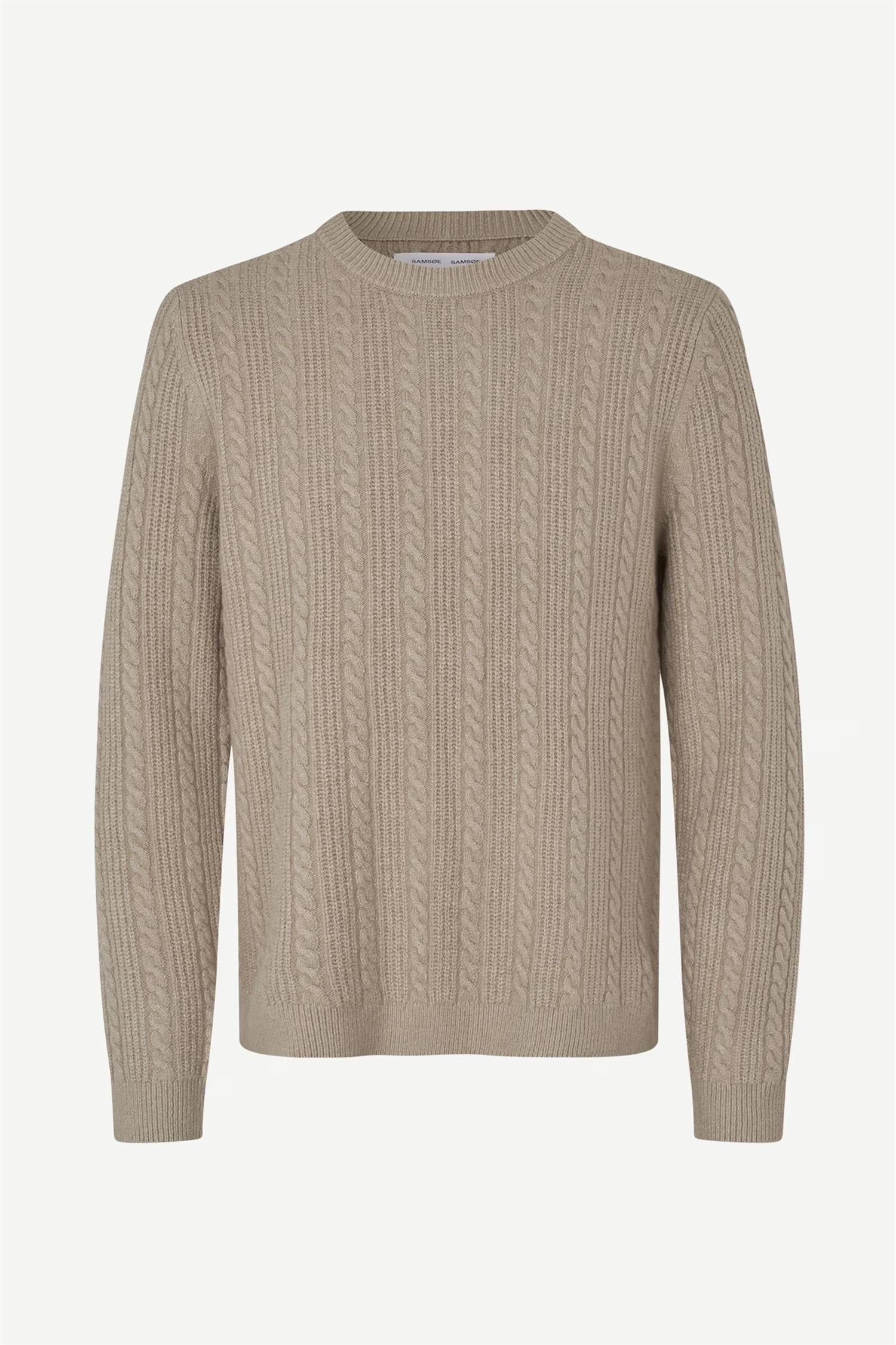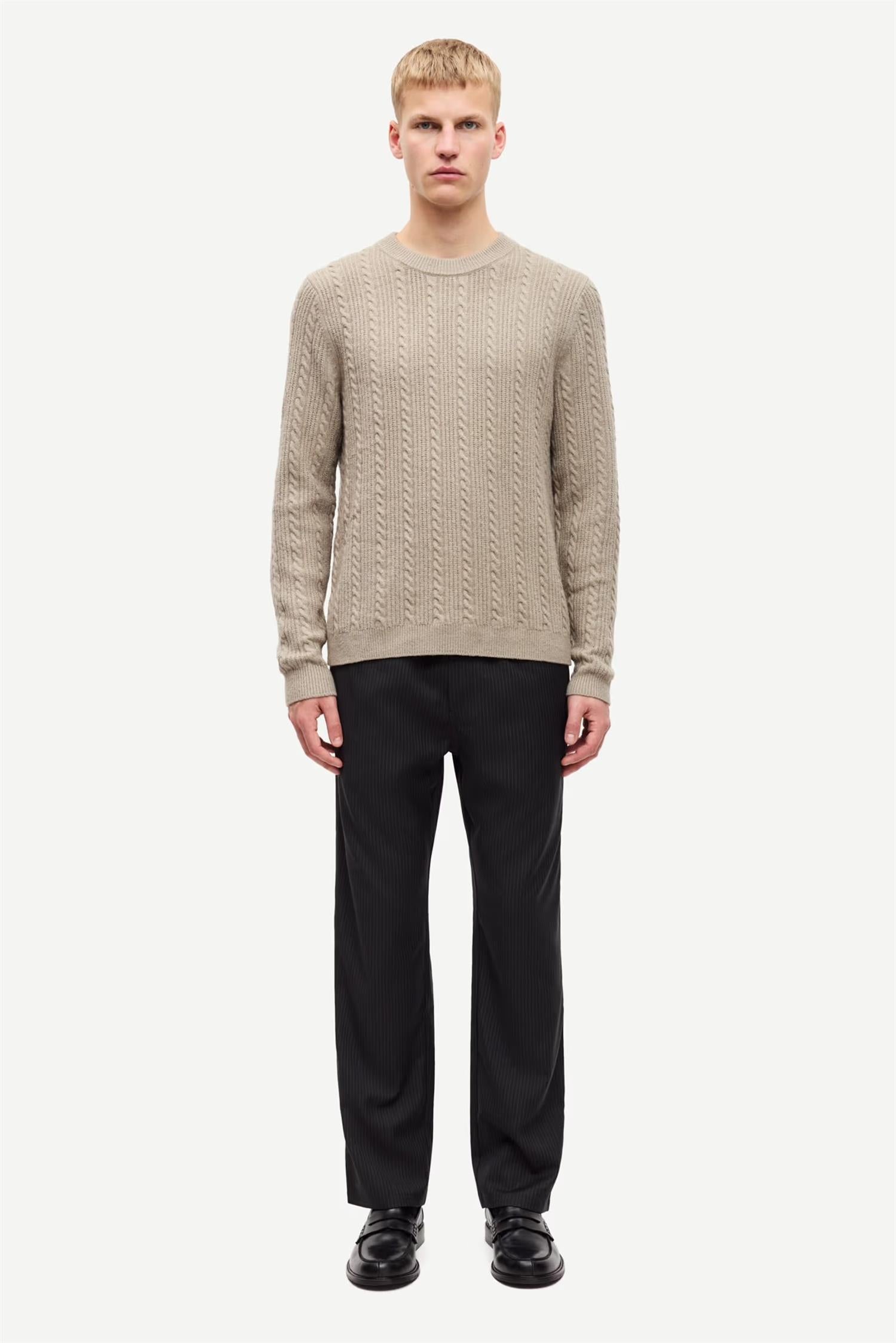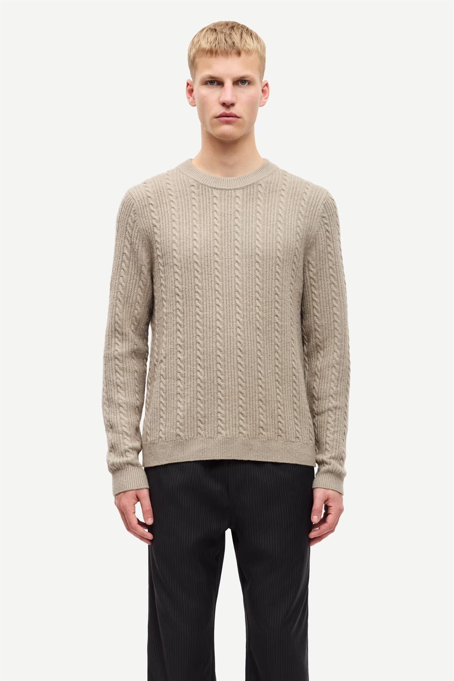 Sacassius Sweater 15721 fra Samsøe & Samsøe. Sacassius Sweater 15721 er en klassisk genser med regular fit, laget i en myk og eksklusiv bomullsblanding. Genseren er kabel- og ribbestrikket, med ribbestrikket krage, mansjetter og nederkant som gir et tidløst og stilrent uttrykk. Den har rund hals og en behagelig passform som gjør den enkel å style til både hverdags og jobb. Normal i størrelsen.
