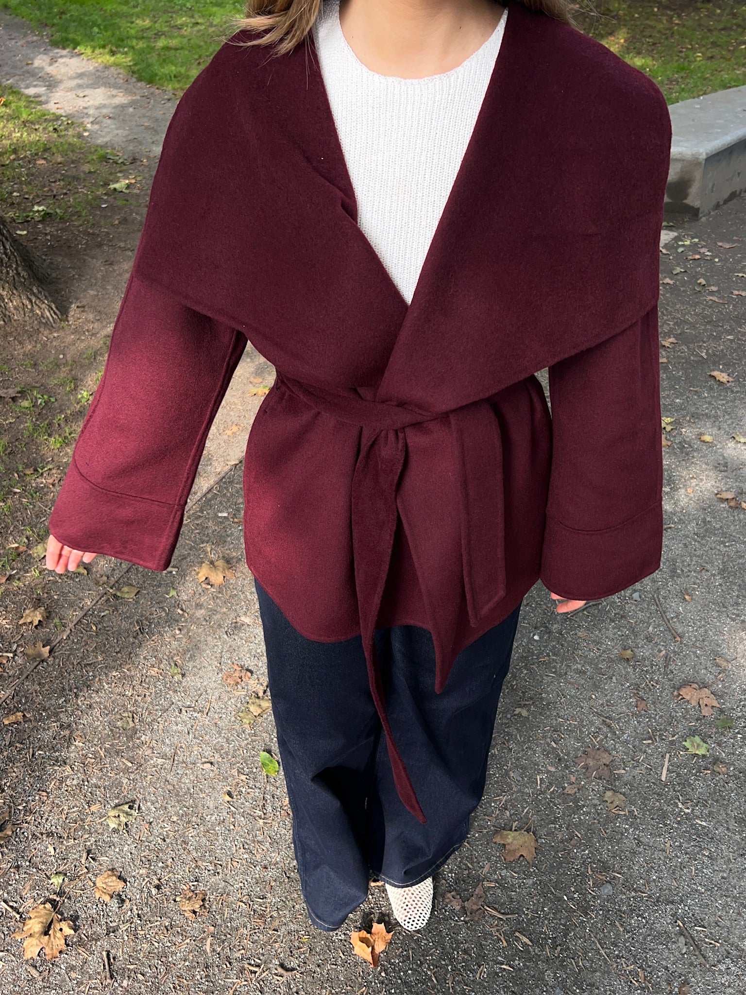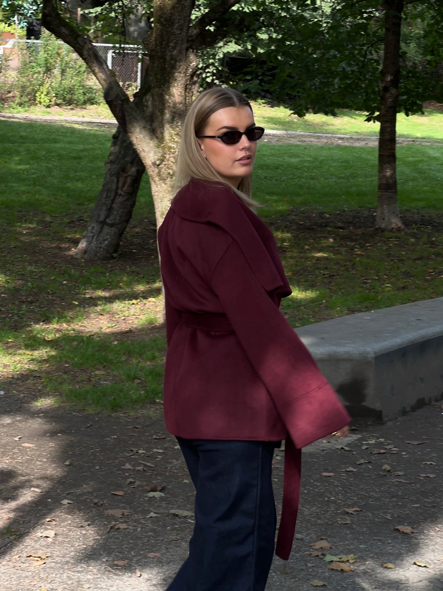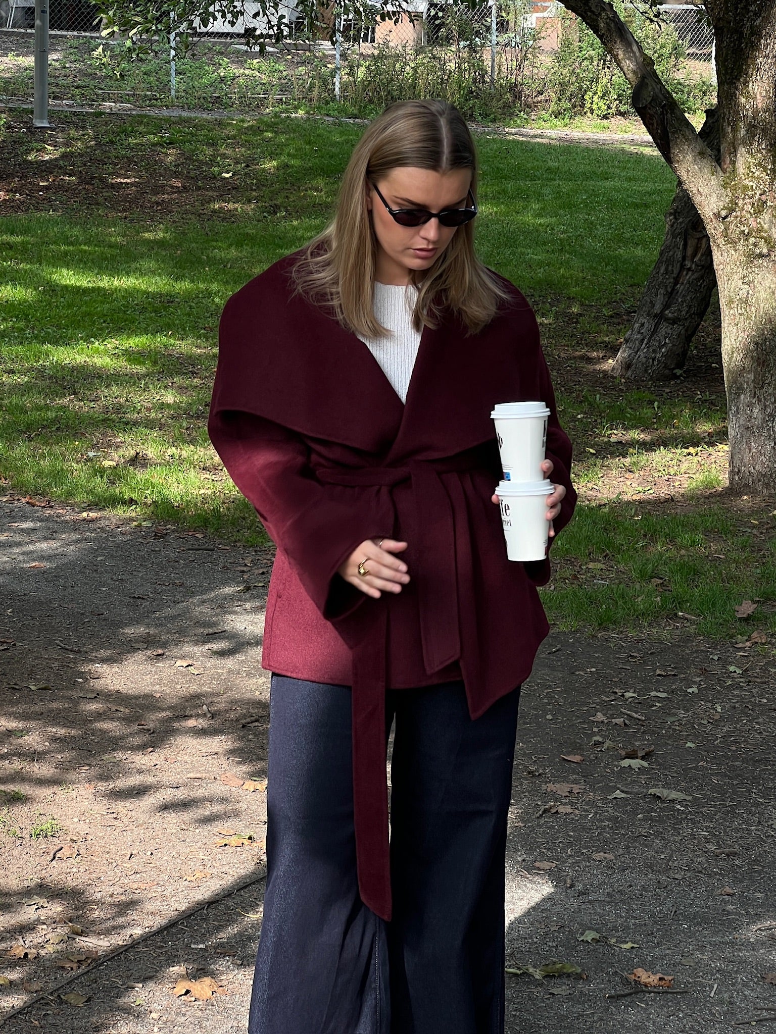 Arabella Jacket fra Urban Pioneers. Arabella Jacket er en kort omslagsjakke i ull som utstråler tidløs eleganse – den perfekte korte kåpen til høstsesongen. Den har en luksuriøs håndfølelse og en flatterende silhuett som gjør den ideell til lag-på-lag-styling gjennom sesongene. Med et matchende knytebelte som fremhever midjen, kombinerer Arabella både varme og stil. En allsidig jakke som enkelt løfter ethvert antrekk, enten det er til hverdags eller mer formelle anledninger. Normal i størrelsen.