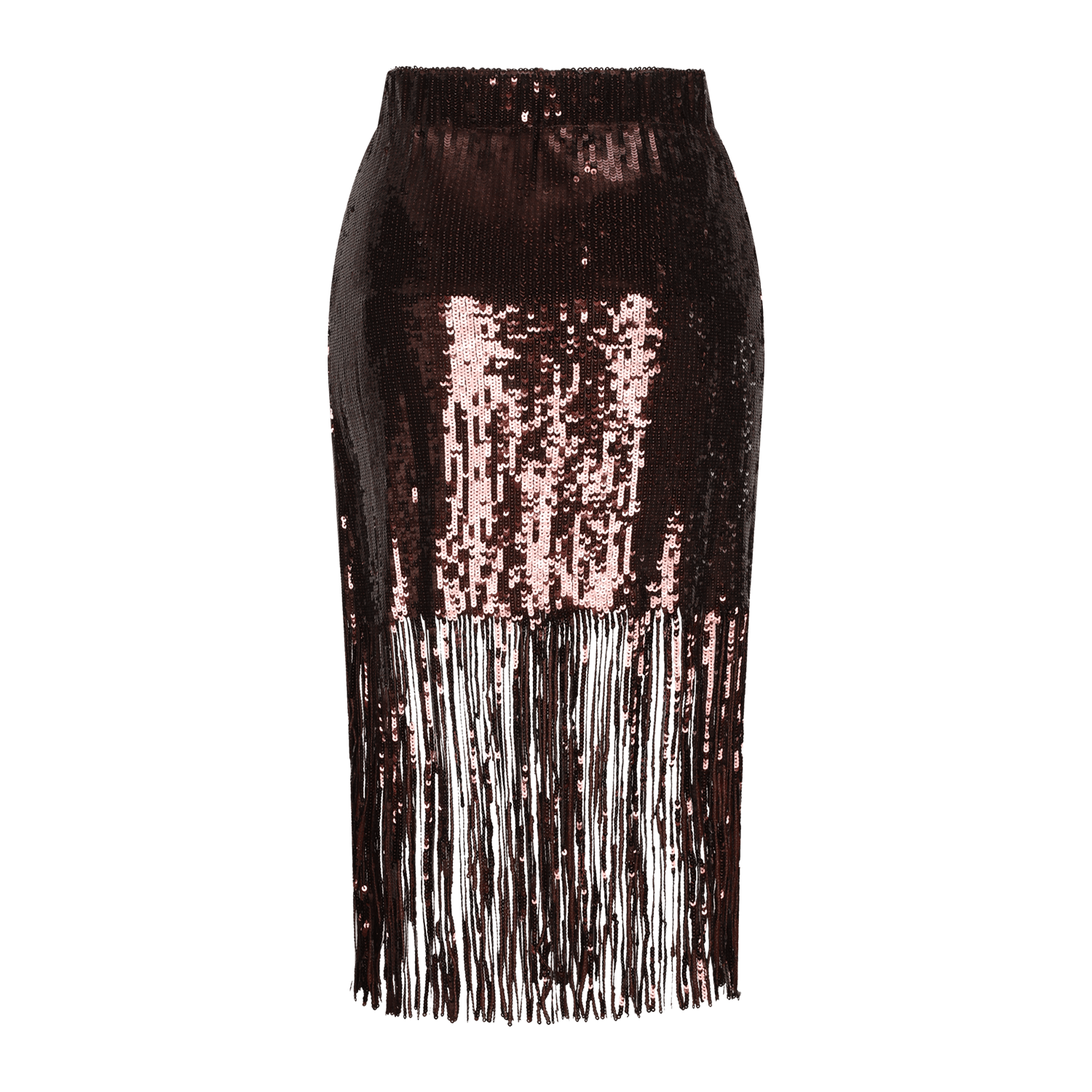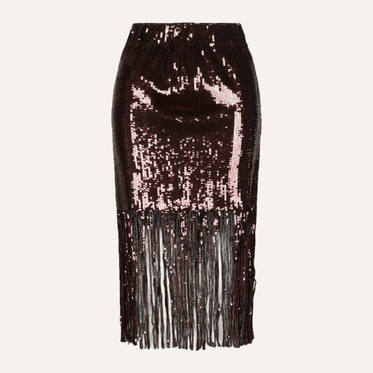 Dixi Skirt fra Urban Pioneers. Dixi Skirt er det ultimate festskjørtet, pyntet med glitrende paljetter og lekre frynser som gir ekstra bevegelse og liv til antrekket. Skjørtet har en behagelig strikk i livet og glidelås på siden for en perfekt passform. Normal i størrelsen.