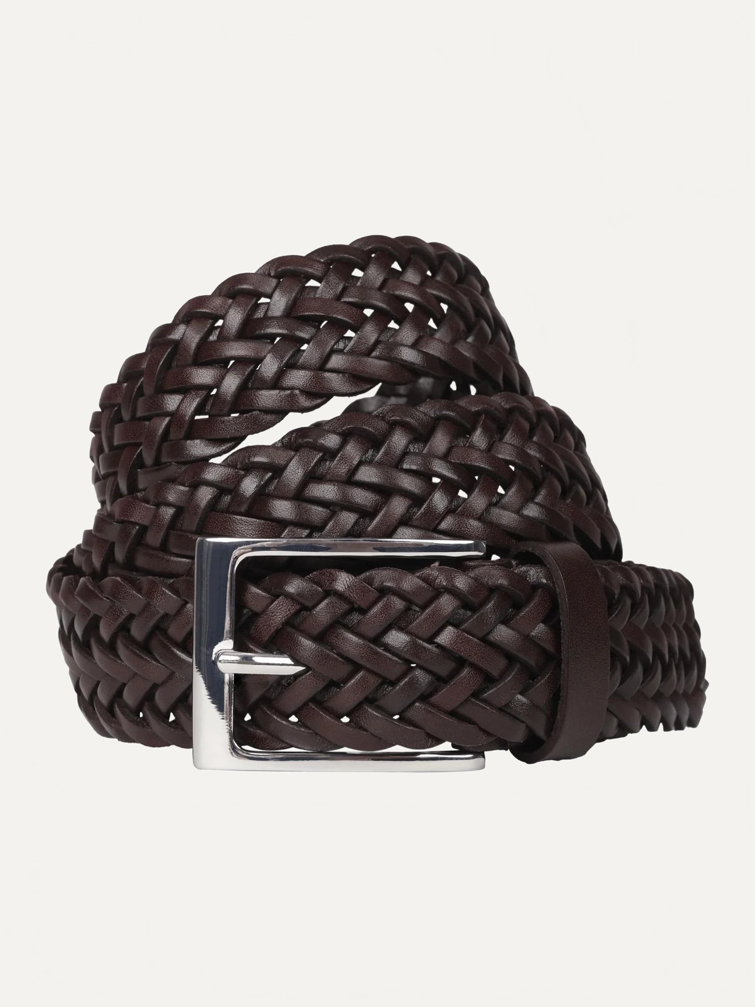 Detaljer: Flettet tekstur, sølvfarget spenne.