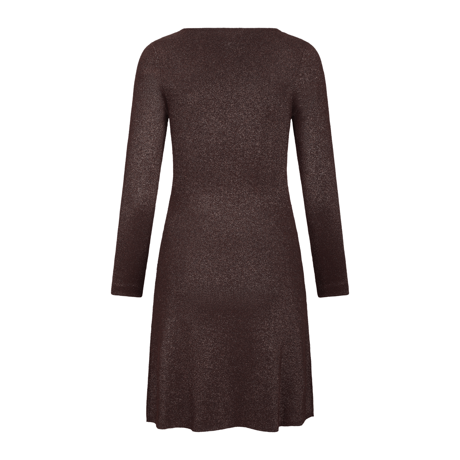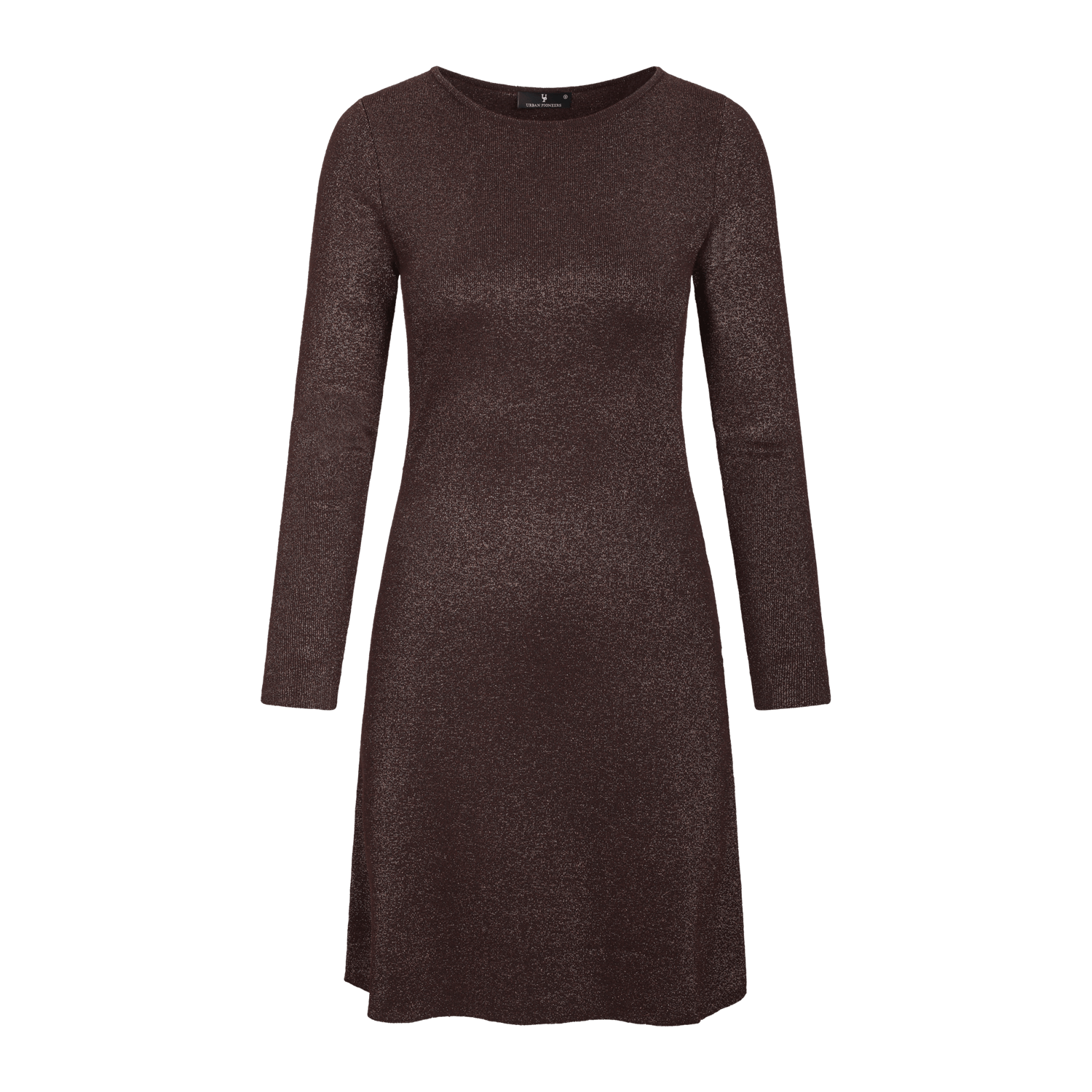 Arya Dress fra Urban Pioneers. Arya Dress er en elegant strikkekjole i luksuriøs viskose med diskrete metalliske tråder som gir en subtil glans. Med en flatterende, figurnær silhuett og lange ermer er den perfekt både til festlige anledninger og når du vil tilføre litt glans i hverdagen. Normal i størrelsen.