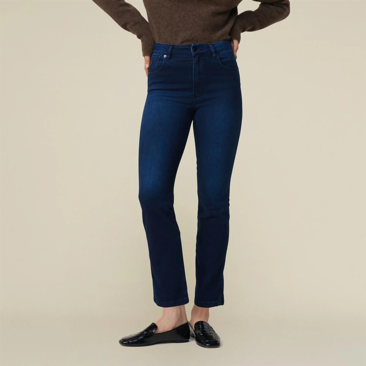 Malena-F Midnight Core fra Lois. Malena F er klassiske, rette jeans med høyt liv – en tidløs modell som passer til enhver anledning. Jeansen er laget i et mykt stretchstoff som gir en behagelig passform. Produsert i Spania med fokus på kvalitet og varighet. Normal i størrelsen.
