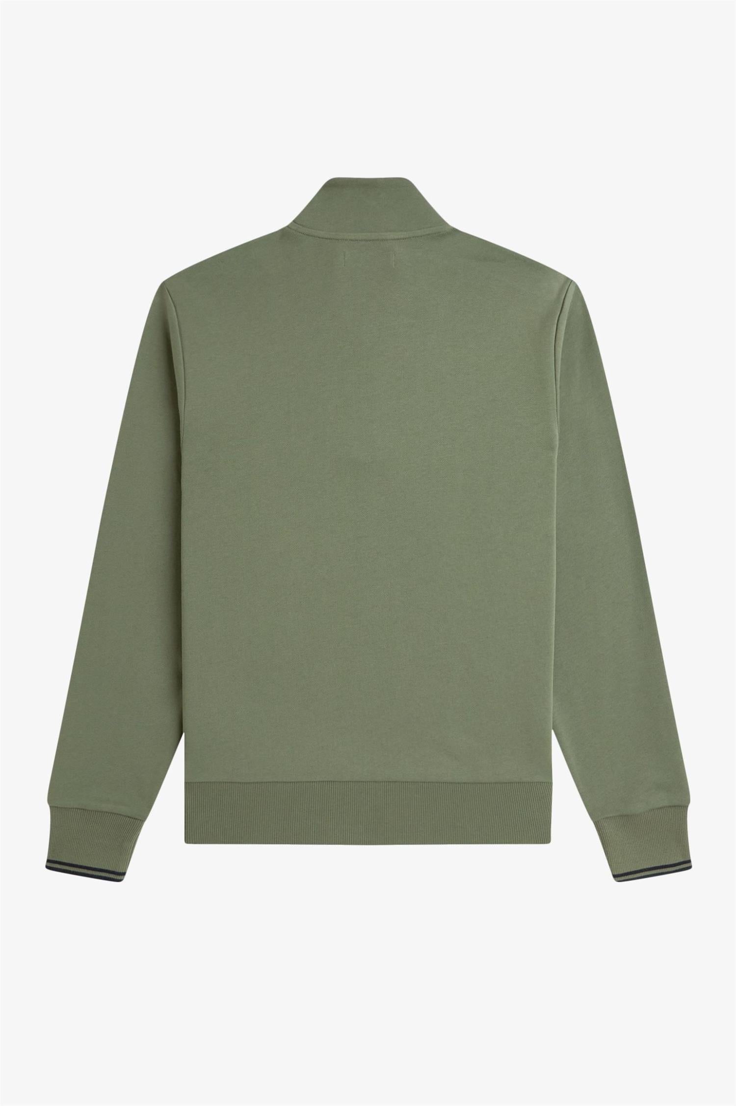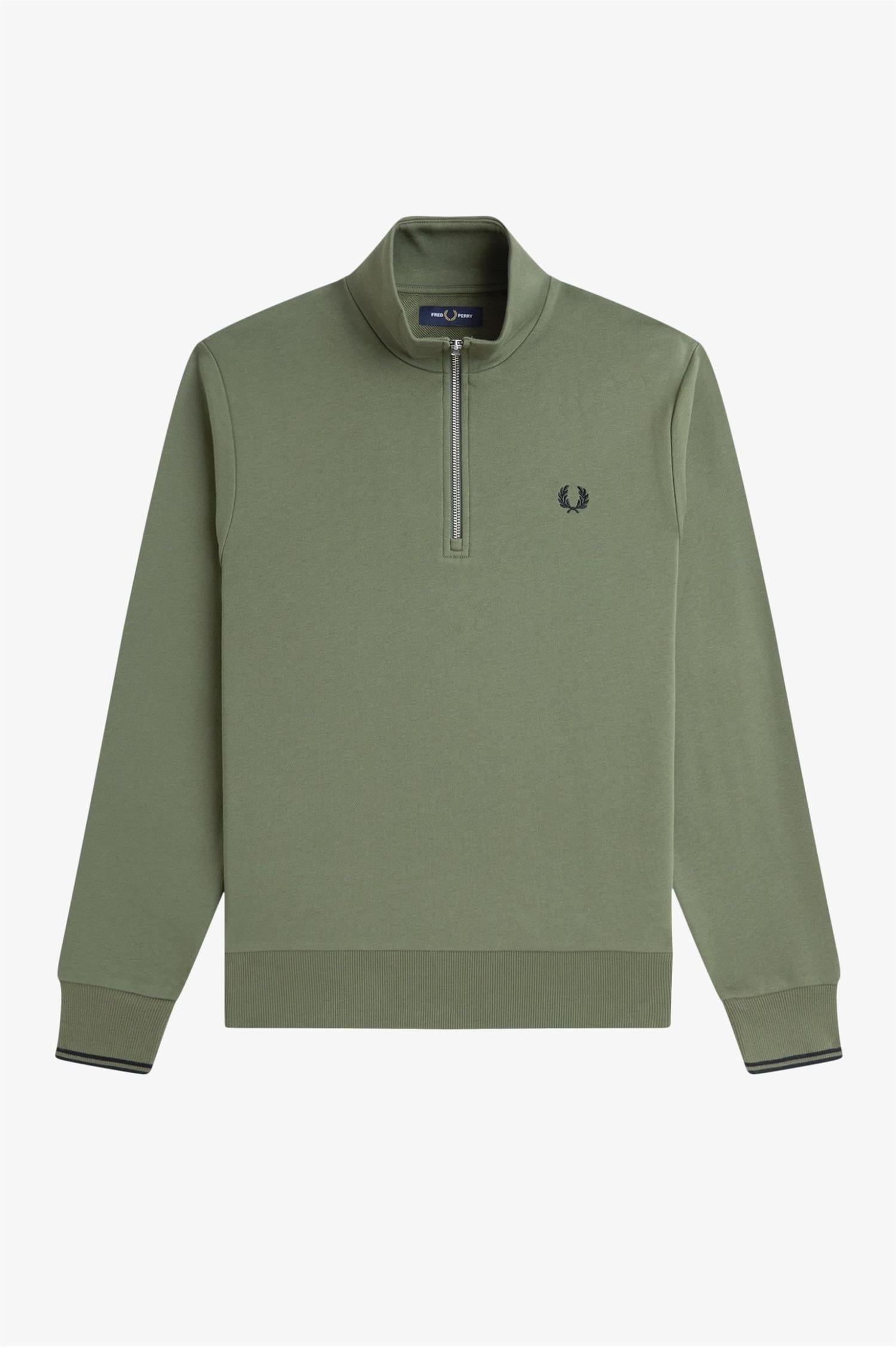 Half Zip Sweatshirt fra Fred Perry. Stilren Half Zip Sweatshirt fra Fred Perry som kombinerer klassisk design med subtile signaturdetaljer. Laget av 100% bomull i mykt French terry-stoff, sikrer den komfort og pusteevne. Med regular fit, twin-tippede mansjetter og en synlig sølvglidelås foran, tilbyr genseren en tidløs og allsidig stil. Perfekt til både jeans og chinos for en sporty eller sofistikert look. Normal i størrelsen.
