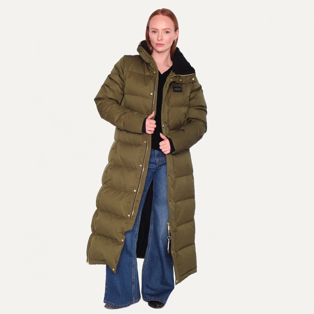 Edda Down Coat fra Hést. Edda Down Coat er en allsidig dunjakke med avtagbare ermer, slik at den enkelt kan gjøres om til en vest. Den lange fasongen kombinerer varme og funksjonalitet, med glidelås i sidene, trykknapper og en fleecefôret krage som gir ekstra komfort. En stilren logodetalj på brystet. Normal i størrelsen.