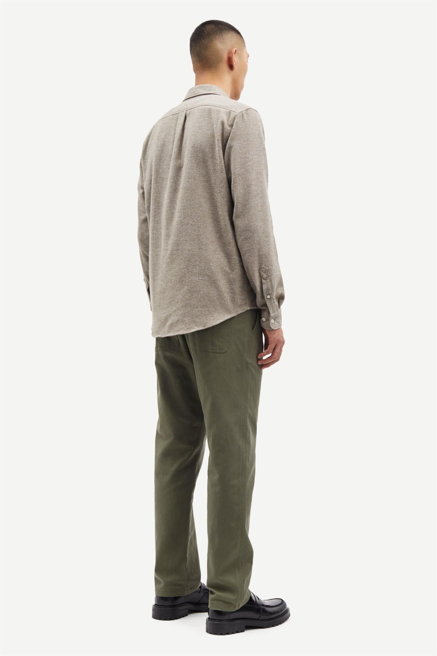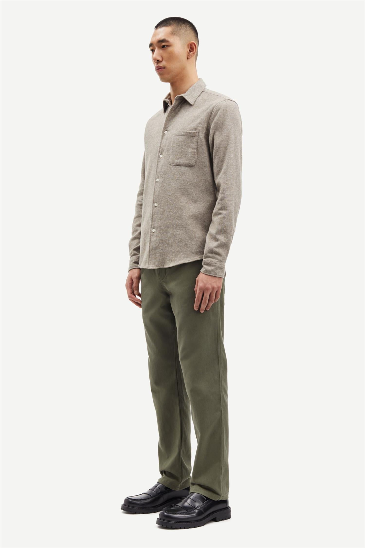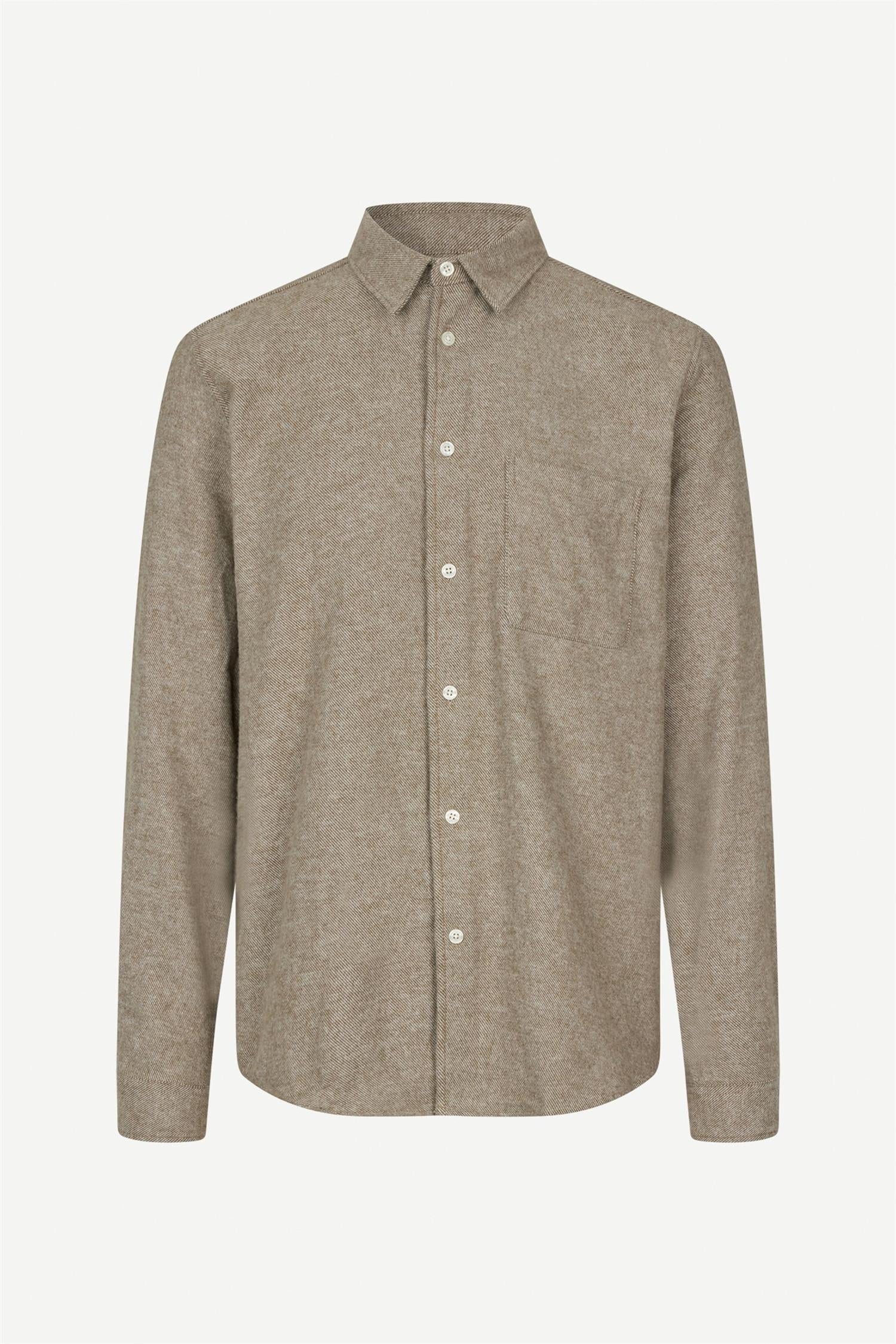 Liam NF Shirt 7383 fra Samsøe & Samsøe. En stilren og komfortabel langermet skjorte laget av myk, børstet bomull. Modellen har regular fit med klassiske detaljer som plisse i nakken og en praktisk brystlomme – en moderne vri på en tidløs skjorte.