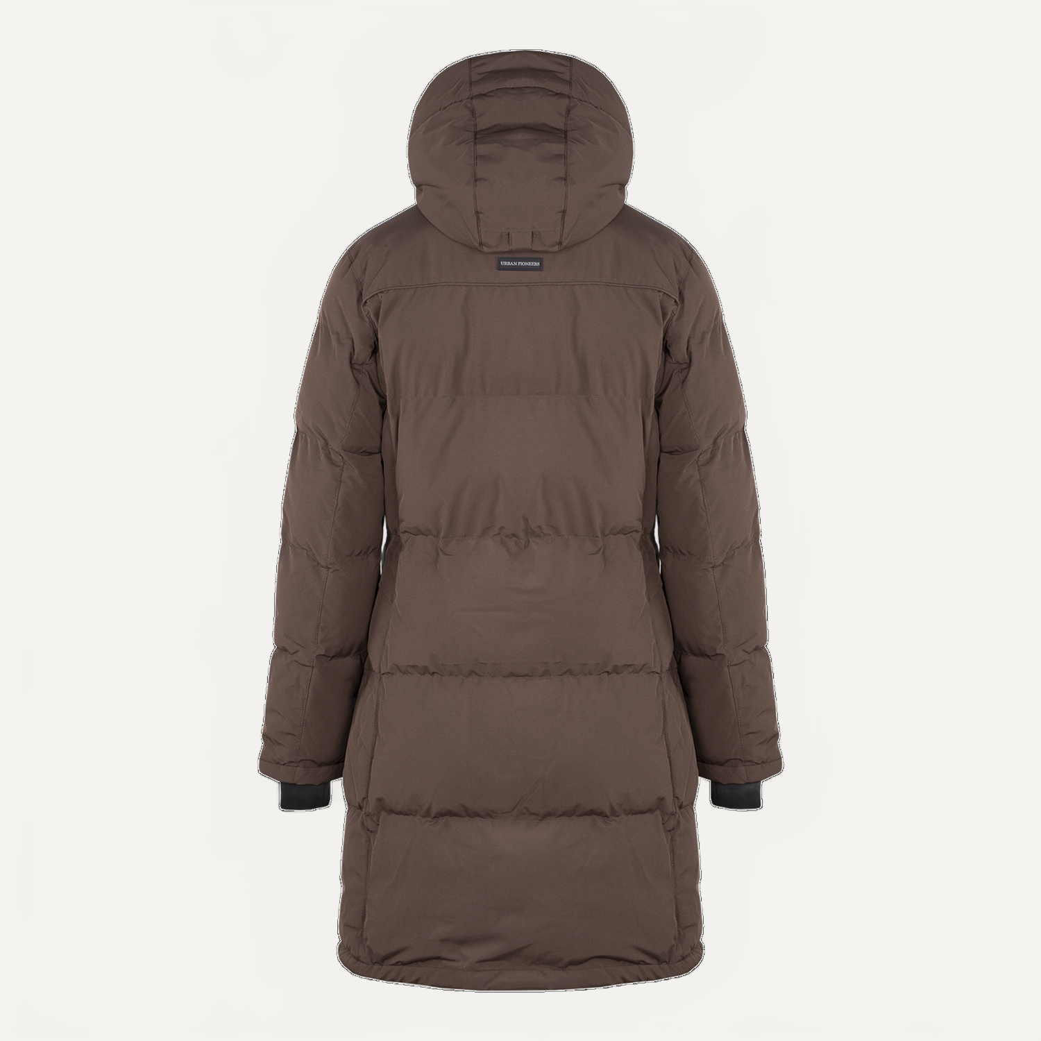 Liv Parka fra Urban Pioneers. Liv Parka er den perfekte jakken for kalde dager med vind, snø og lett regn. Med en vannsøyle på 10 000 mm og Warmlight-polstring laget av 100% resirkulert polyester, gir den både lettvektsisolasjon og pålitelig værbeskyttelse. Jakken har en feminin passform, avtagbar hette, og praktiske sidelommer for ekstra funksjonalitet. Den er normal til litt liten i størrelsen, så hvis du ligger mellom to størrelser, anbefales det å velge en størrelse større.