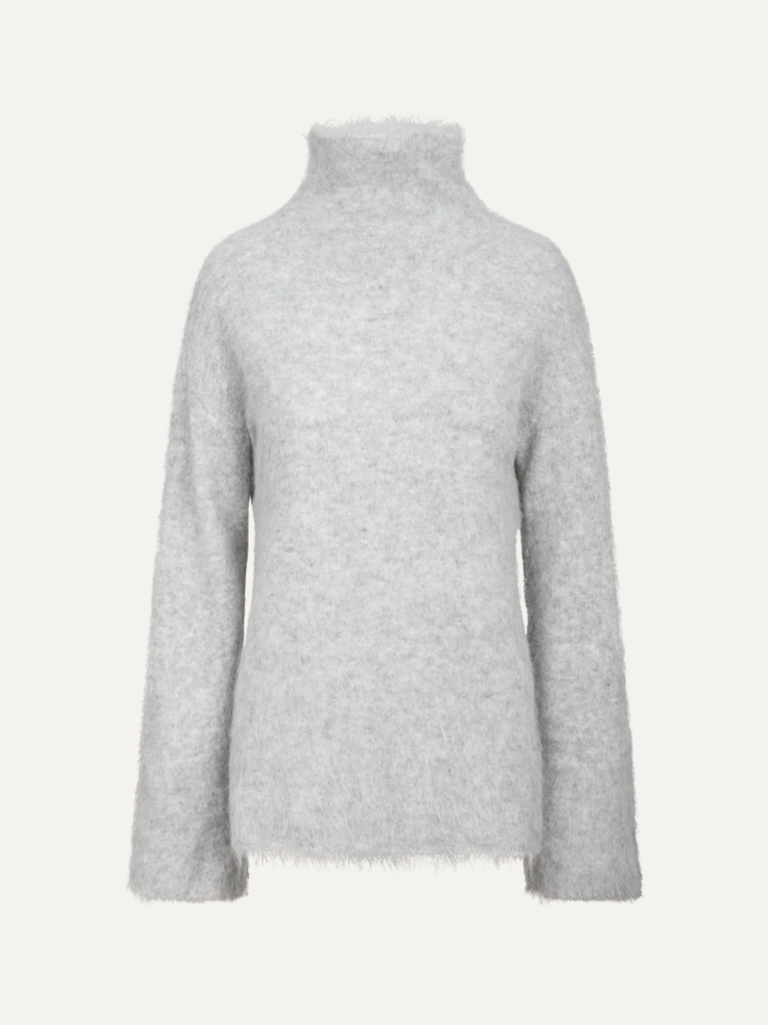 Edith Turtleneck fra Urban Pioneers. Edith Turtleneck er en tidløs og elegant høyhalset genser, perfekt for kjølige dager. Den er laget i en eksklusiv alpakka-blanding som gir en myk, varm og luksuriøs følelse mot huden. Med sin klassiske høyhalsede design og flatterende passform er den perfekt både alene og som en del av lag-på-lag-antrekk gjennom de kaldere månedene.