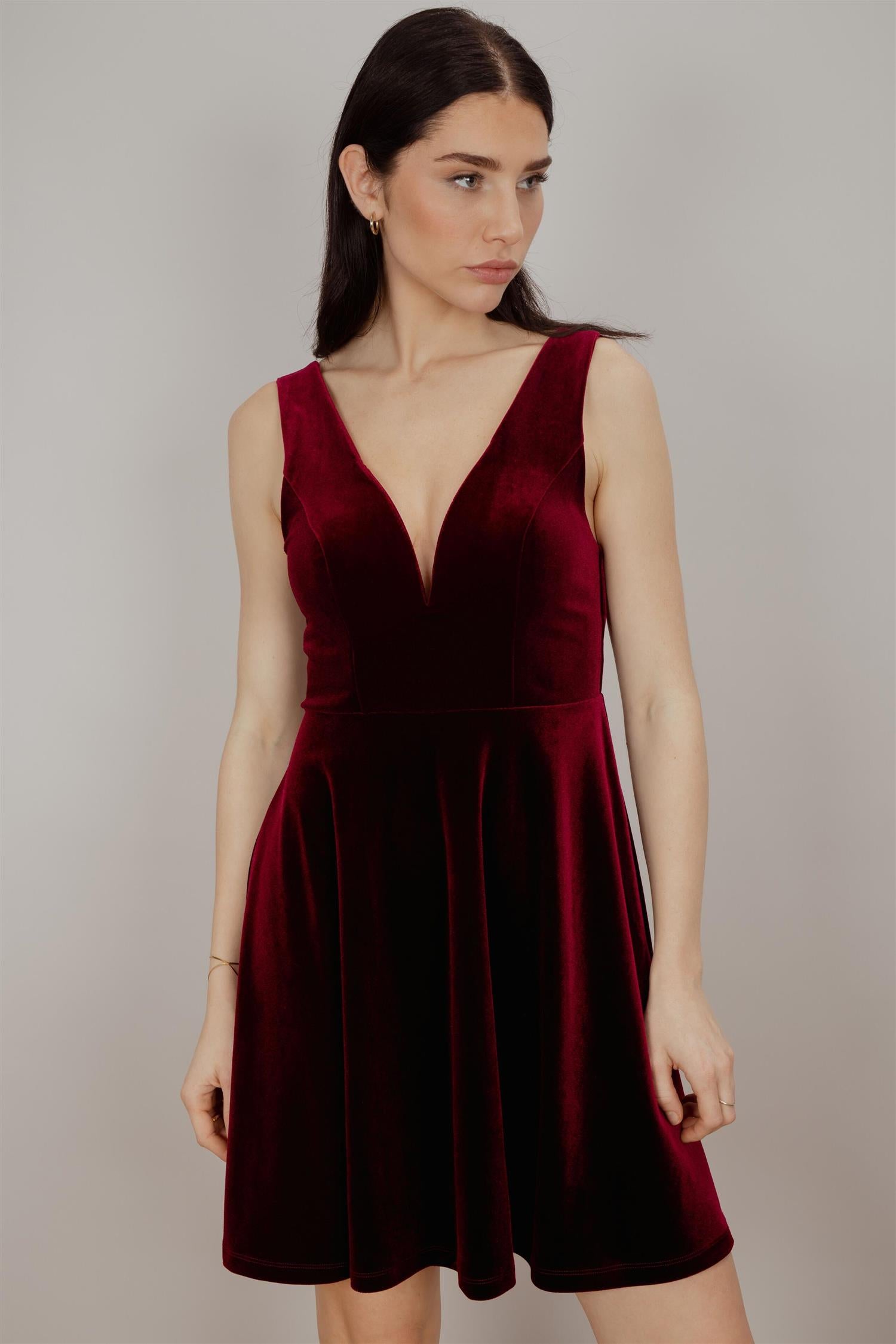 Ginza Dress fra Urban Pioneers. Ginza Dress er en elegant kjole i mykt, luksuriøst velourstoff. Med dyp V-hals og utsvingt skjørt skaper den en feminin og flatterende silhuett. Kjolen er ermeløs og et perfekt valg både til festlige anledninger og kvelder der du vil skinne. Normal i størrelsen.