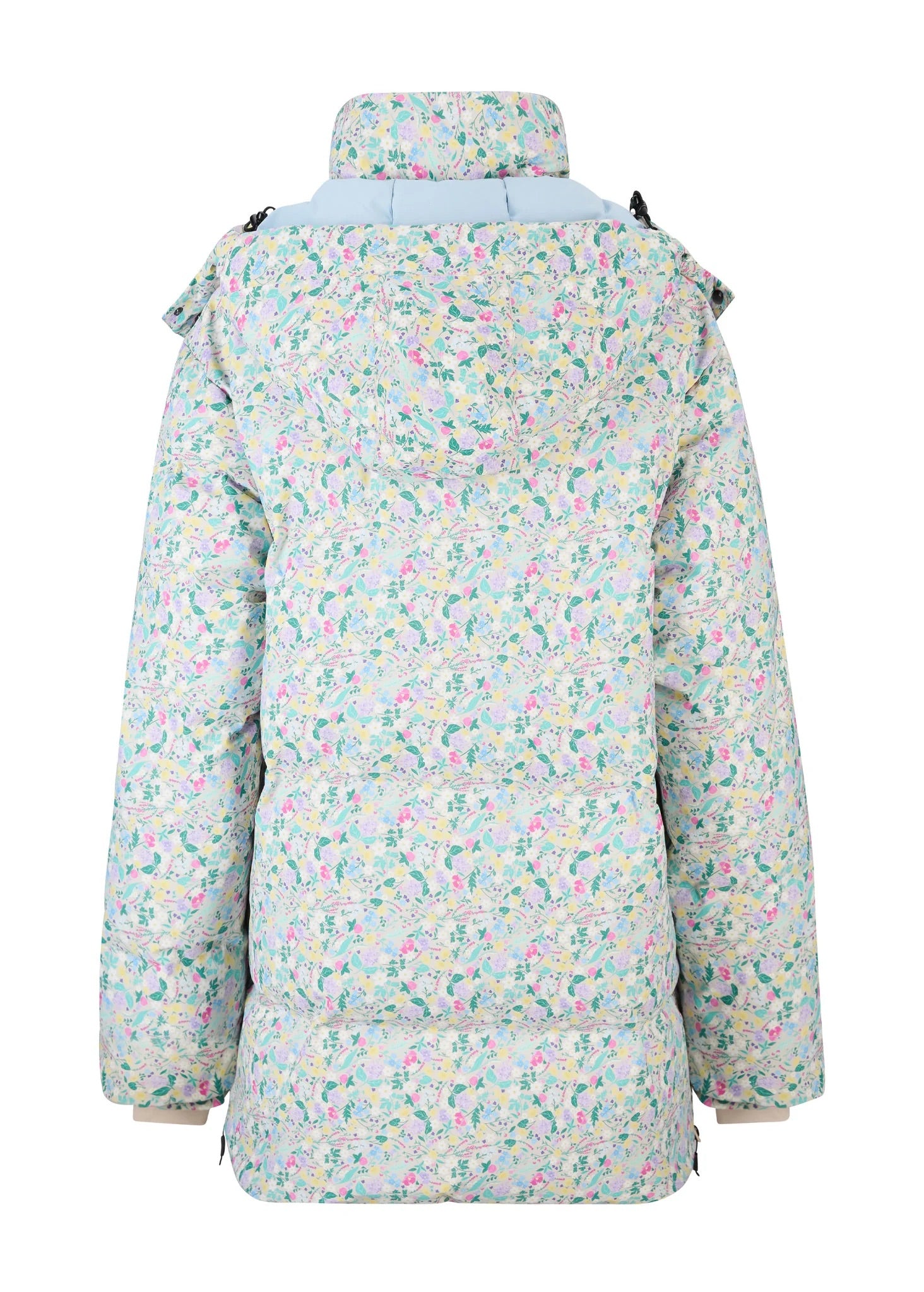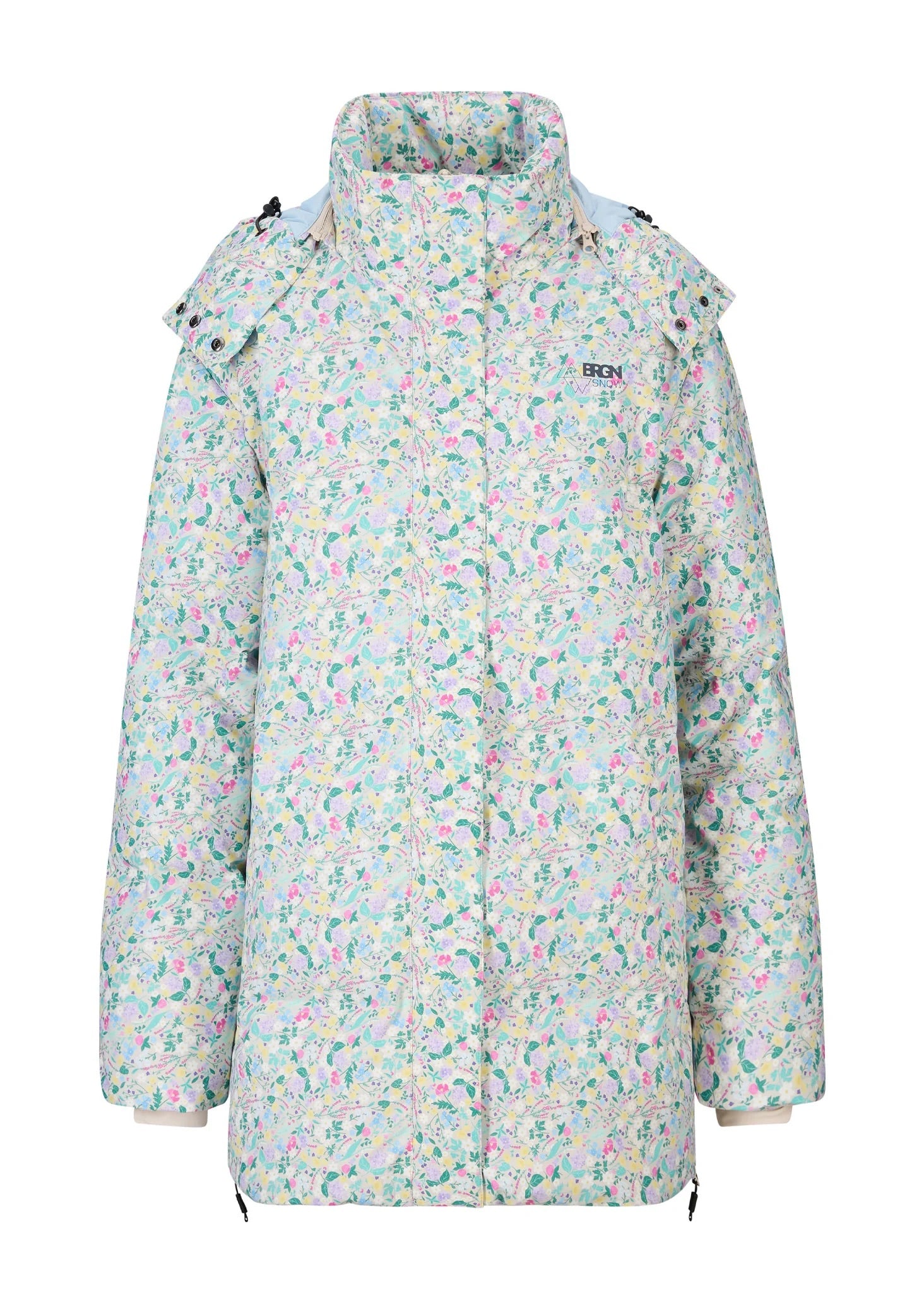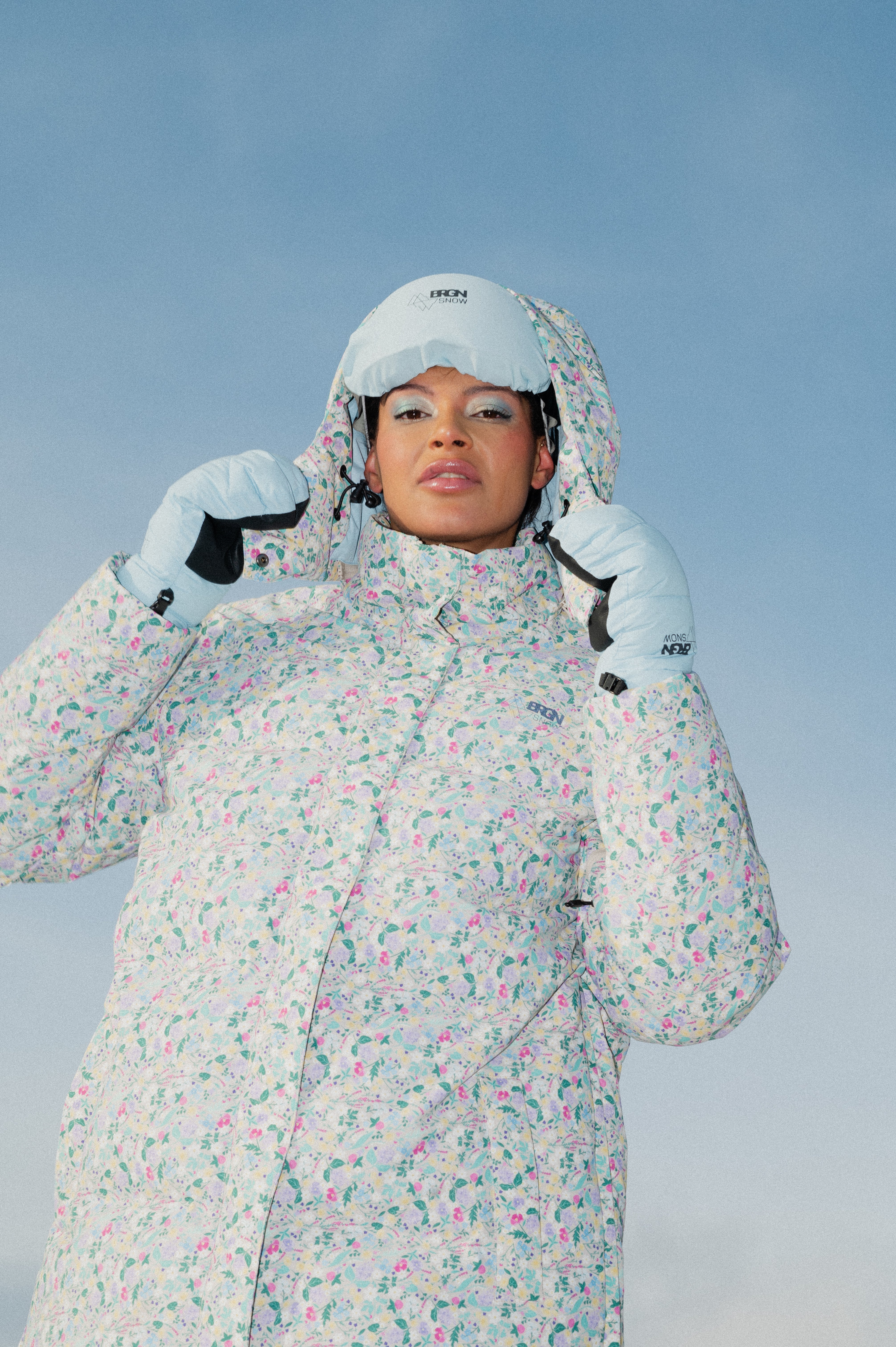BRGN Snow Puffer fra BRGN. BRGN Snow Puffer er en vanntett dunjakke med RDS-sertifisert dun, laget for kalde og vindfulle dager i fjellet. Jakken har skulderstropper inni for enkel bæring, og kommer med et unikt blomstermønster designet av Fam Irvoll i samarbeid med DAAE Studio. Normal i størrelsen.