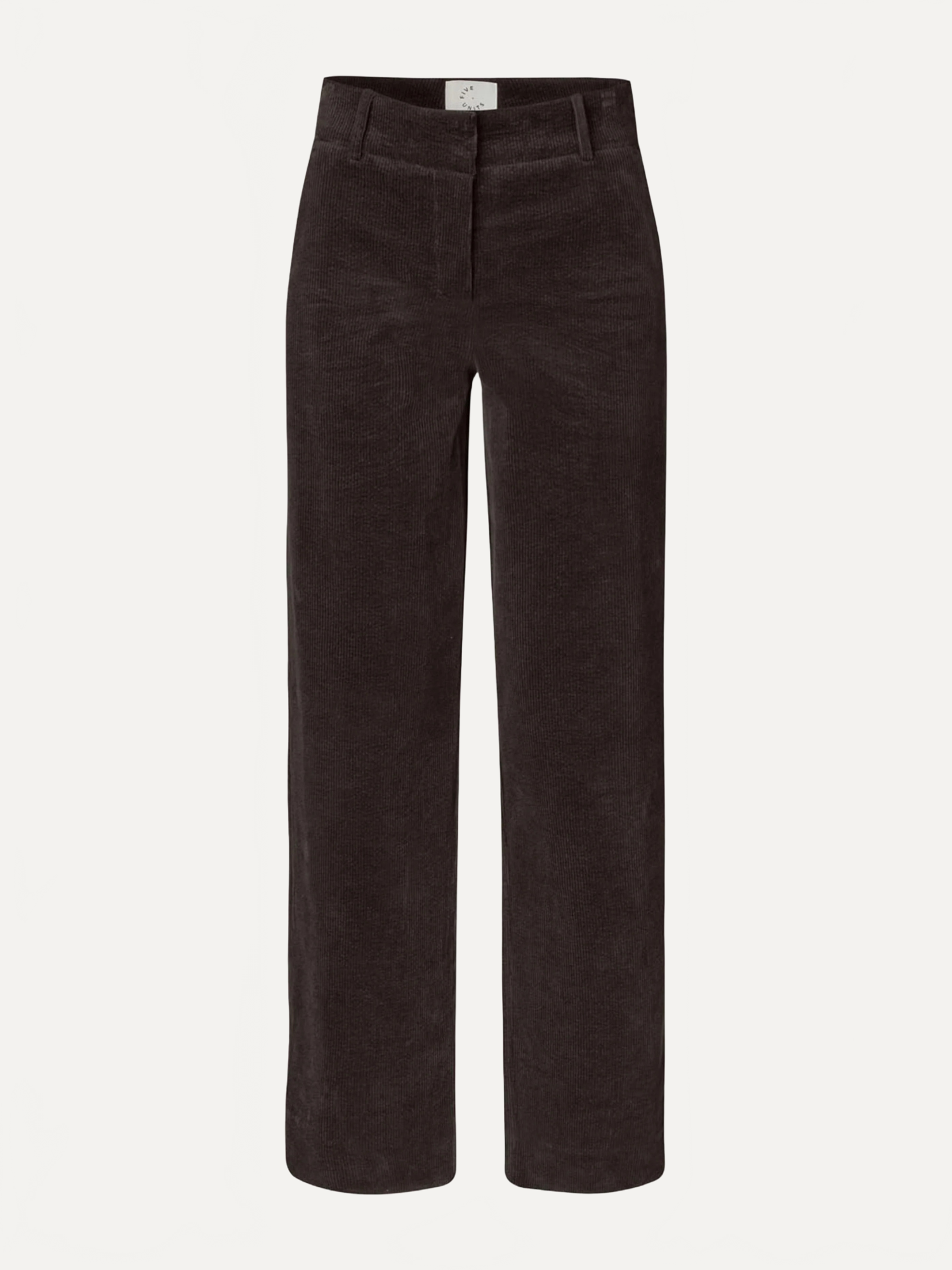 Dena Regular 837 Dark Coffee Corduroy fra Fiveunits. Dena Regular 837 er elegante bukser i mørk kaffe kordfløyel. Med sin myke, luksuriøse kordfløyel og stretchy kvalitet løfter de ethvert antrekk, enten du skal på kontoret, ut på middag eller i en mer formell setting. Den dype, sofistikerte fargen gir et tidløst uttrykk, mens passformen med wide straight fit og mid-waist sikrer en flatterende og behagelig silhuett. Normal i størrelsen.