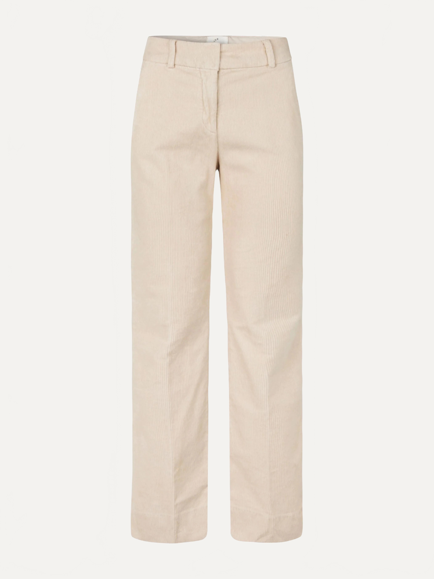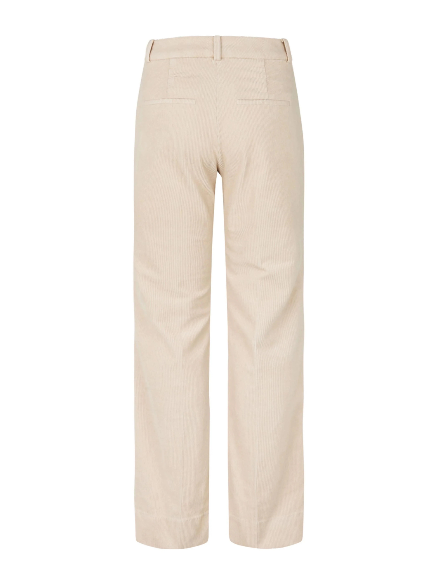 Dena Regular 837 Winter White Corduroy fra Fiveunits. Dena Regular 837 er elegante bukser i kremhvit kordfløyel. Med sin myke, luksuriøse kordfløyel og stretchy kvalitet løfter de ethvert antrekk, enten du skal på kontoret, ut på middag eller i en mer formell setting. Den kremhvite fargen gir et tidløst uttrykk, mens passformen med wide straight fit og mid-waist sikrer en flatterende og behagelig silhuett. Normal i størrelsen.