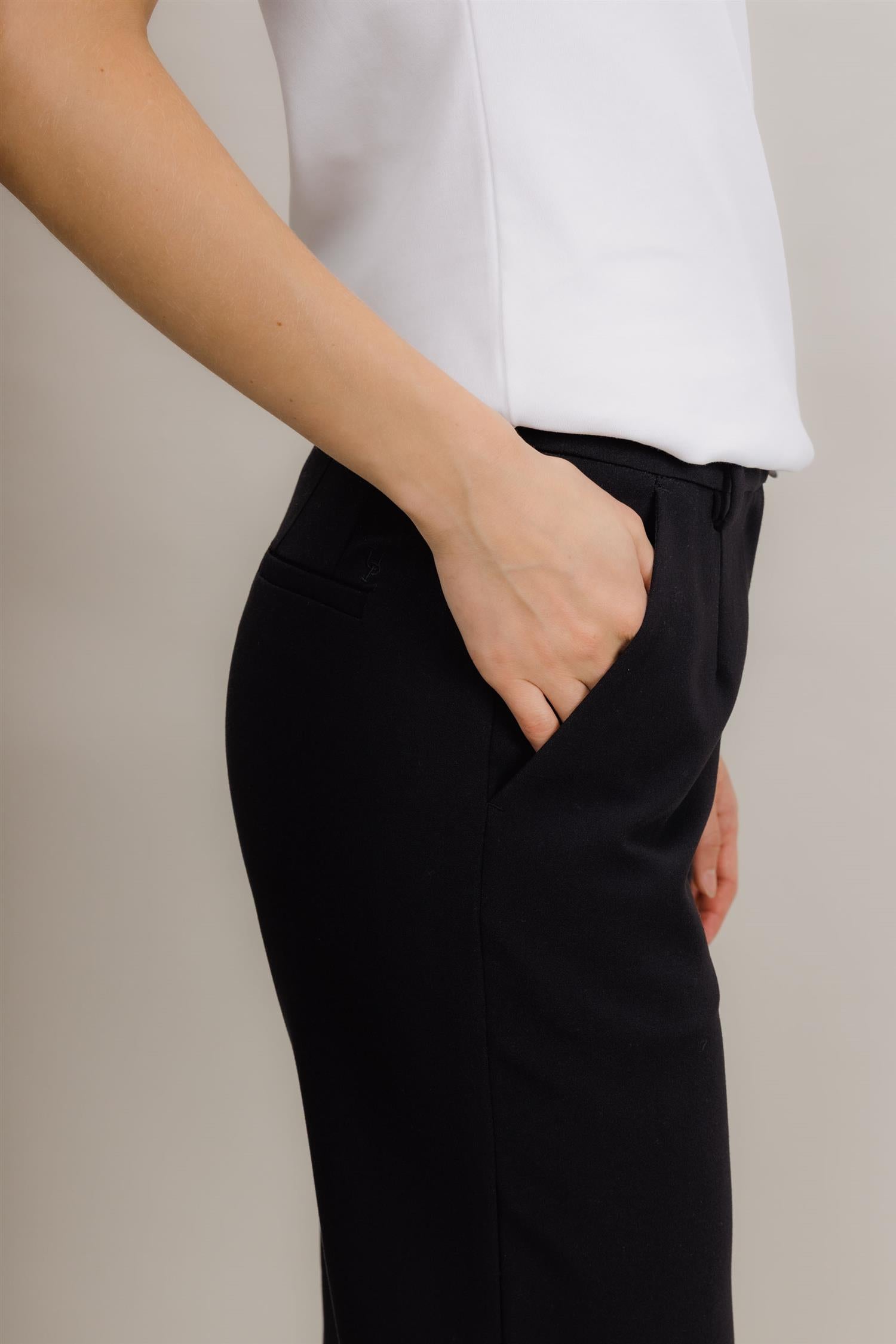 Kelli Pants fra Urban Pioneers. Kelli Pants er klassiske dressbukser med en høy midje og lett sleng i bena. Den har en flatterende passform og et tidløst uttrykk som gjør den enkel å style til både hverdag og mer pyntede anledninger. Buksen er laget i en myk materialblanding med lett stretch for god komfort, og har beltehemper. Et allsidig baseplagg som passer like godt på jobb som på fritiden. Normal i størrelsen.