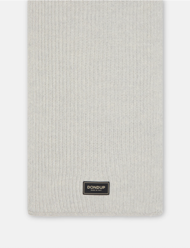 Technical Wool Scarf fra Dondup. Technical Wool Scarf fra Dondup er et stilrent skjerf laget i teknisk ull for varme og komfort. Skjerfet har en ribbestrikket struktur og Dondup-logo i enden som subtil detalj. Laget i Italia. Onesize.
