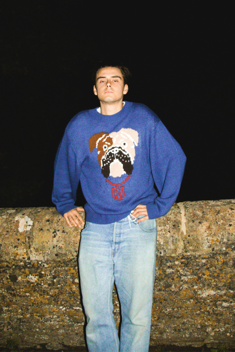 Bulldog Knit-Sweater fra Hotel. Bulldog Knit Sweater er en kul og komfortabel strikkegenser med en avslappet, oversized passform. Den har et tøft bulldog-print i front som gir antrekket det lille ekstra, og er perfekt til både hverdags og mer avslappede anledninger. Genseren er normal i størrelsen.