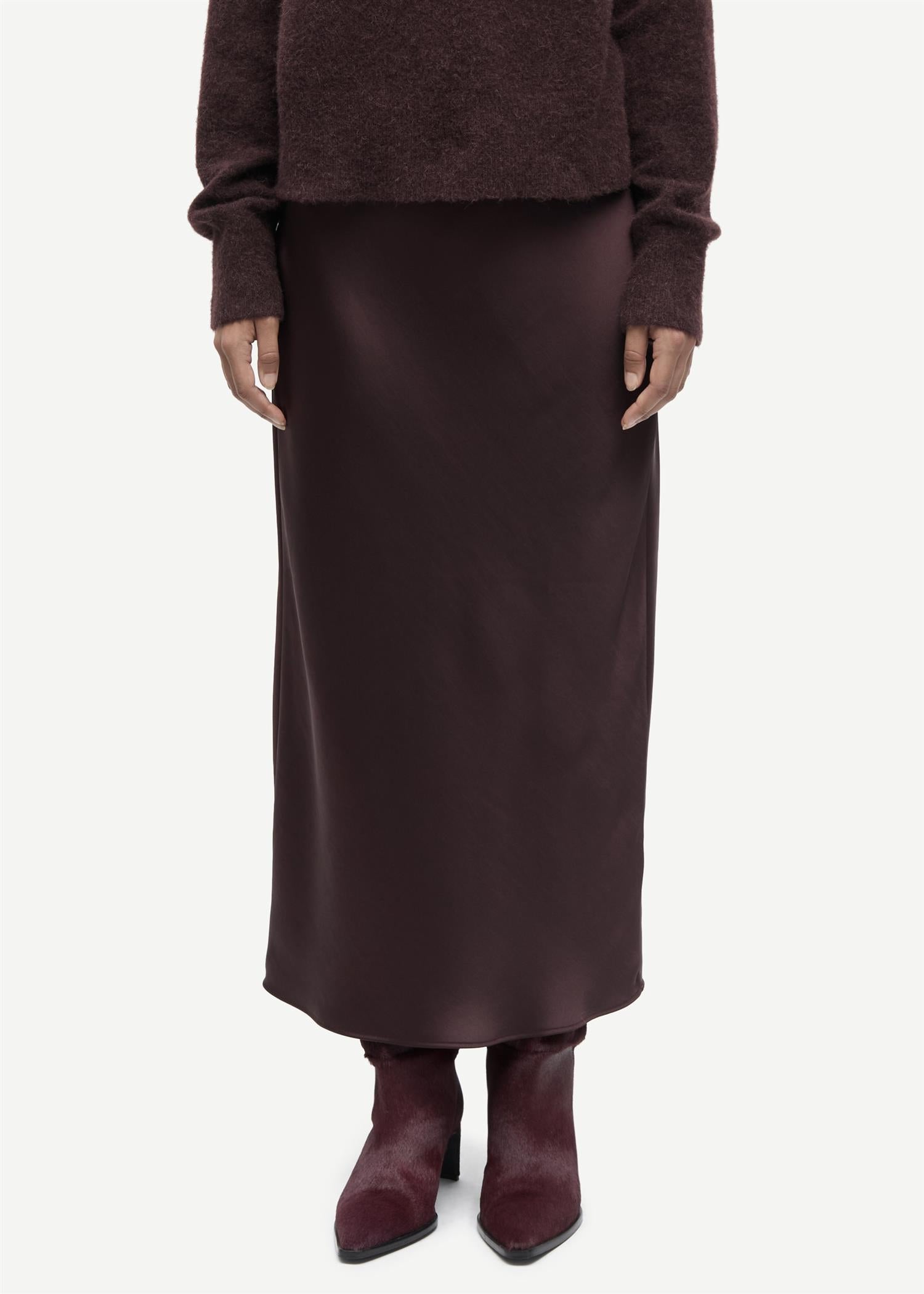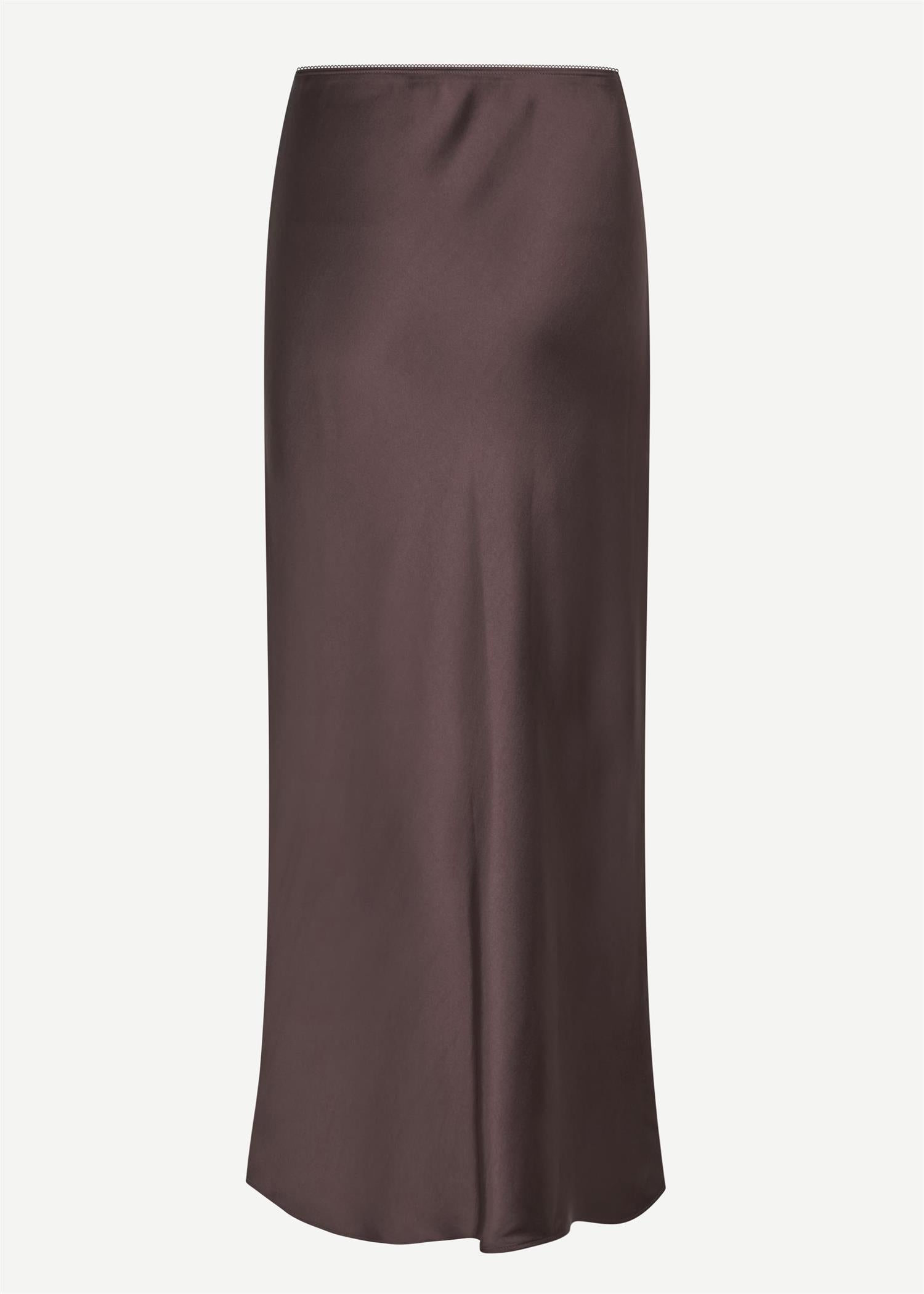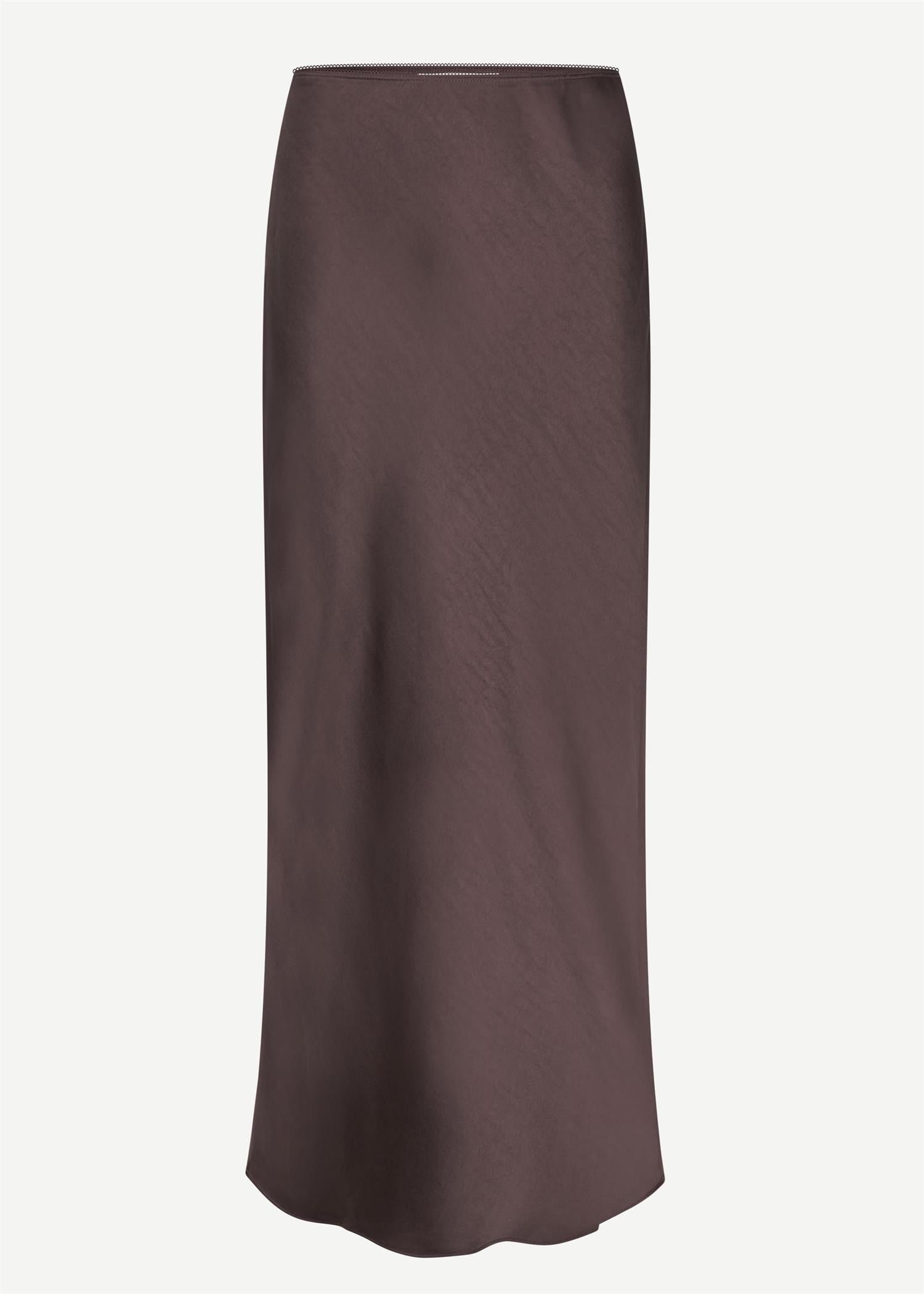 Saagenta Long Skirt 12956 fra Samsøe & Samsøe. Dette stilrene maxiskjørtet har en smal passform og et elegant fall som gir en sofistikert look. Det elastiske livet sikrer komfort og en flatterende passform. Perfekt for både hverdagsbruk og festlige anledninger – enkelt å style opp eller ned etter behov. Normal i størrelsen.