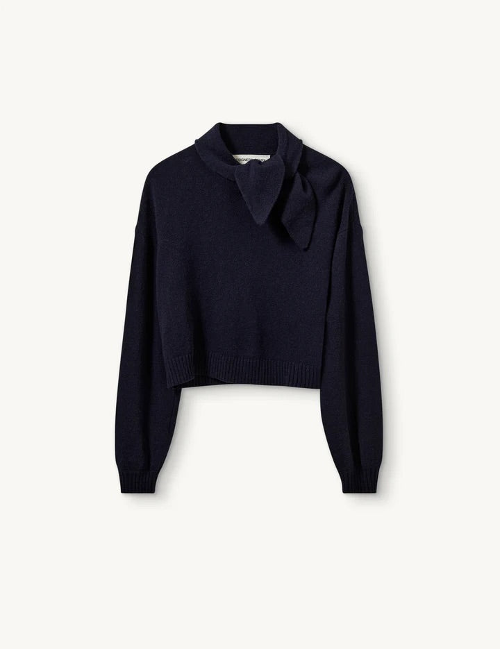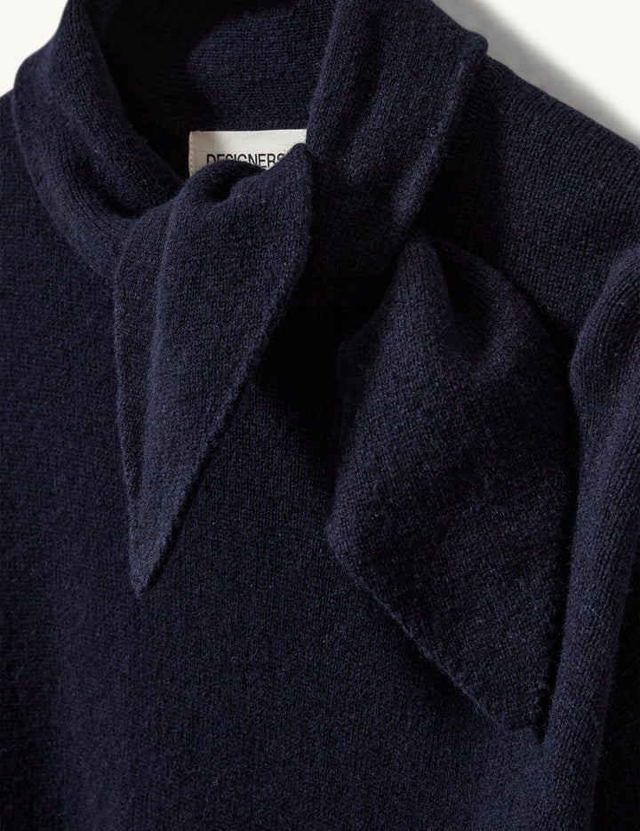Carmen Scarf Sweater fra Designers Remix. Carmen Scarf Sweater er en moderne og elegant strikkegenser laget av 100% ull, som kombinerer naturlig mykhet med en eksklusiv struktur. Den har en avslappet passform og rund hals, komplett med et kort, matchende skjerf. En tidløs og klassisk genser som passer perfekt til hverdagsbruk, men som også enkelt kan styles opp til mer pyntede anledninger. Normal i størrelsen.