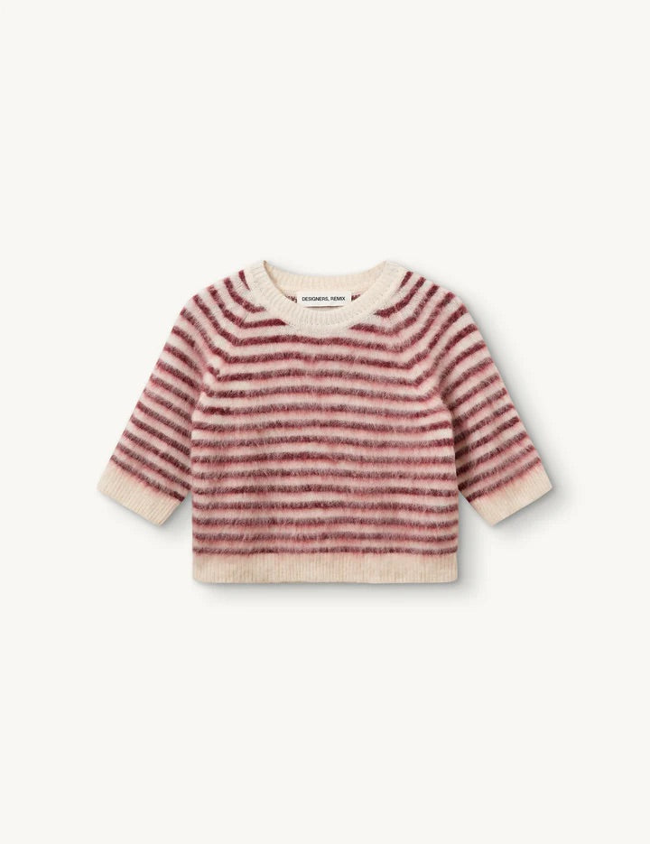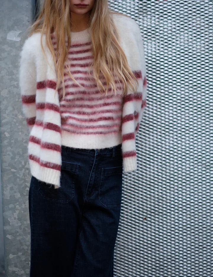 Verona Brushed Tee fra Designers Remix. Verona Brushed Tee er en myk og behagelig t-skjorte med en enkel og allsidig silhuett. Den børstede kvaliteten gir en ekstra myk overflate som føles god mot huden, og fargen i cream/burgundy stripes gir et trendy uttrykk. Perfekt alene til hverdags, eller som base under en blazer eller jakke. Enkel å kombinere med både jeans, bukser og skjørt. Normal i størrelsen.