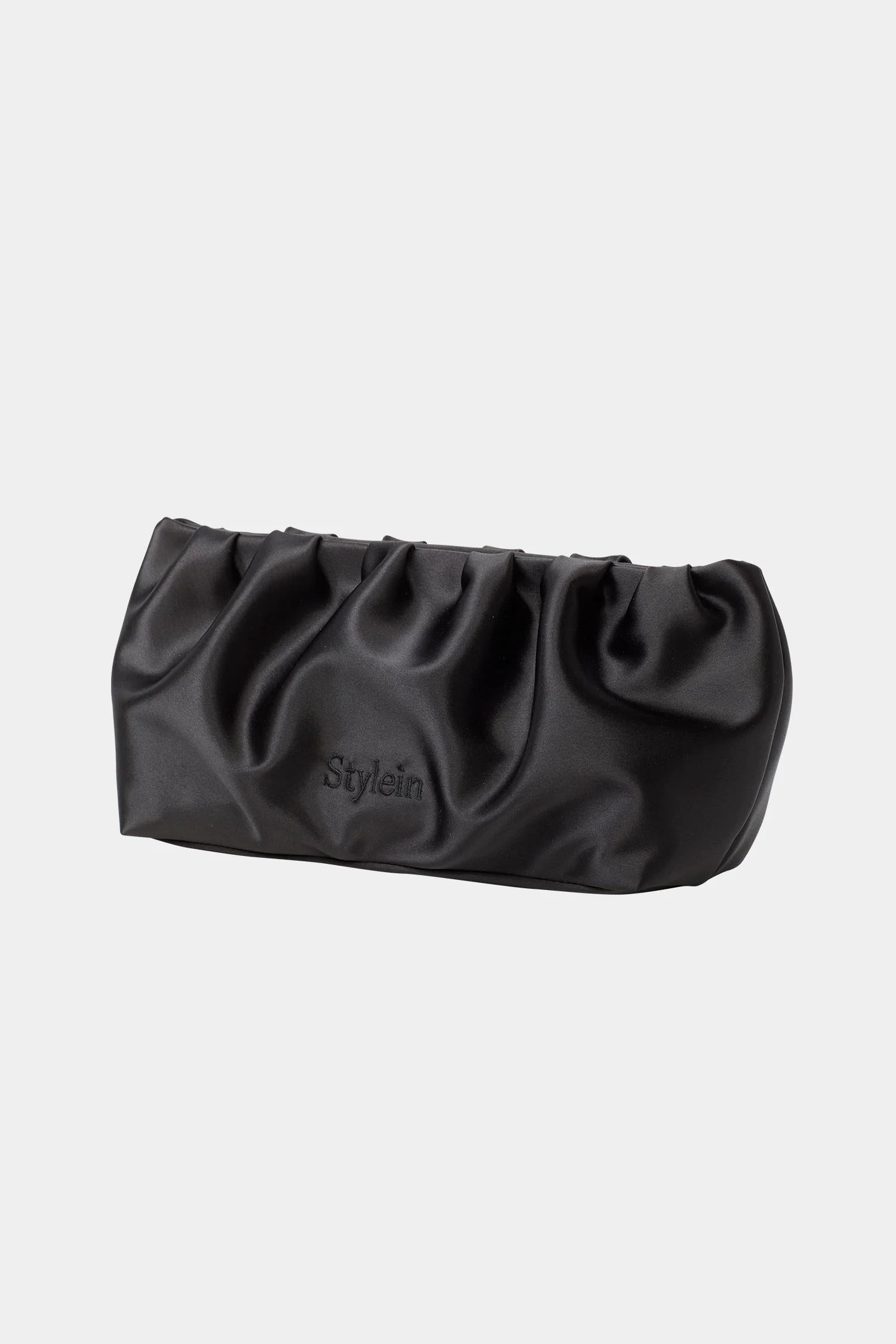 Yaelle Satin Bag fra Stylein. Yaelle Satin Bag er en elegant clutch laget i luksuriøst satengstoff med lekre draperinger som gir et sofistikert og teksturert uttrykk. Den har bomullsfôr i matchende farge for et helhetlig design og er dekorert med en subtil, tone-i-tone brodert Stylein-logo på forsiden. Vesken lukkes enkelt med to skjulte magnetknapper som gir en ren og stilfull finish. Onesize.