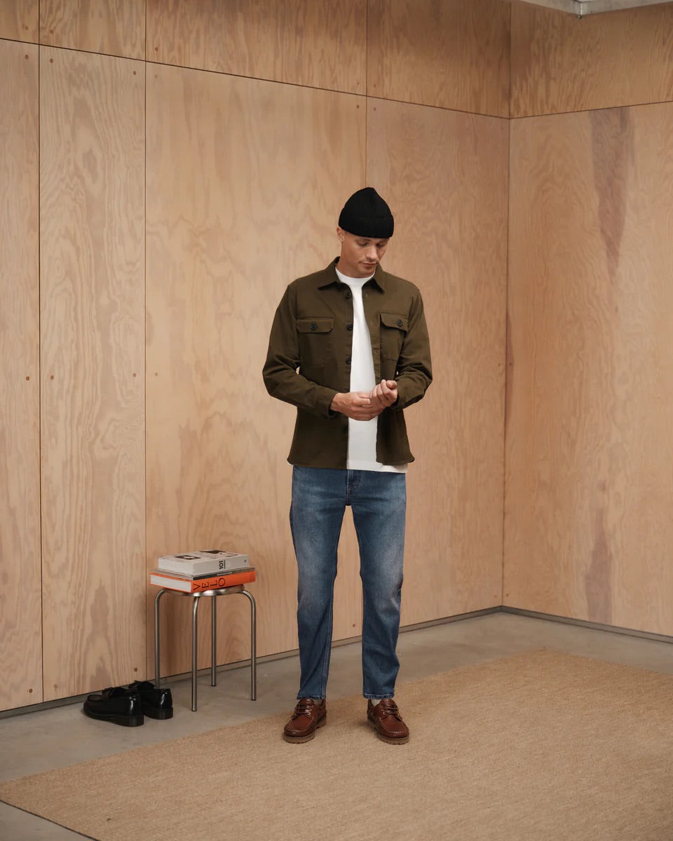 Carl Oskin fra Gabba. Carl Oskin Jeans kombinerer en avslappet passform med moderne stil. Jeansen har et loose tapered fit som gir et komfortabelt, men stilrent uttrykk, med klassiske Gabba-detaljer, glidelåsgylf og firkantede baklommer. Den lette avsmalningen i bena gir et oppdatert preg – perfekt for en avslappet hverdagslook med en moderne edge. Normal i størrelsen.