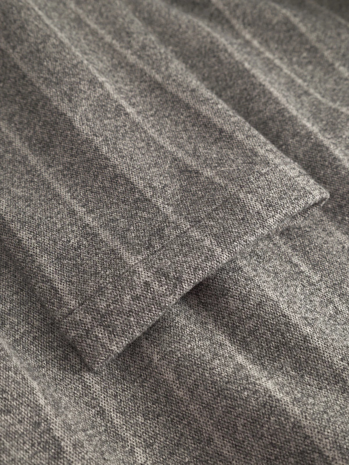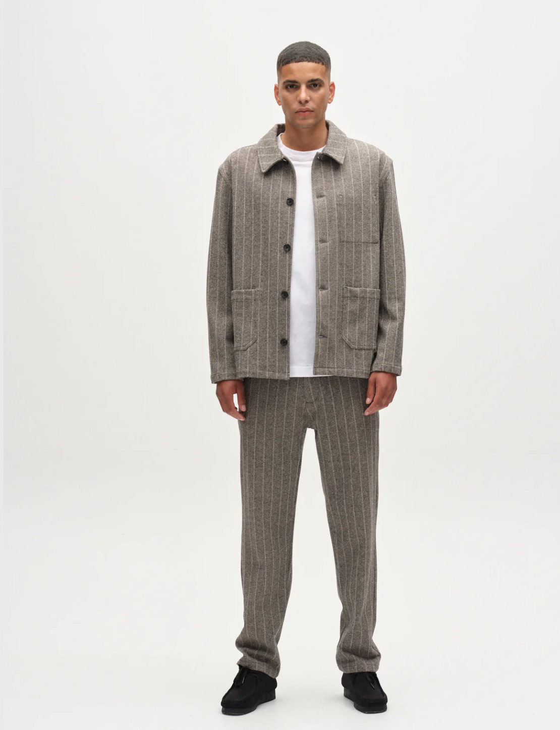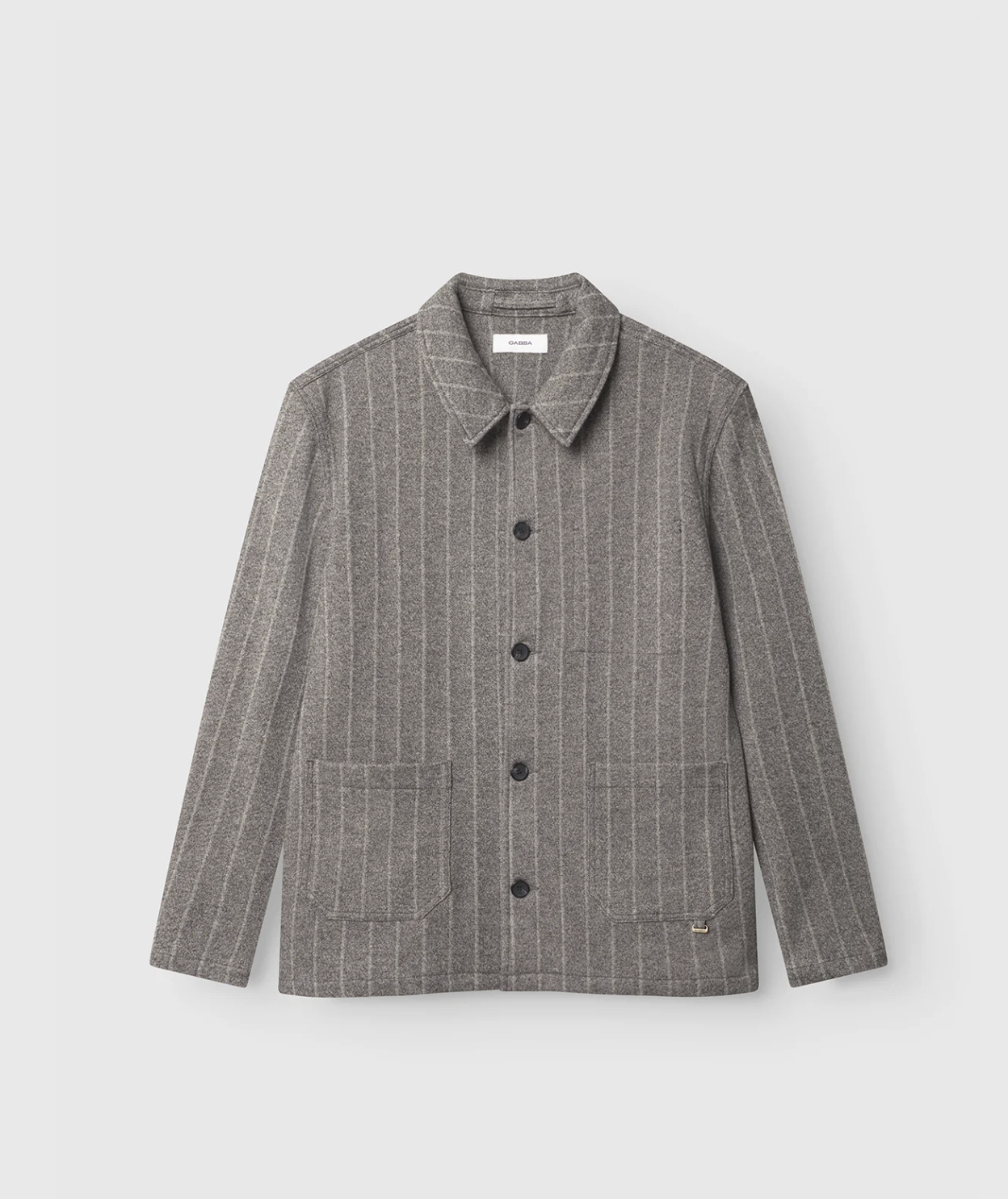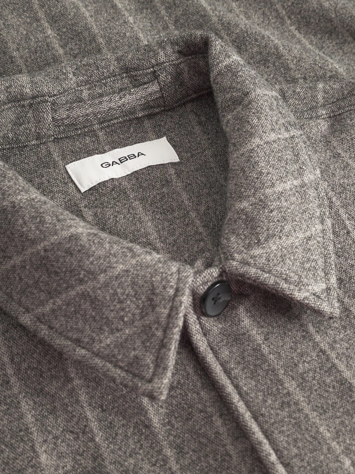 Libre AX Stripe fra Gabba. Libre AX Stripe er en myk og børstet overshirt med diskret stripemønster og klassisk krage. Den er laget i et garnfarget stoff med et moderne og stilrent uttrykk. En allsidig skjortejakke som passer like godt til jobb som til fritid. Kombiner den gjerne med Napoli 19 AX Grey Stripe for et komplett sett. Normal i størrelsen.