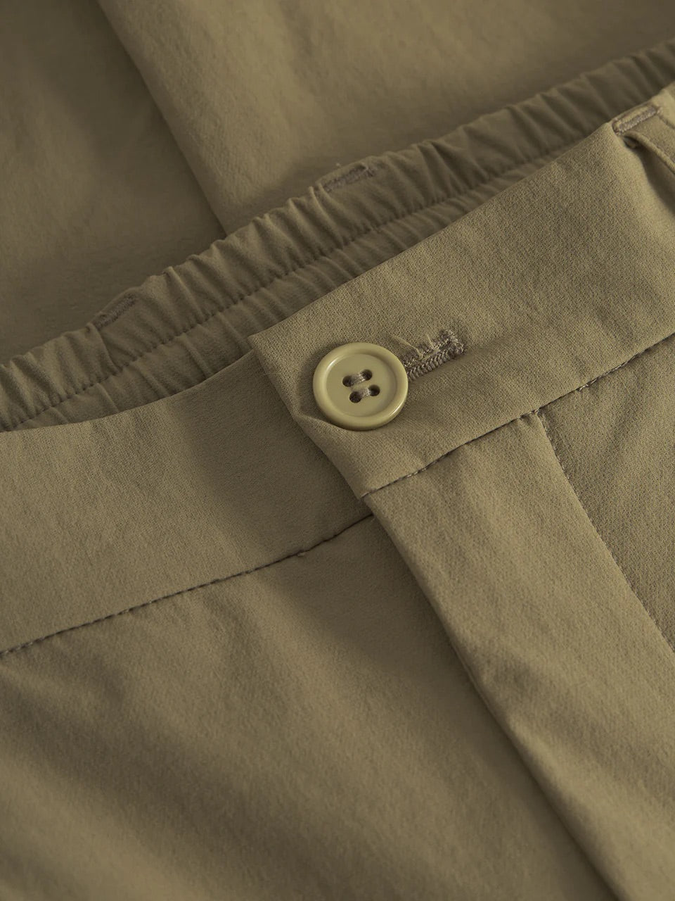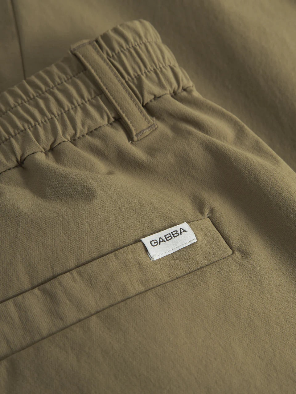Napoli 19 Tech Army fra Gabba. Napoli 19 Army kombinerer komfort med tidløs stil i et allsidig design. Buksene har glidelåsgylf, praktiske lommer og elastikk i livet og bena for optimal passform og komfort gjennom hele dagen. Laget i slitesterkt teknisk materiale, perfekt til både hverdag og mer aktive dager. Normal i størrelsen.