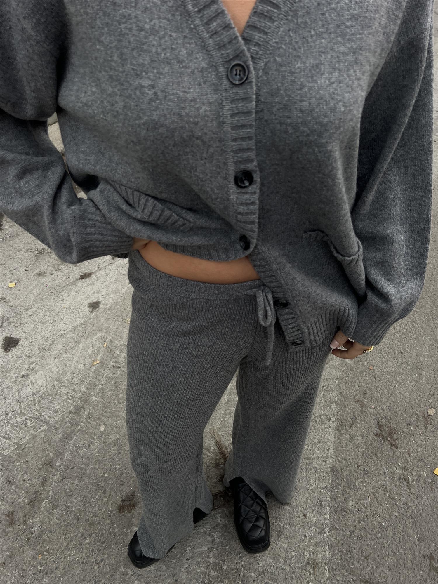 Carmen Rib Pants fra Designers Remix. Carmen Rib Pants er et par elegante, ribbestrikkede bukser i myk ull som kombinerer komfort og moderne stil. Designet har vide ben, høy midje og en fleksibel snor i linningen for en behagelig passform. Den rene og minimalistiske looken løftes av den delikate teksturen, perfekt både til avslappet hverdagsbruk og mer sofistikerte anledninger. Normal i størrelsen.