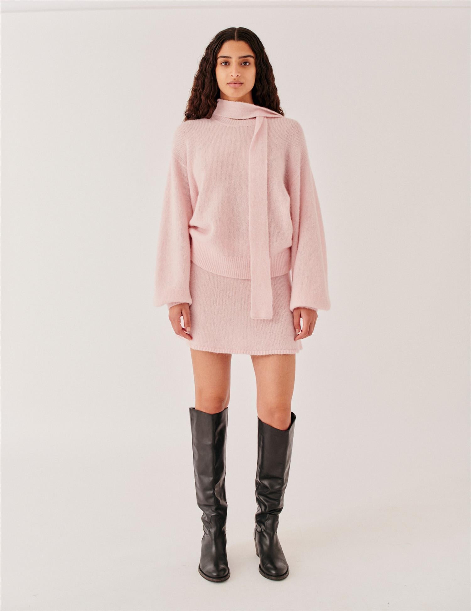 Verona Slim Scarf Sweater fra Designers Remix. Verona Slim Scarf Sweater er en elegant genser med integrert skjerfdetalj som gir et moderne og sofistikert uttrykk. Den myke alpakka- og ullblandingen gir en behagelig og varm følelse, mens den melerte fargen skaper dybde og tekstur. Et stilrent plagg som passer like godt til hverdags som til mer pyntede anledninger. Normal i størrelsen.