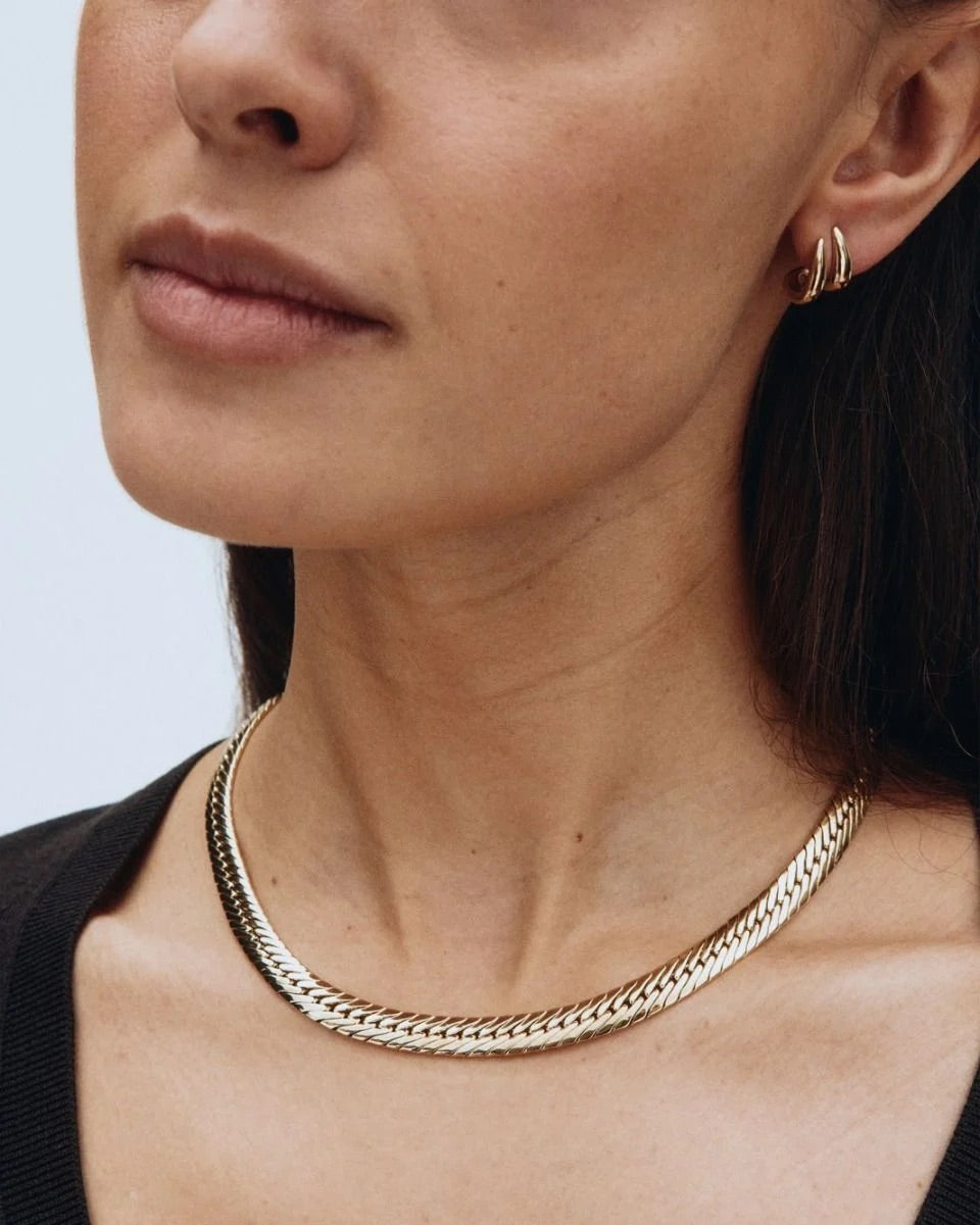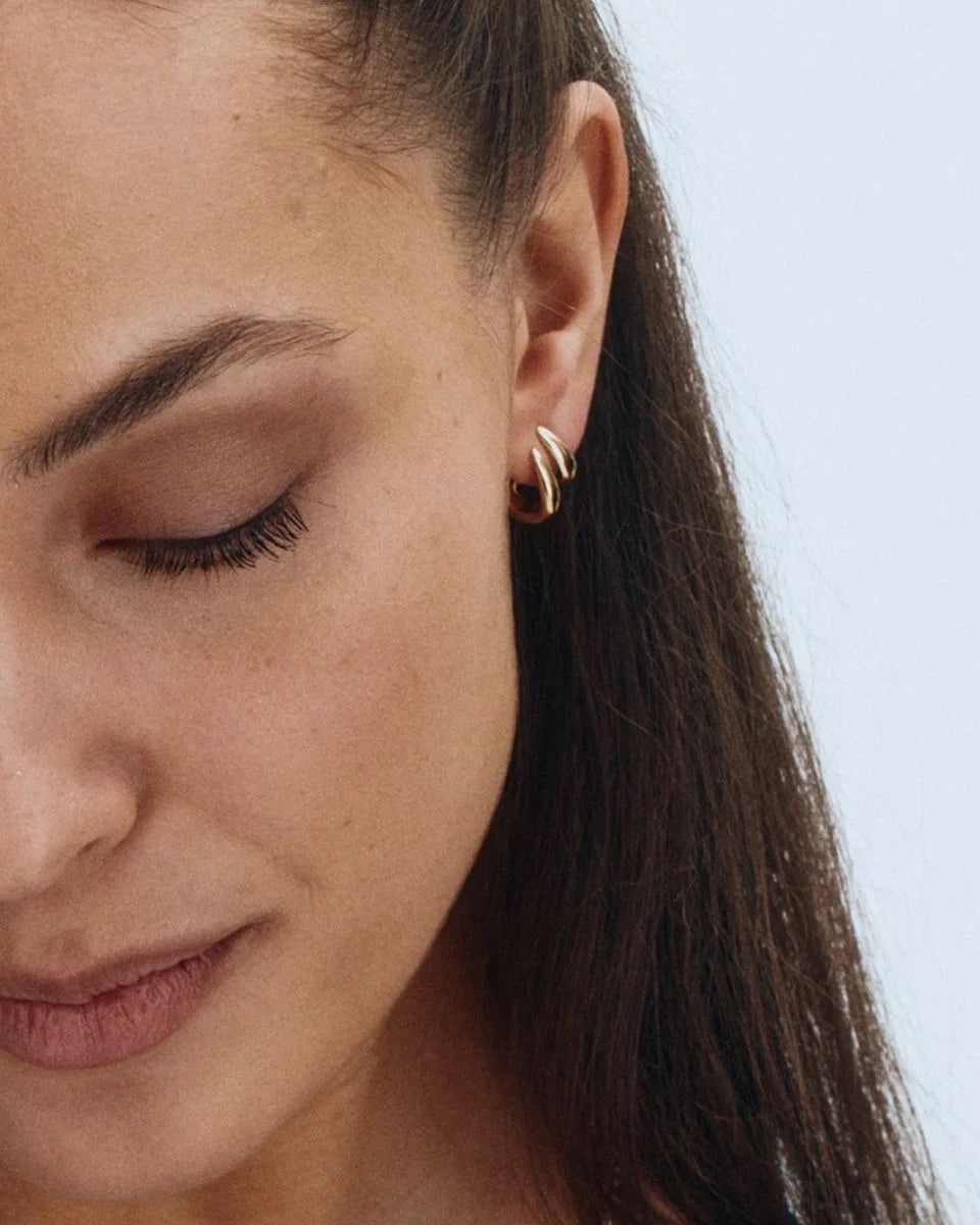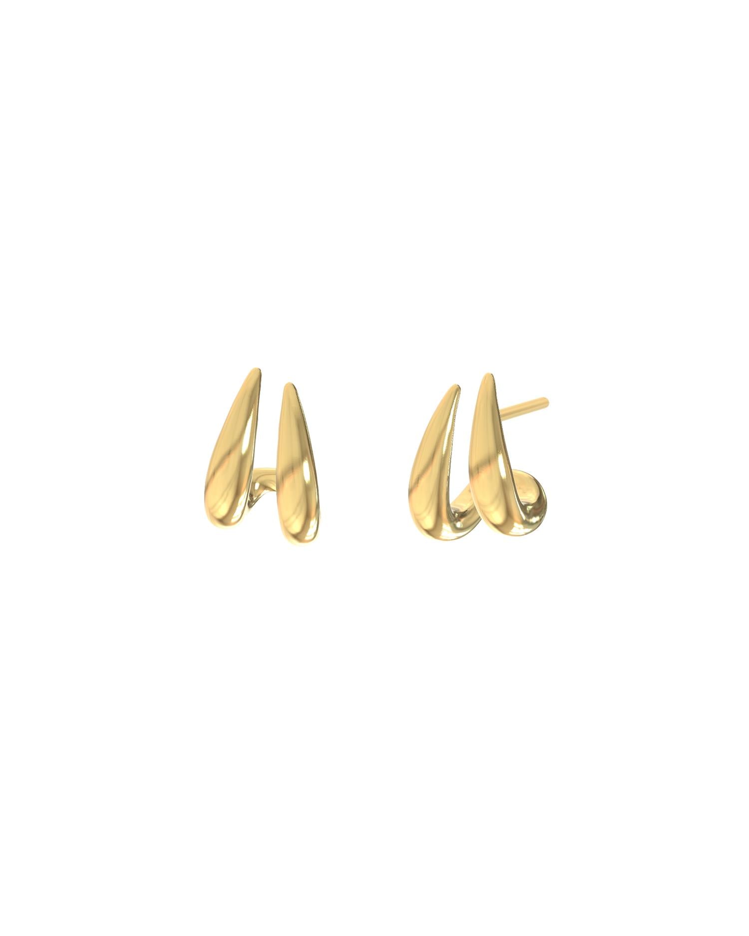 Spire Hoops S Gold fra Edblad. Spire-serien utstråler attityde med sitt unike klodesign. Disse hoopsene i blankt 14K gullbelegg klemmer øreflippen og gir illusjonen av to øredobber i stedet for én, for et moderne og edgy uttrykk. Style dem sammen med ringen i samme serie for en komplett og tøff look.