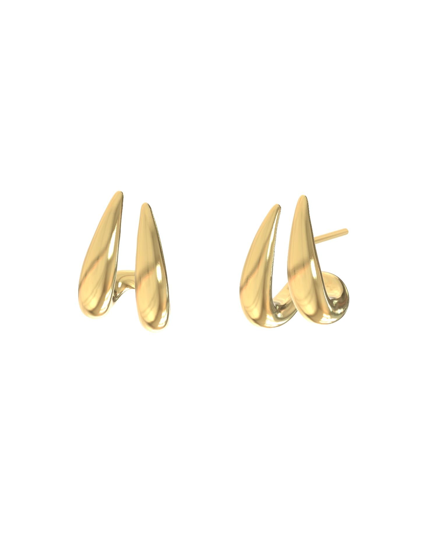 Spire Hoops L Gold fra Edblad. Spire-serien utstråler attityde med sitt karakteristiske klodesign. Disse hoopsene i blankt 14K gullbelegg gir illusjonen av to øredobber når de bæres, og skaper et moderne og edgy uttrykk. Perfekte å kombinere med ringen i samme serie for en komplett og stilfull look.
